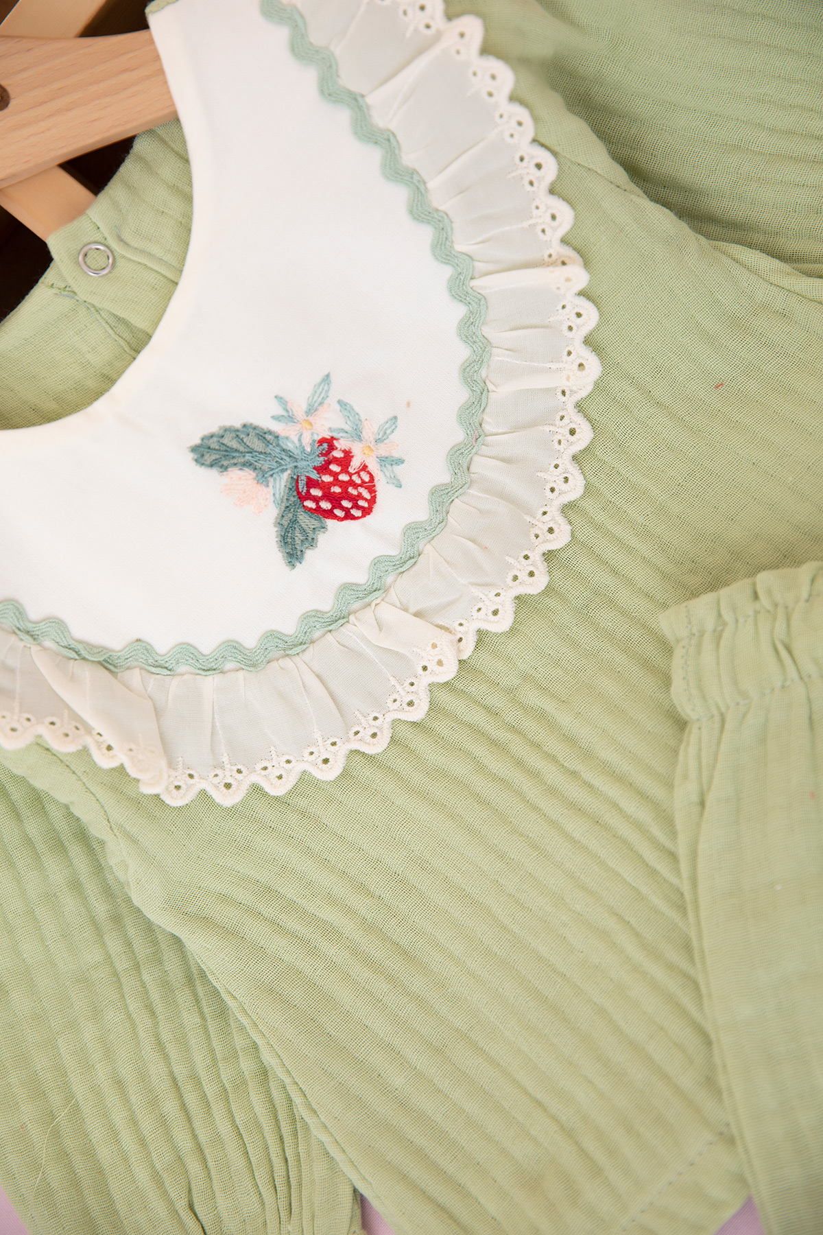 Kız Bebek Robası Çilek Nakışlı Takım - 3014 (6-24 Ay)