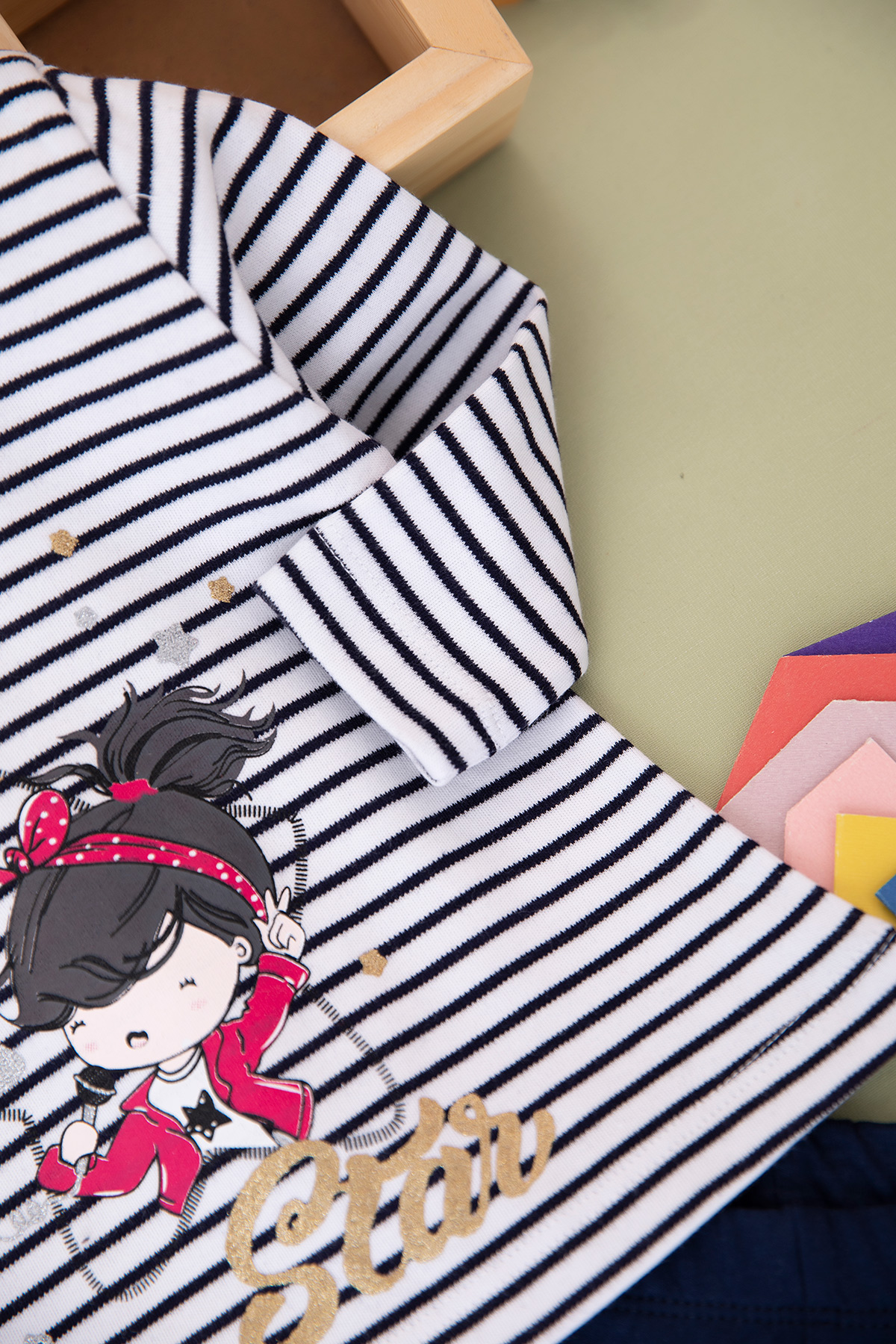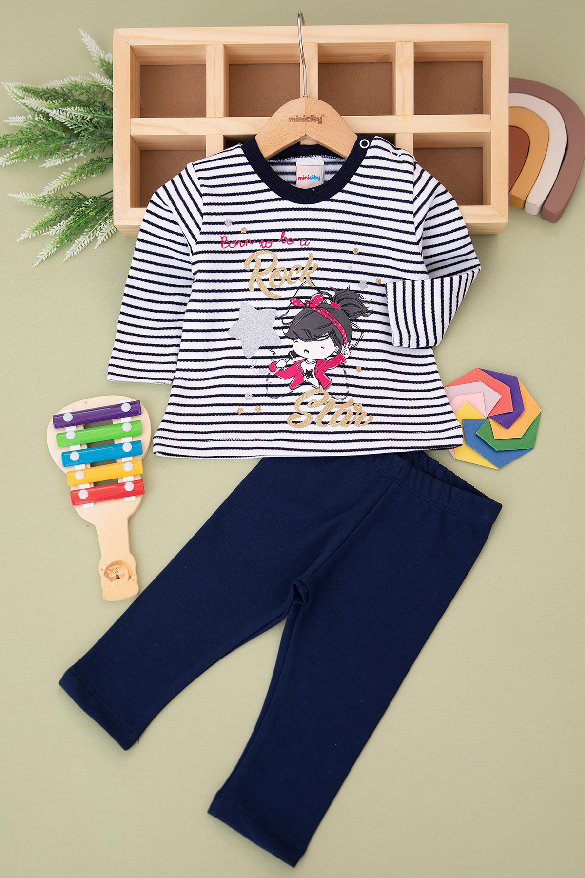 Kız Bebek Roc Star Baskılı Çizgili Takım - 21872 (9-24 Ay)