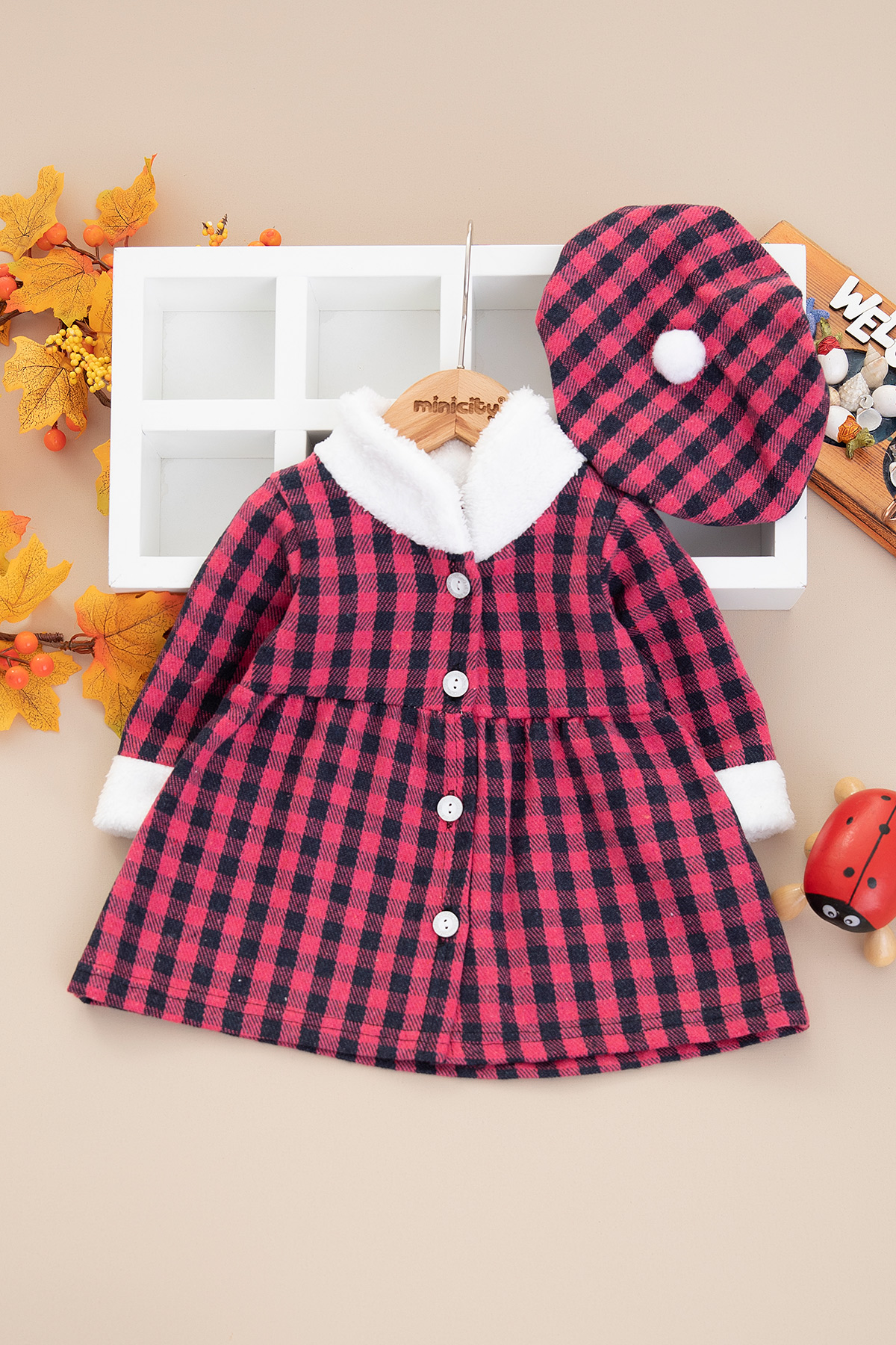 Kız Bebek Şapkalı Oduncu Elbise - 5367 (6-12 Ay)