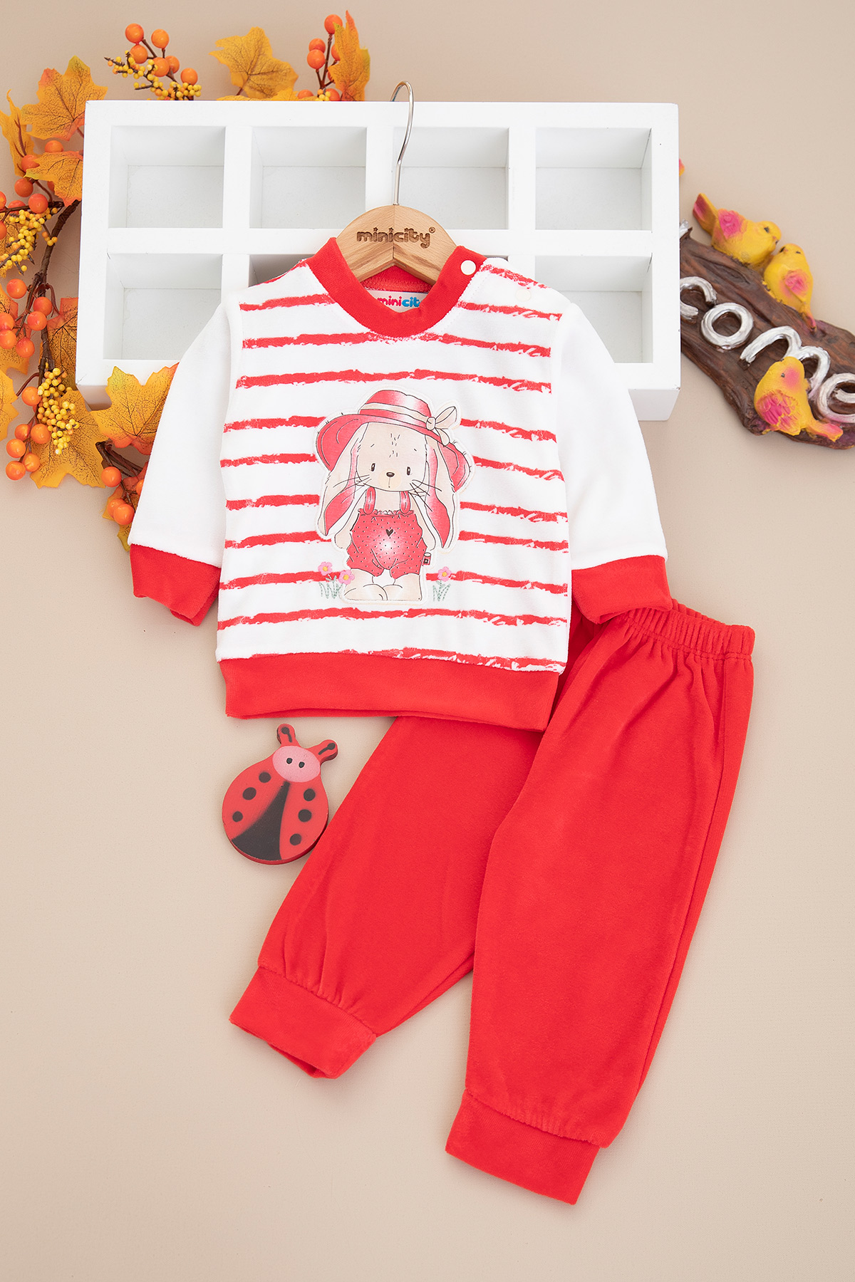 Kız Bebek Şapkalı Tavşan Kadife Takım - 2429 (3-12 Ay)