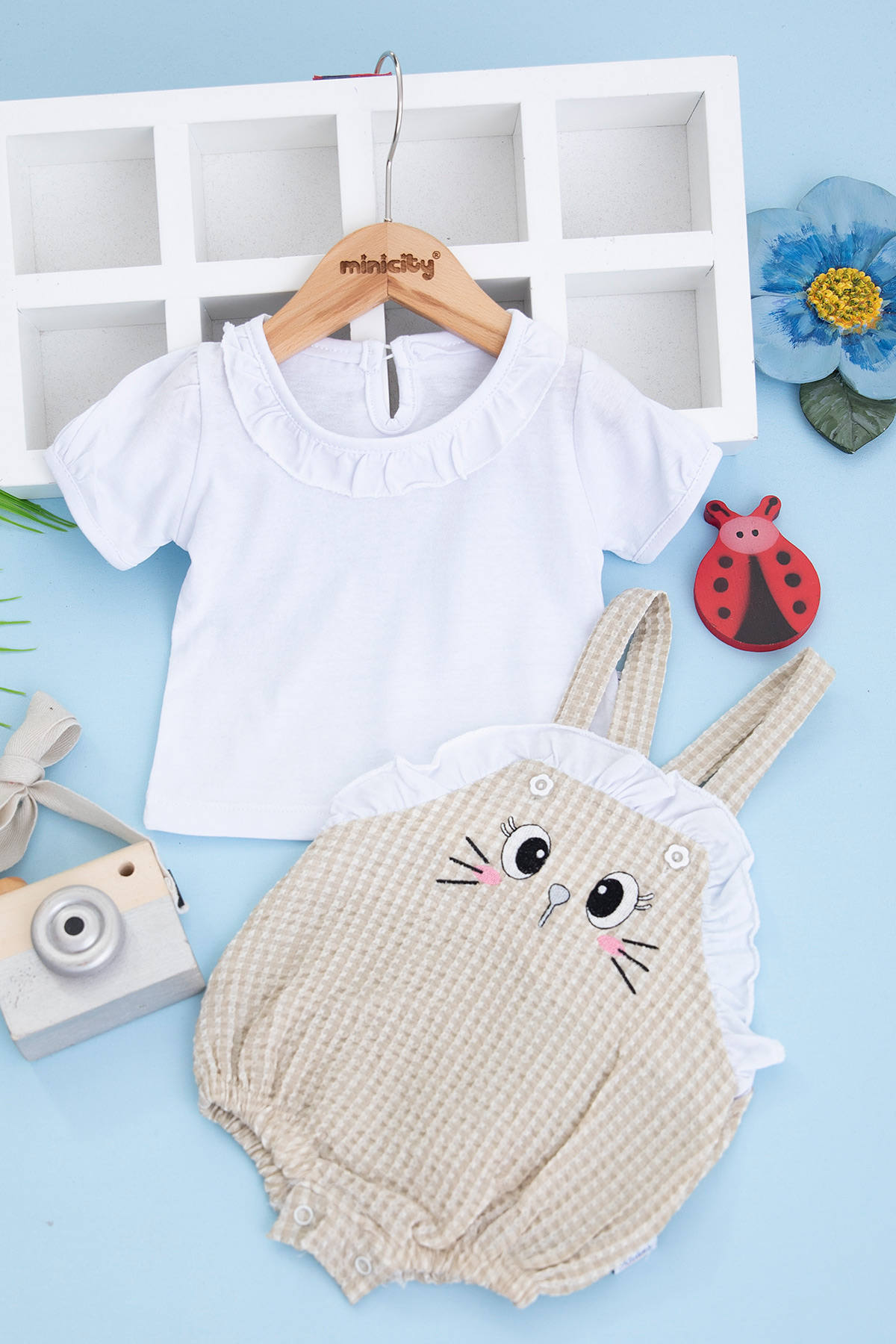 Kız Bebek Şaşkın Tavşan Nakışlı Salopet - 65111 (0-12 Ay)