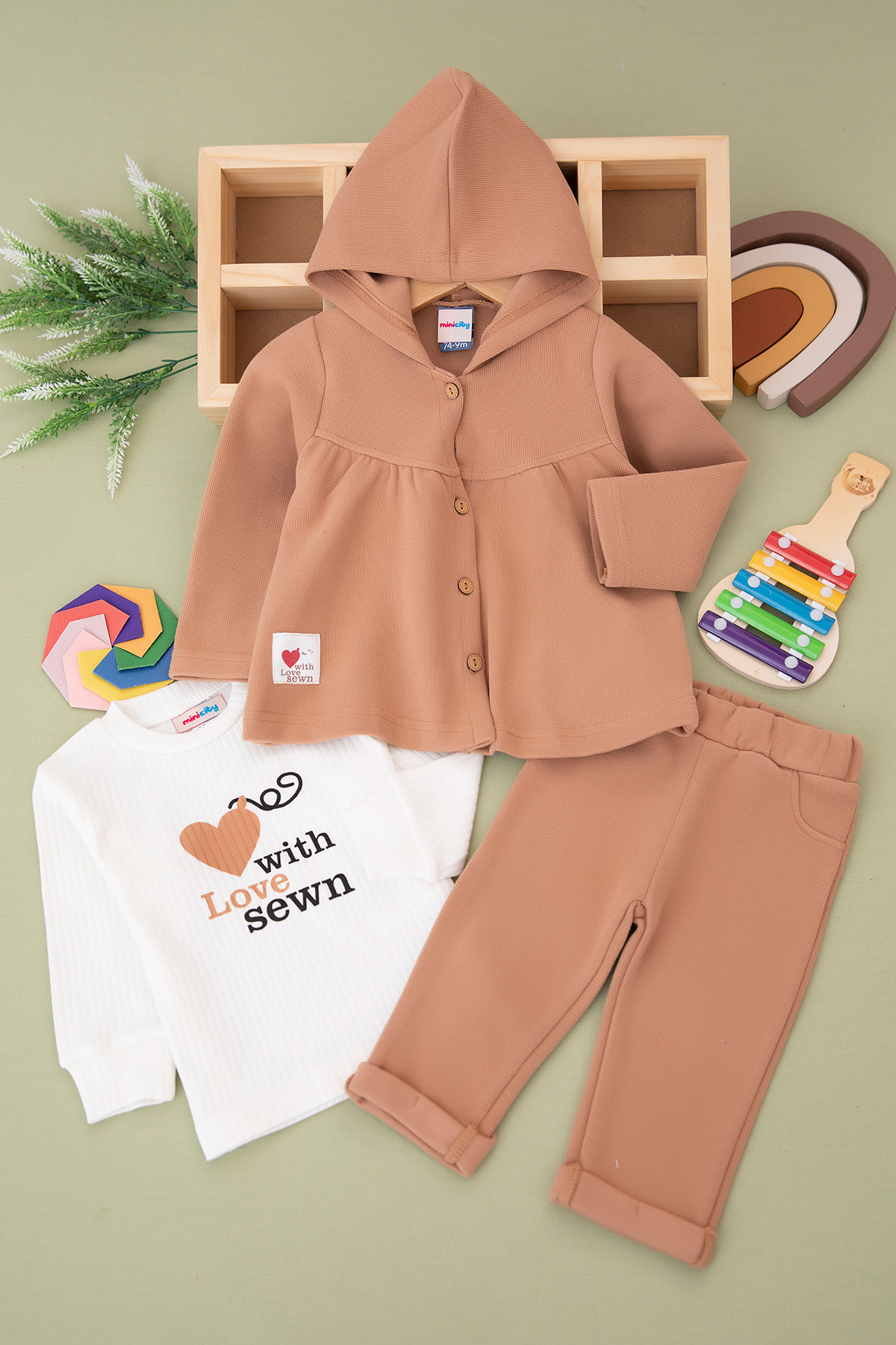 Kız Bebek Selanik Kumaş Armalı Kapşonlu Takım - 23743 (9-24 Ay)