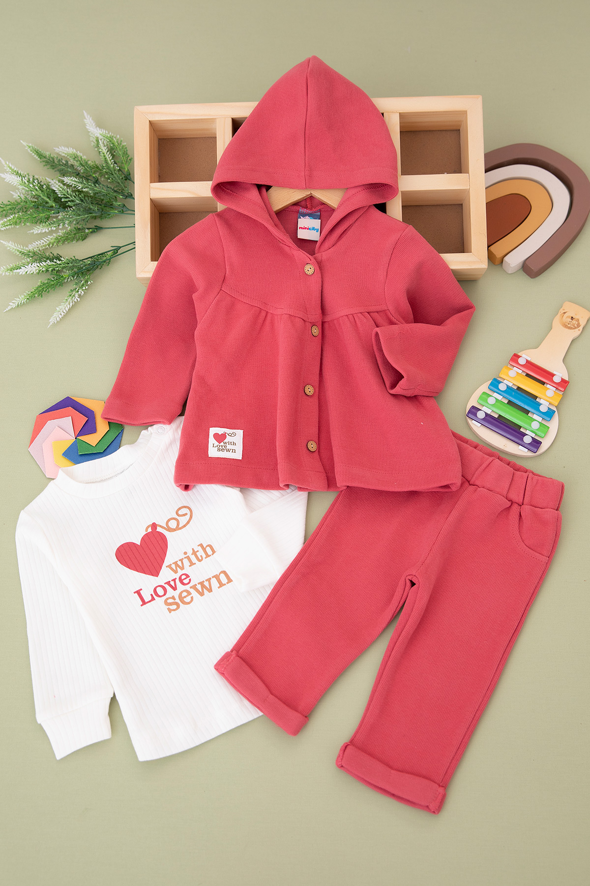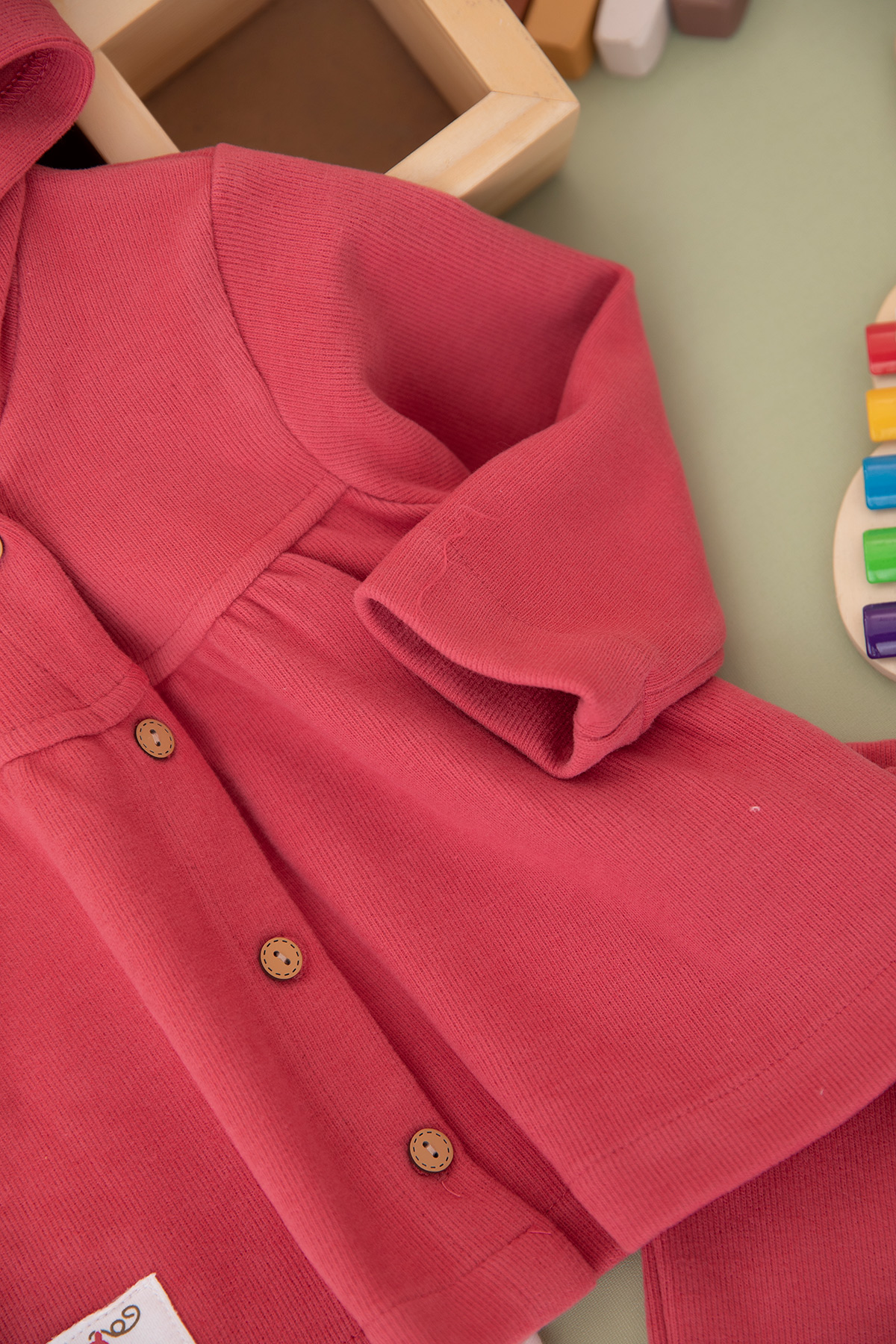 Kız Bebek Selanik Kumaş Armalı Kapşonlu Takım - 23743 (9-24 Ay)