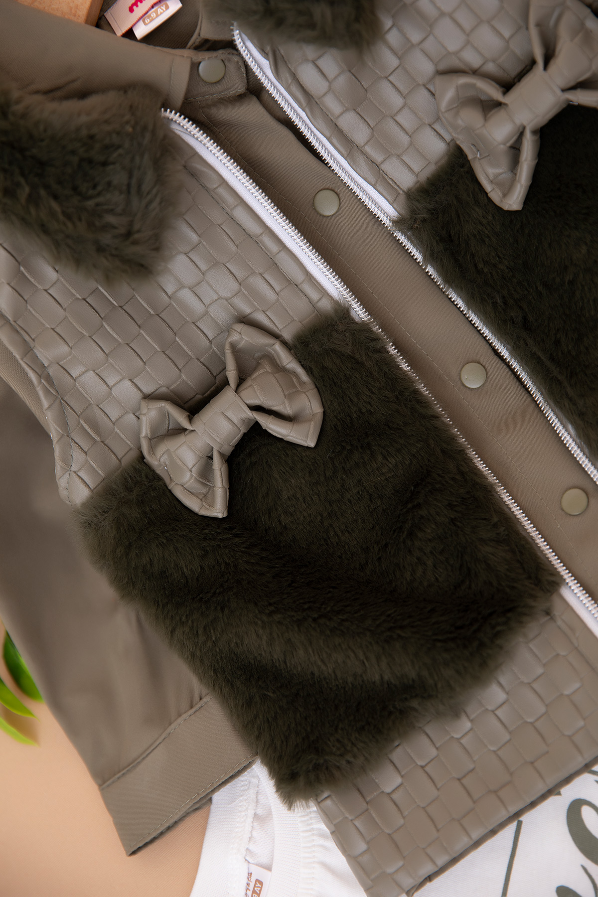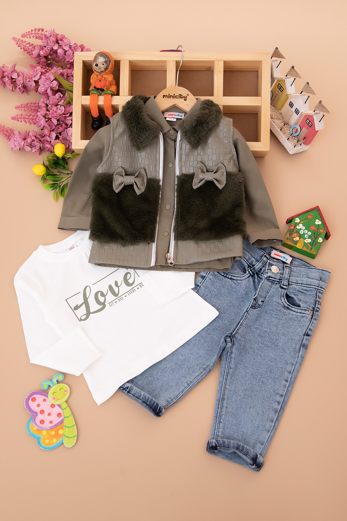 Kız Bebek Sepet Deri Yelekli Takım - 50672 (6-24 Ay)