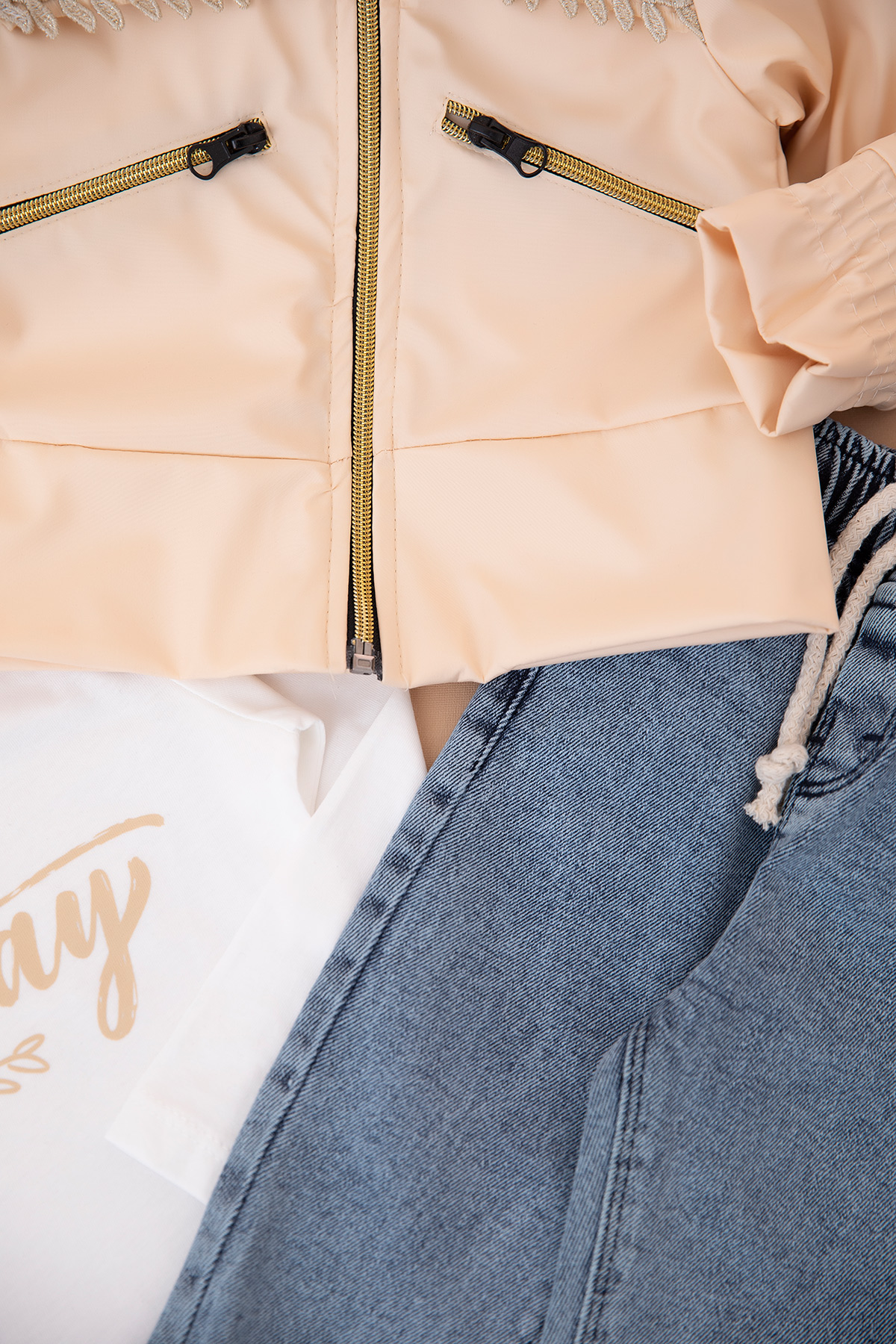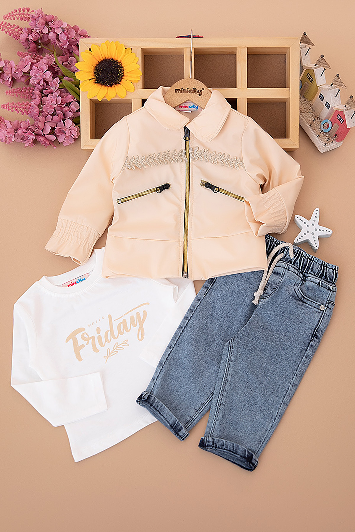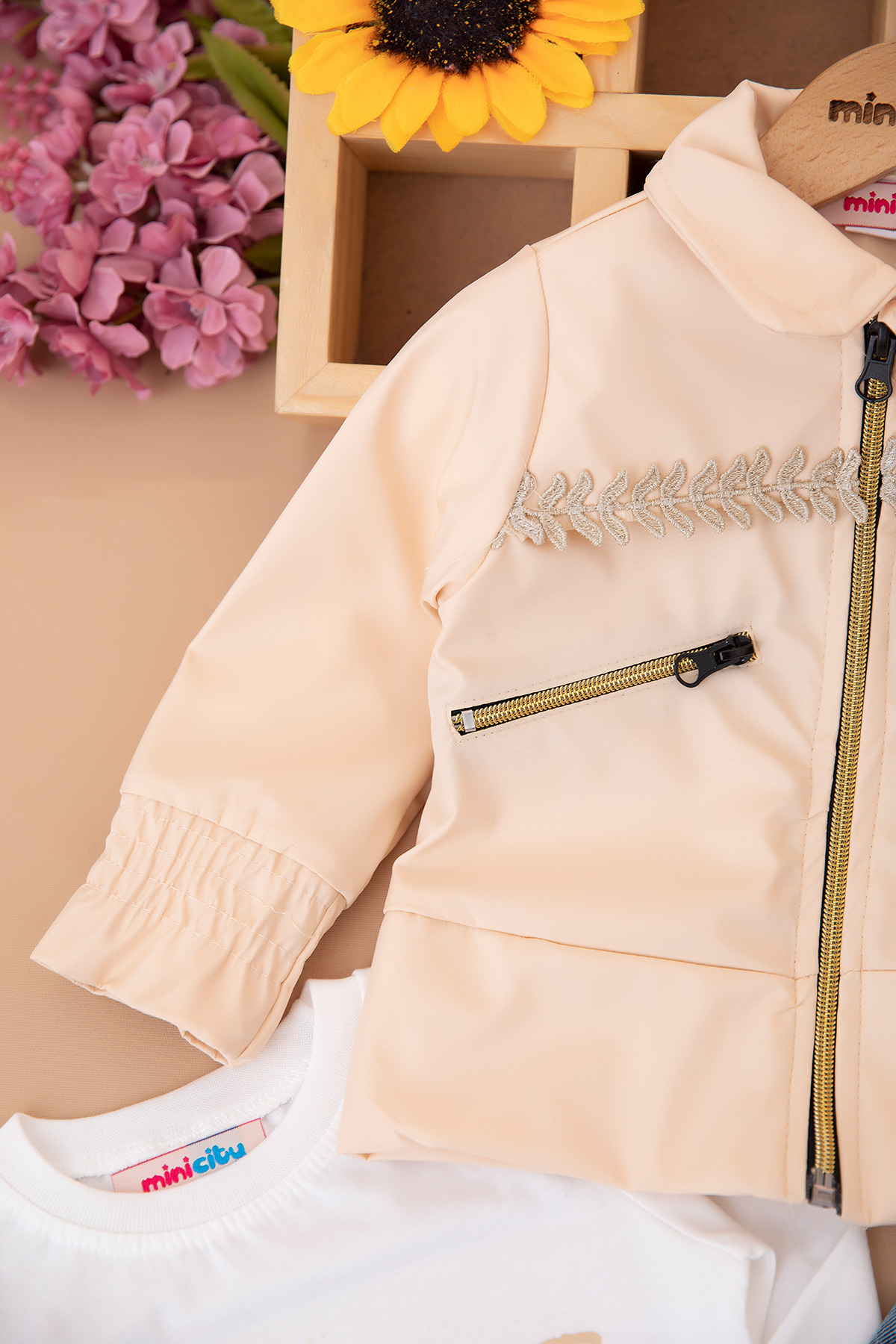 Kız Bebek Simli Yaprak Montlu Takım - 50662 (6-24 Ay)