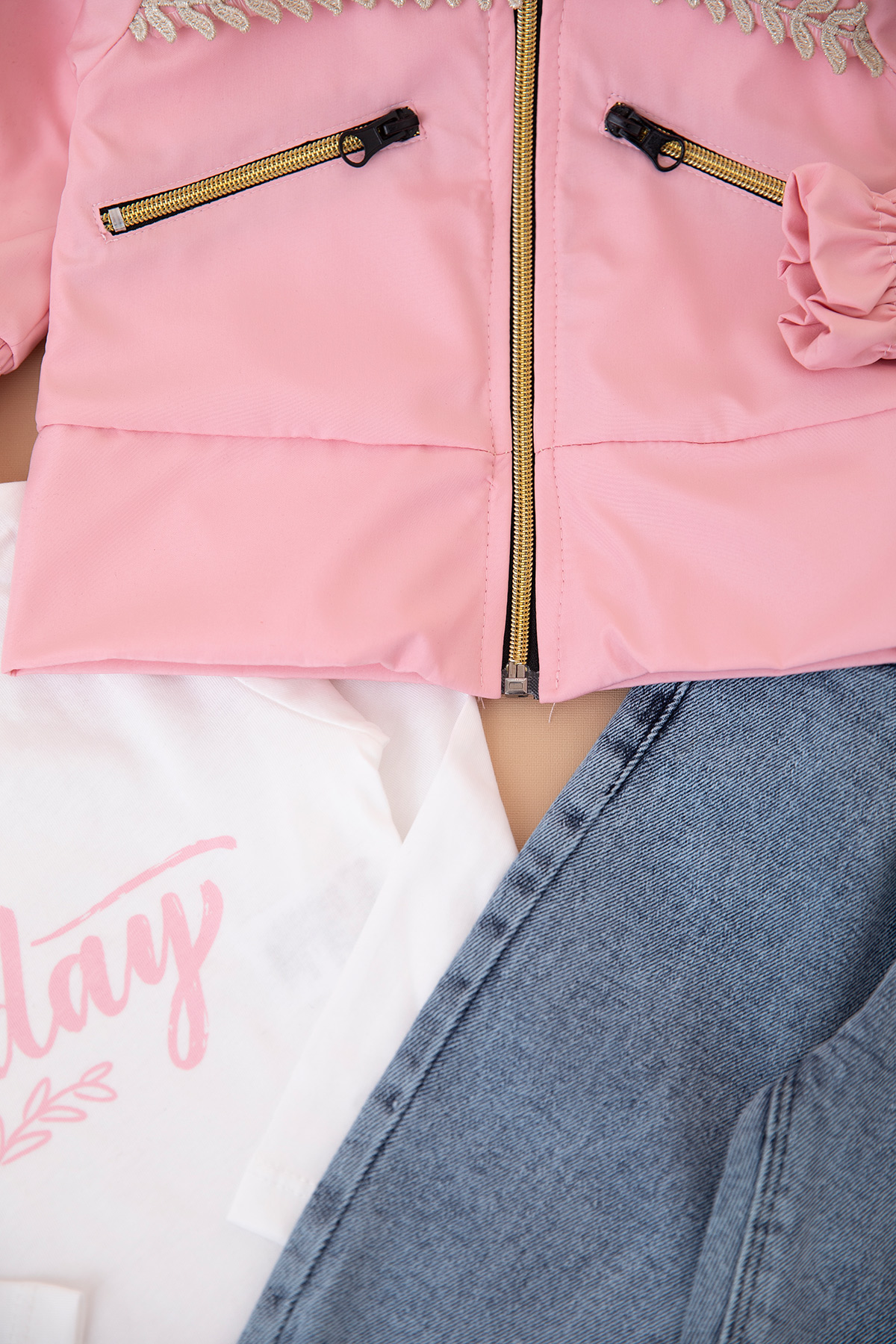 Kız Bebek Simli Yaprak Montlu Takım - 50662 (6-24 Ay)