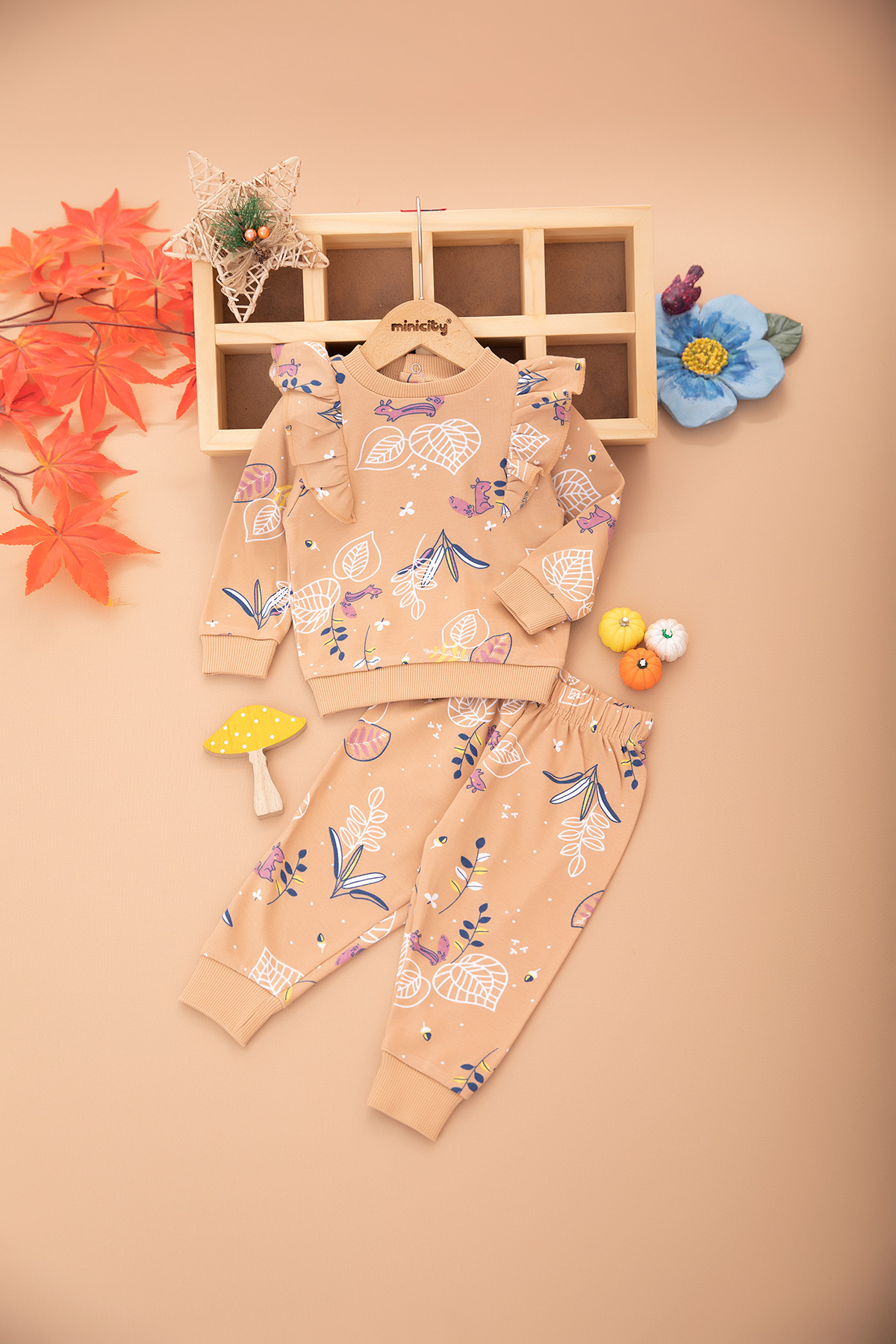 Kız Bebek Sincap Baskılı Takım - 24491 (9-24 Ay)