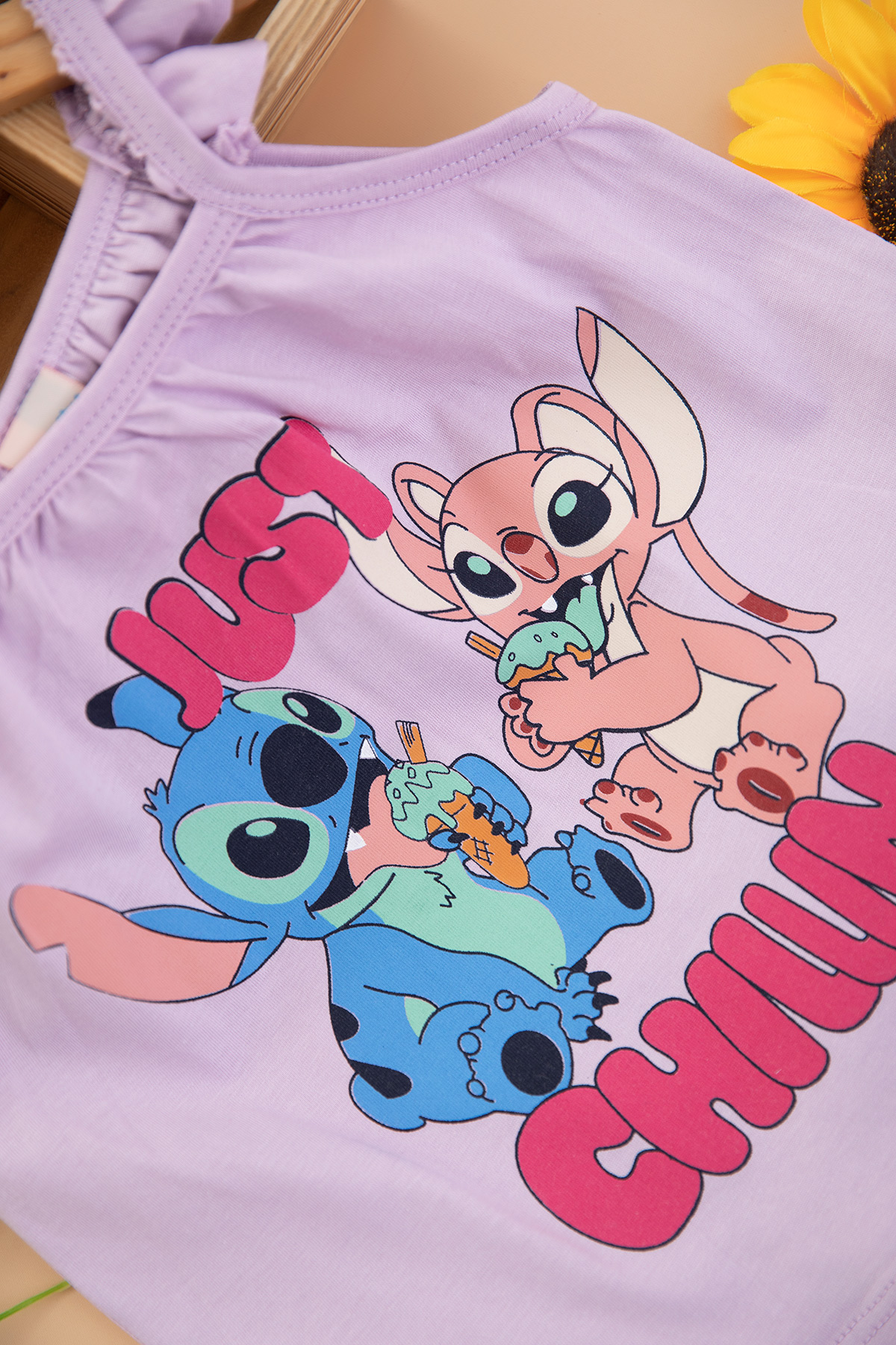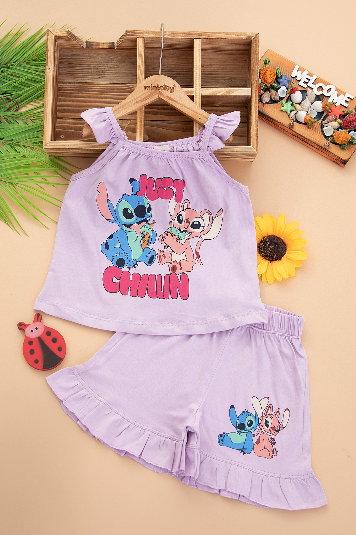 Kız Bebek Stitch Baskılı Şortlu Takım - 6112 (2-5 Yaş)