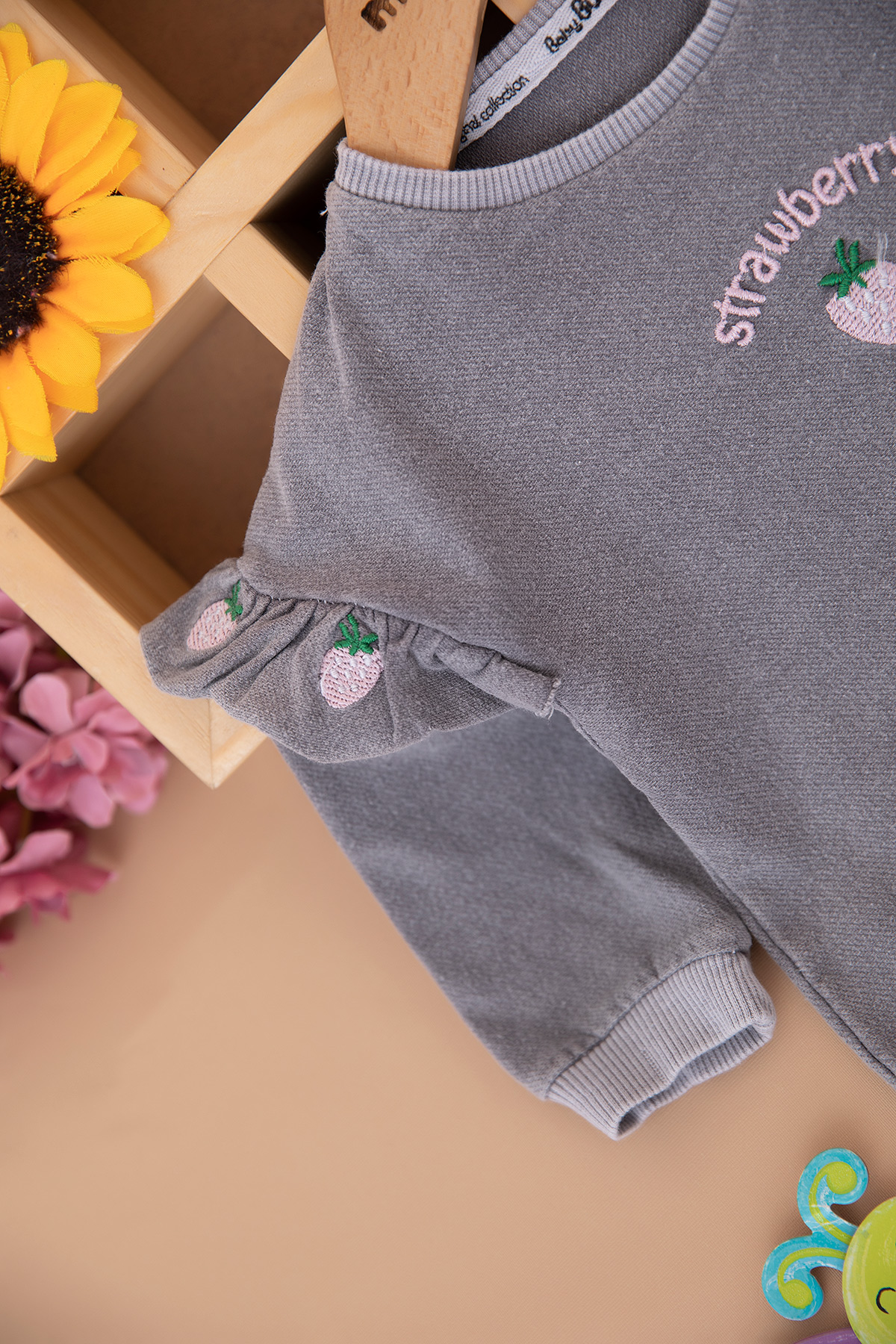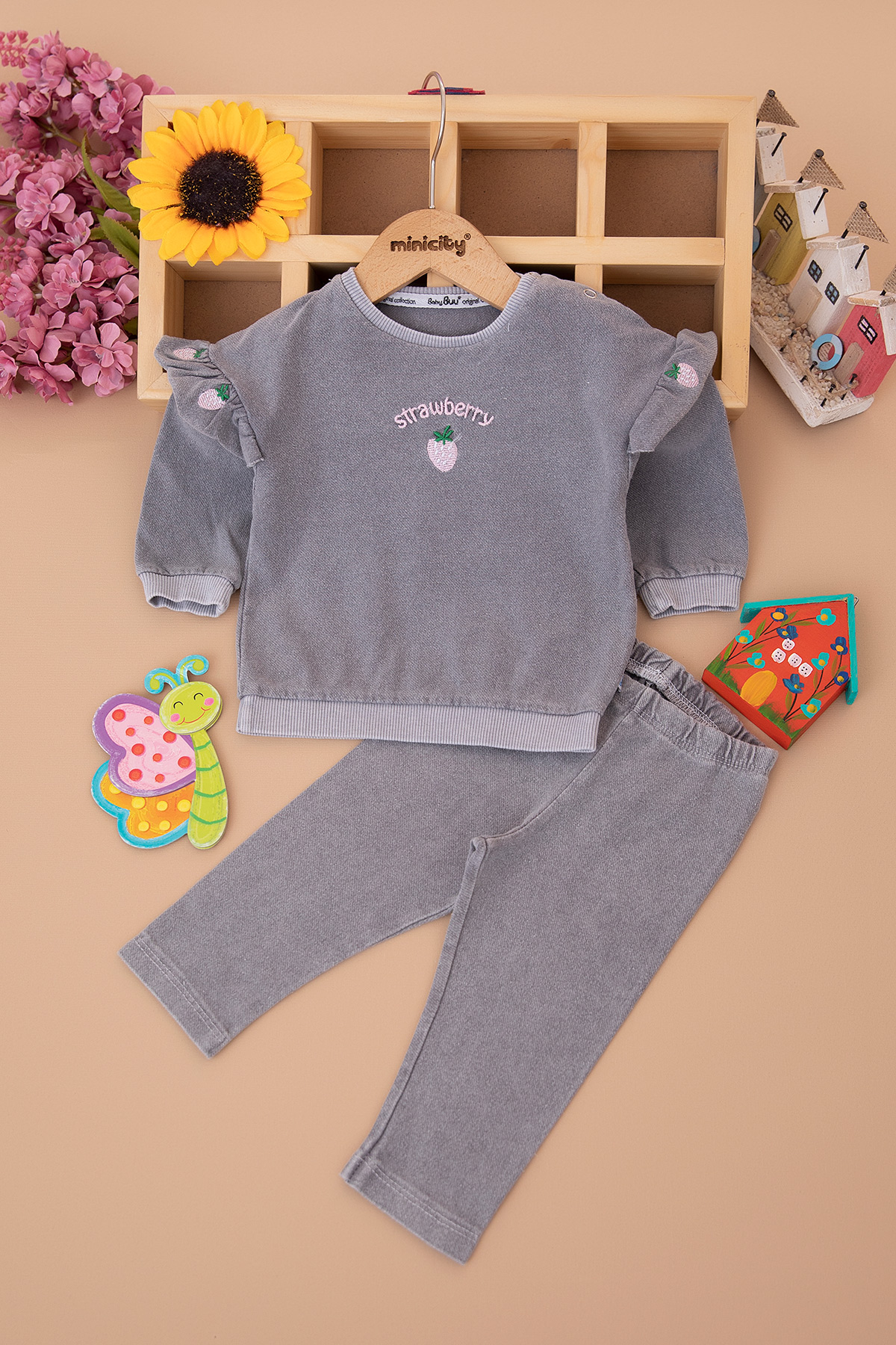 Kız Bebek Strawberr Nakışlı Kot Takım - 0348 (9-24 Ay)