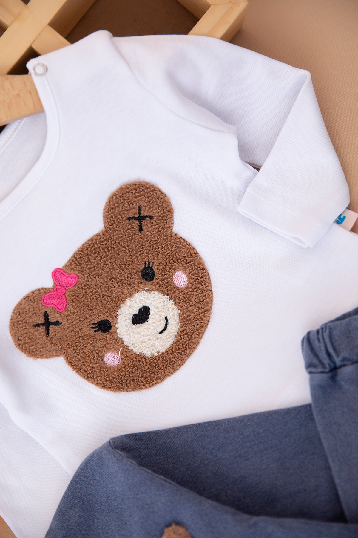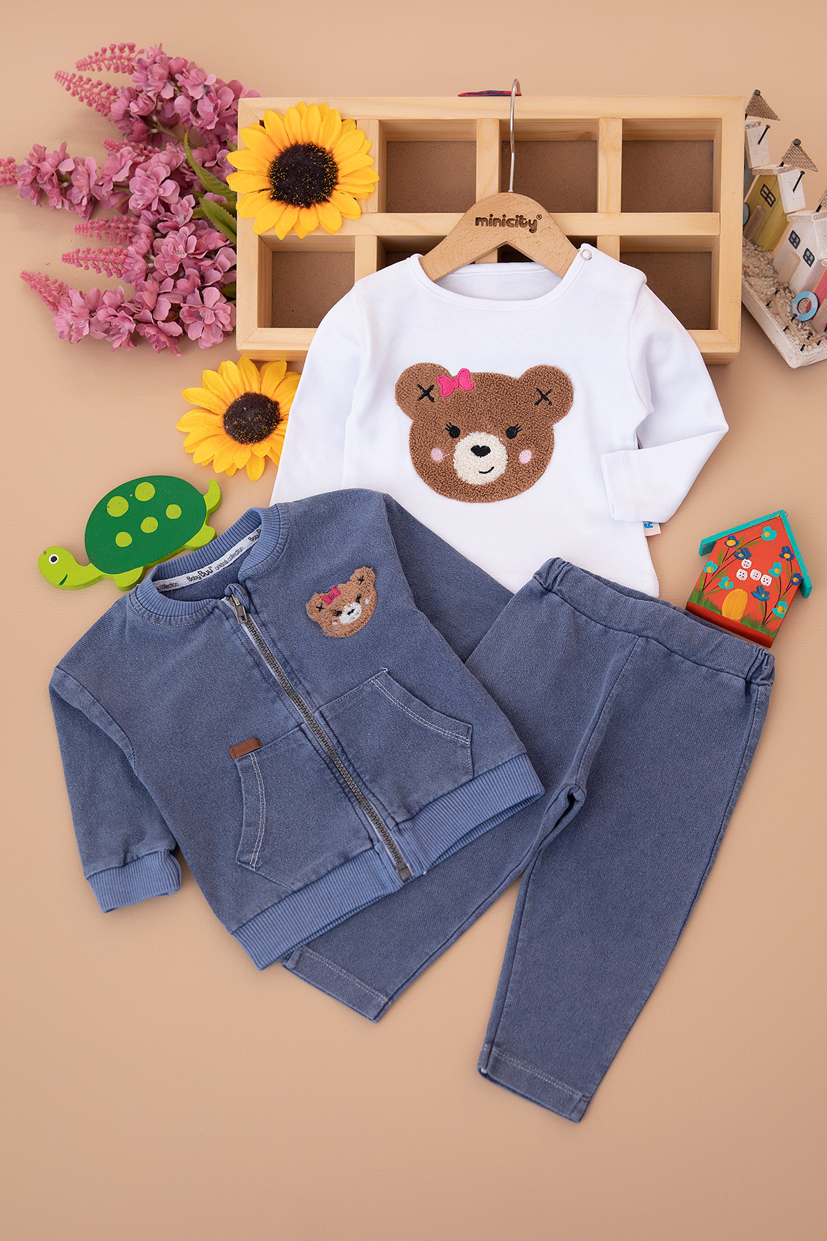 Kız Bebek Süzene Ayı Kot Üçlü Takım - 0350 (9-24 Ay)