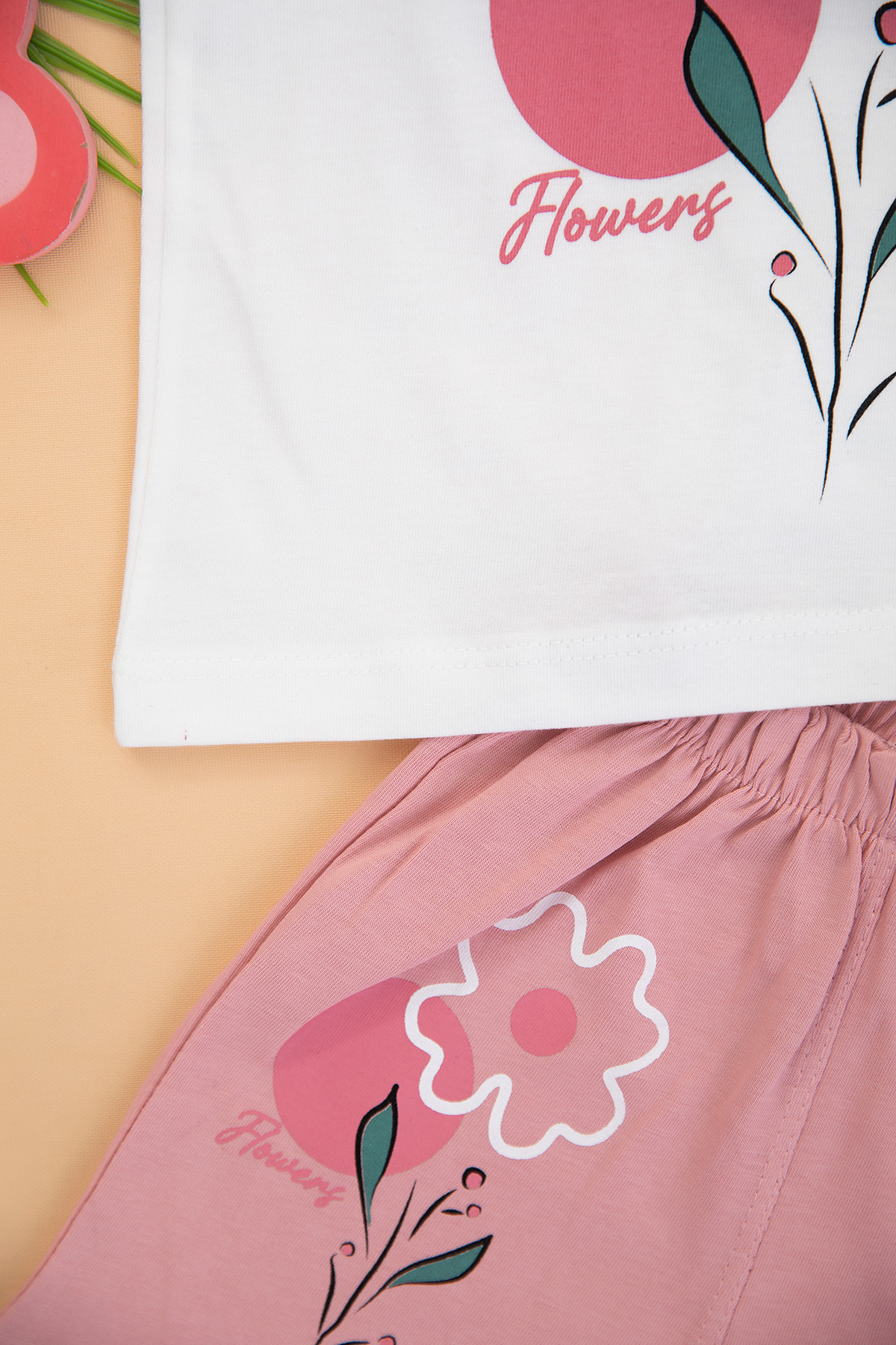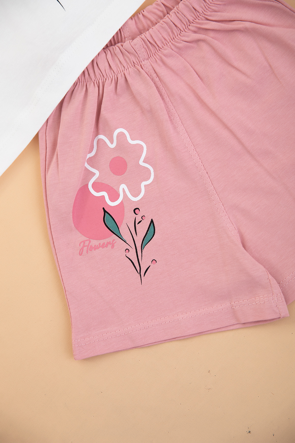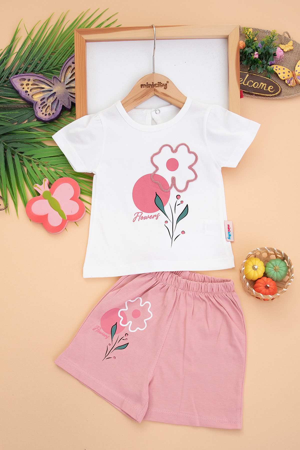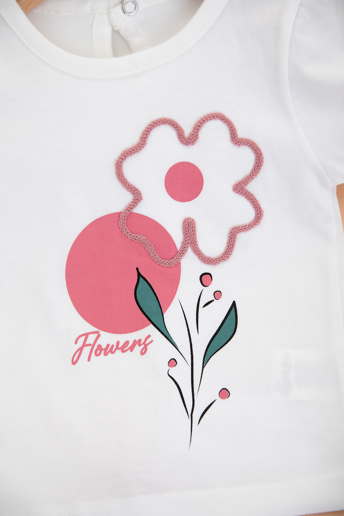 Kız Bebek Süzene Çiçek Nakışlı Şortlu Takım - 061 (9-24 Ay)