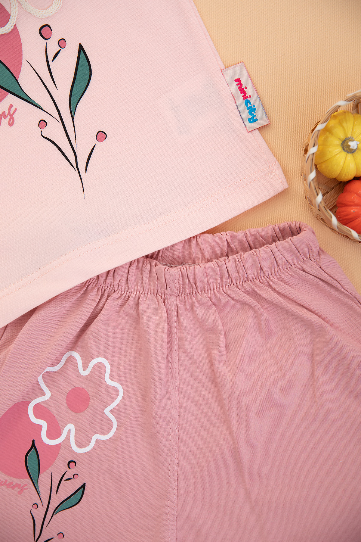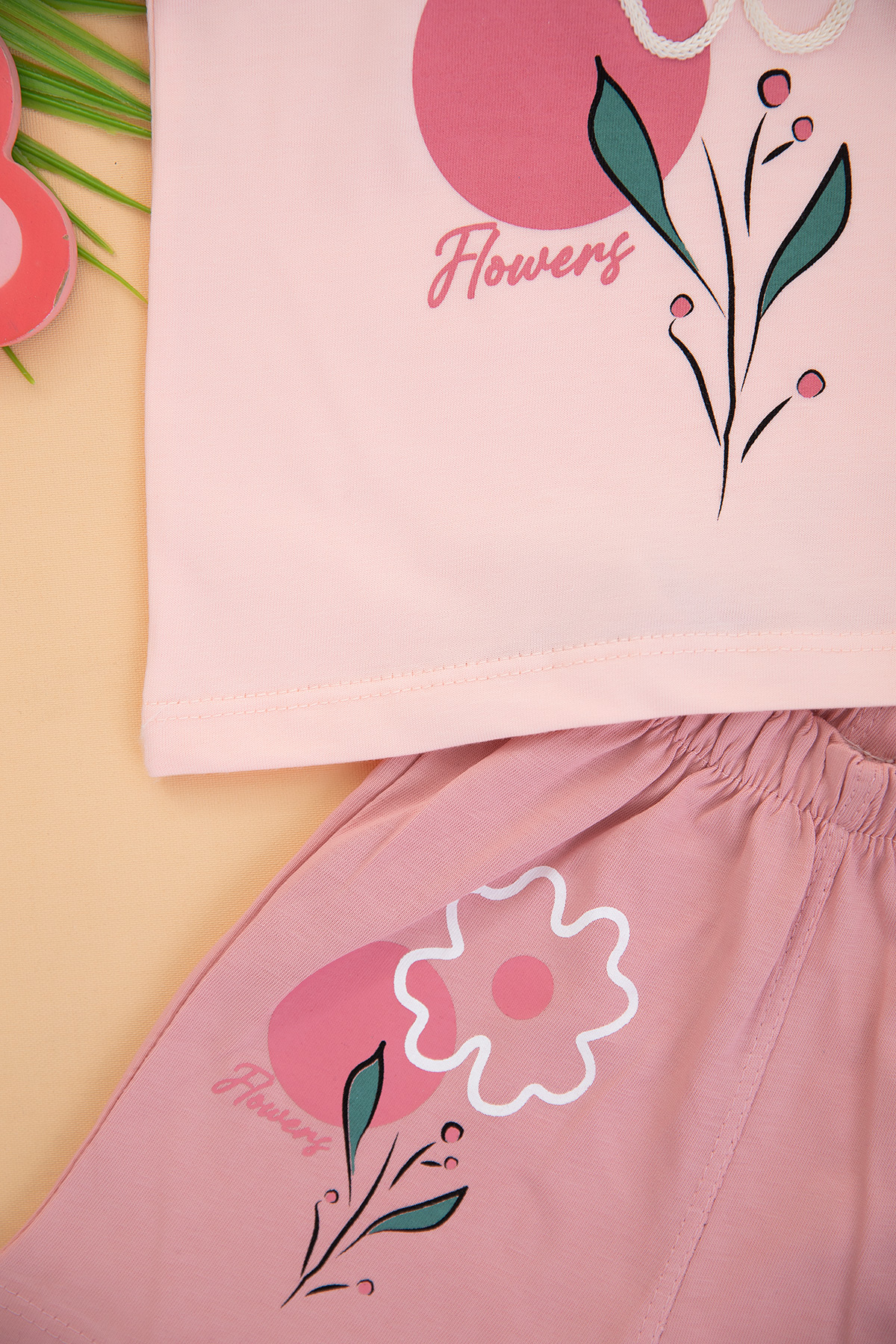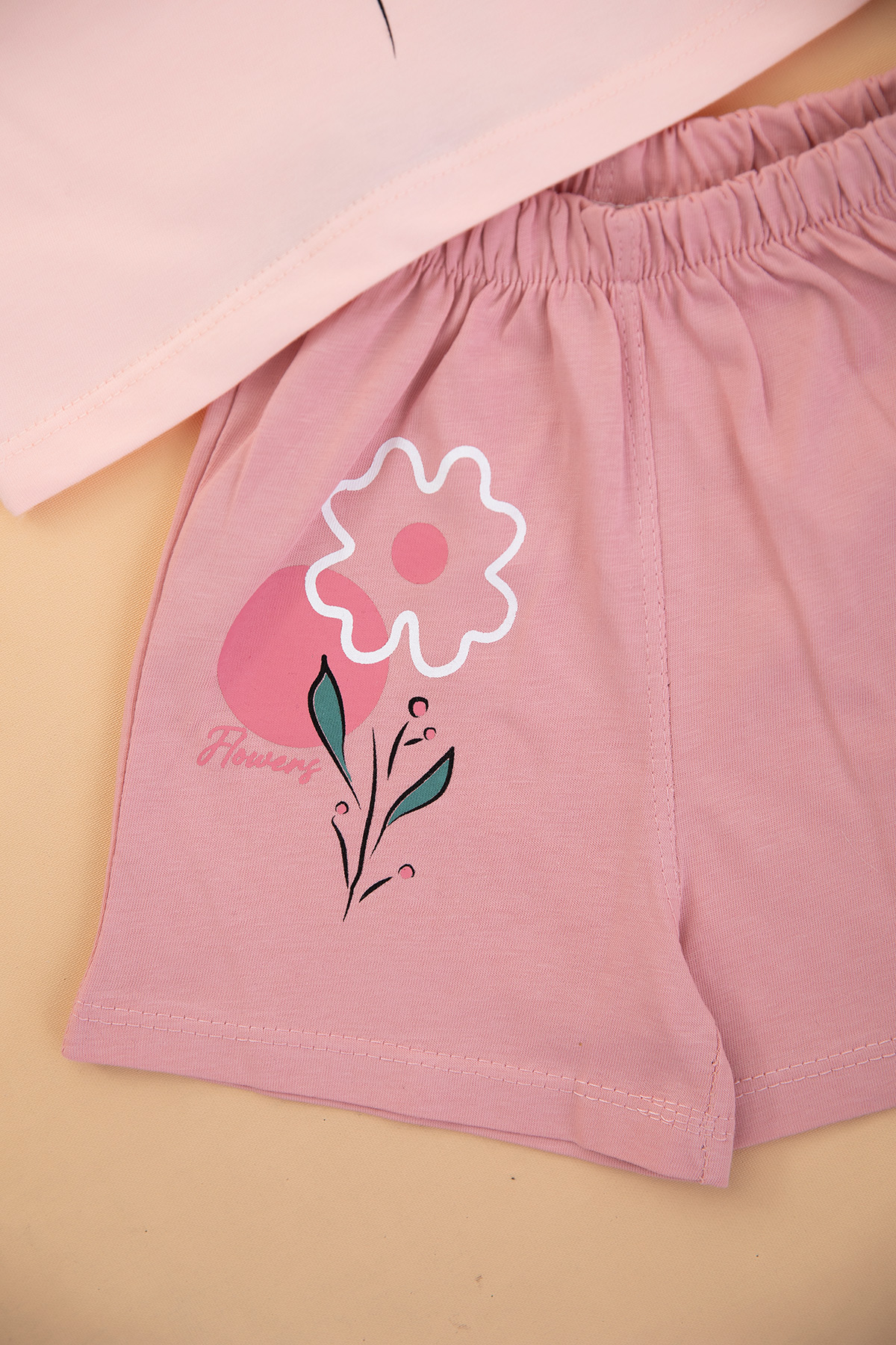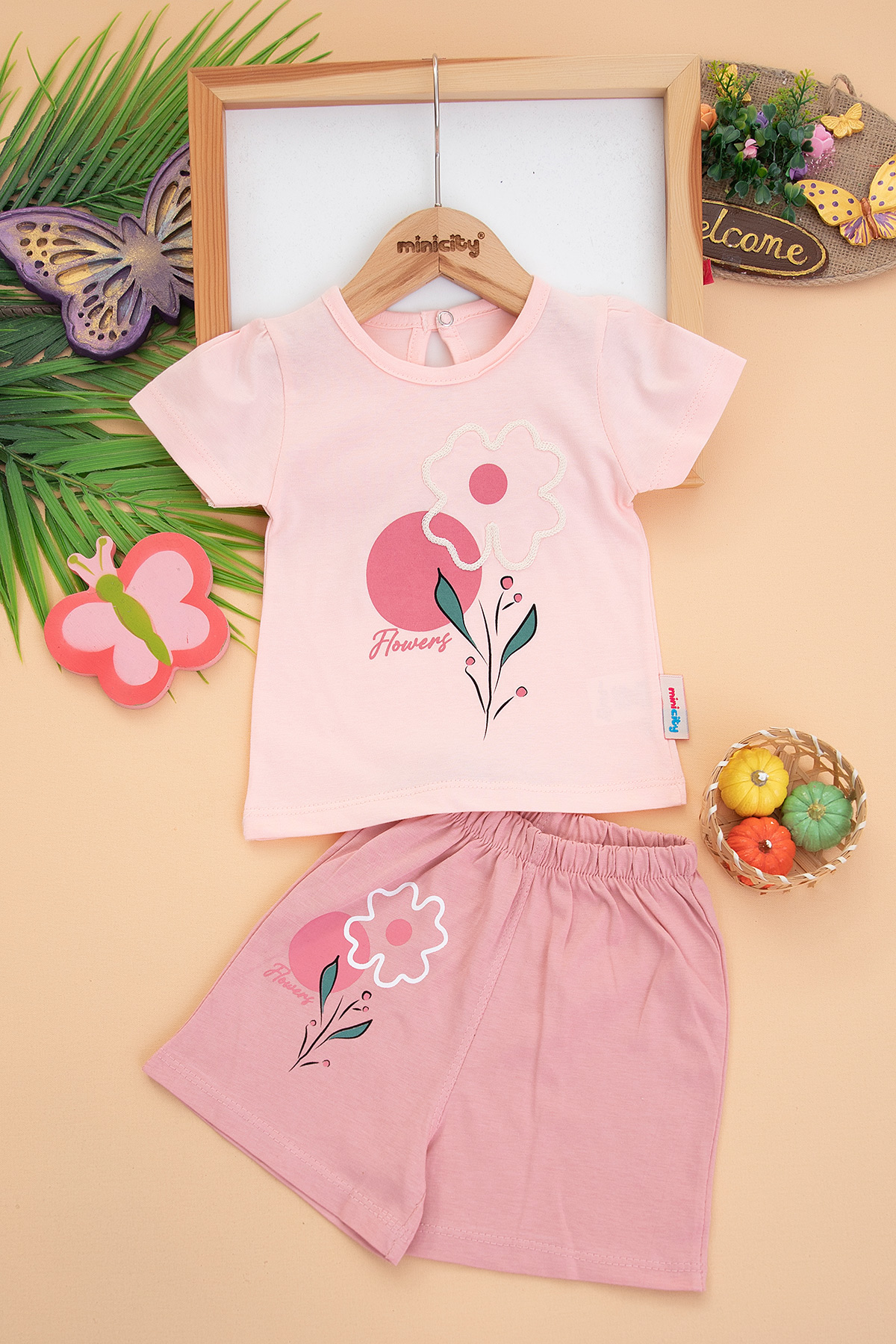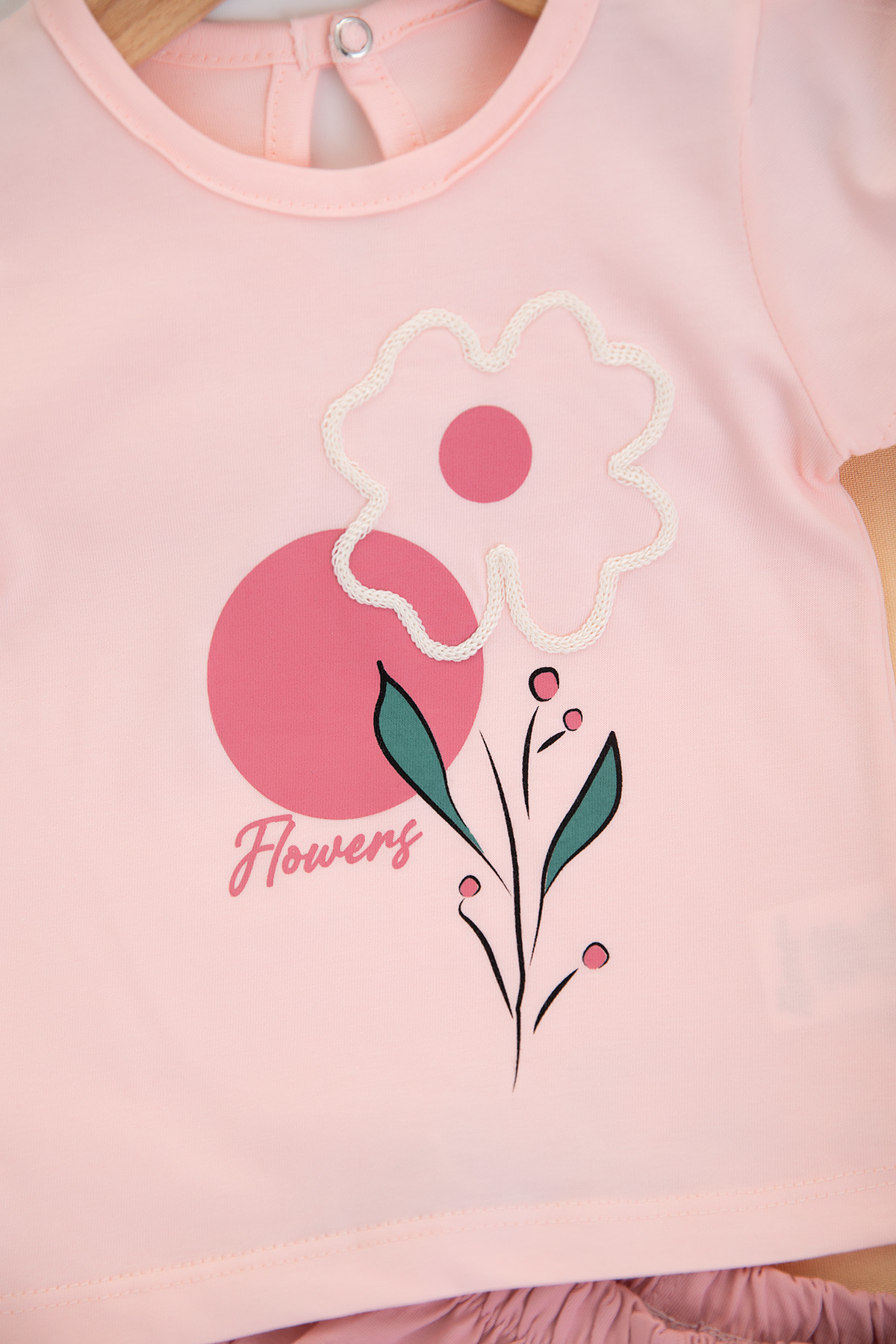 Kız Bebek Süzene Çiçek Nakışlı Şortlu Takım - 061 (9-24 Ay)