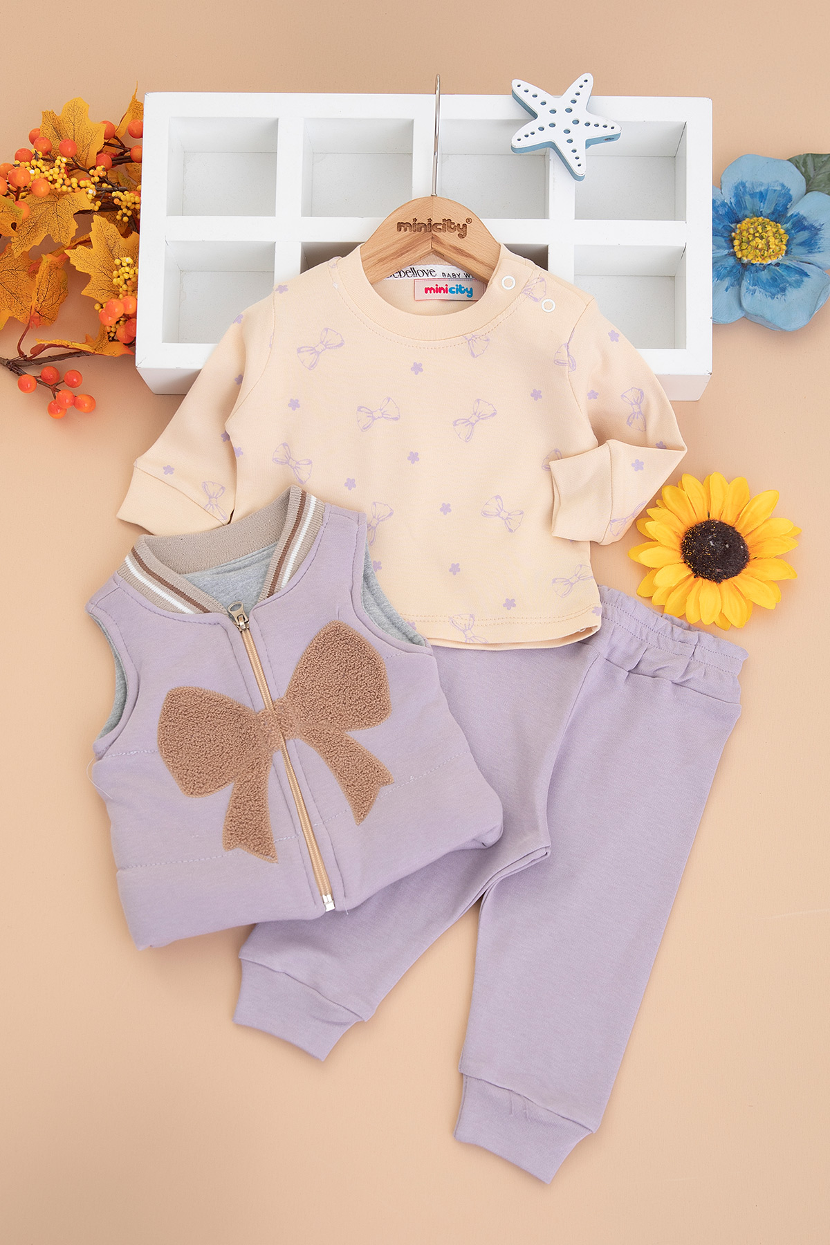 Kız Bebek Süzeneli Fiyonk Yelekli Takım - 14177 (0-12 Ay)