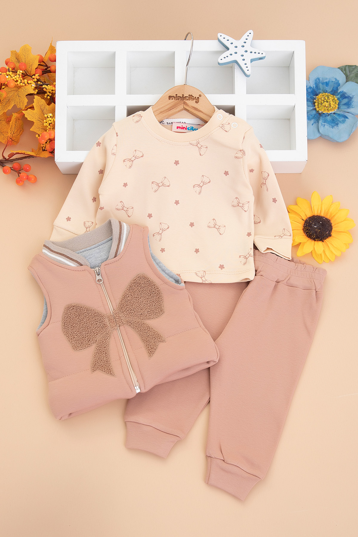 Kız Bebek Süzeneli Fiyonk Yelekli Takım - 14177 (0-12 Ay)