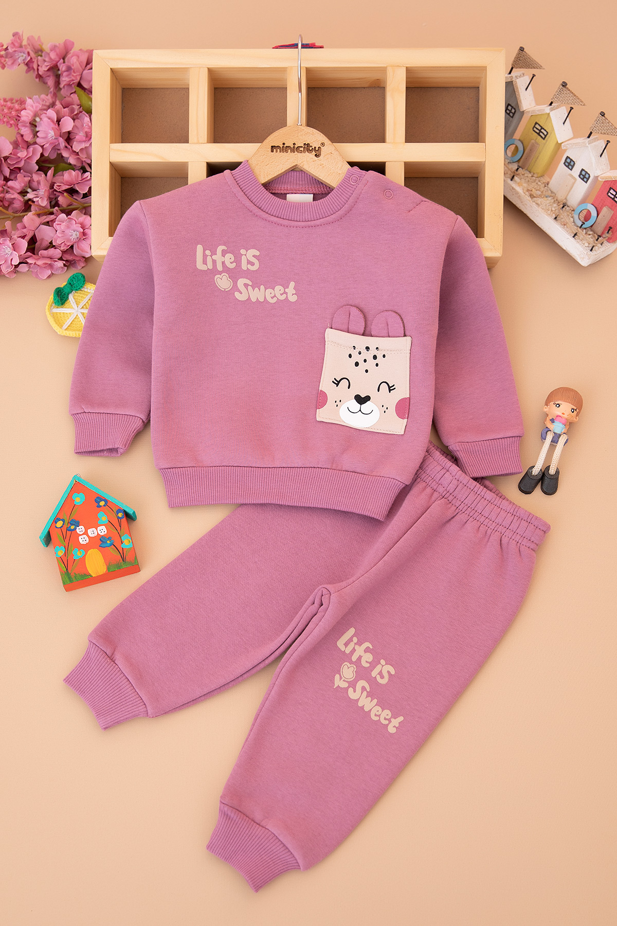 Kız Bebek Sweet Baskılı Üçip Takım - 25904 (9-24 Ay)