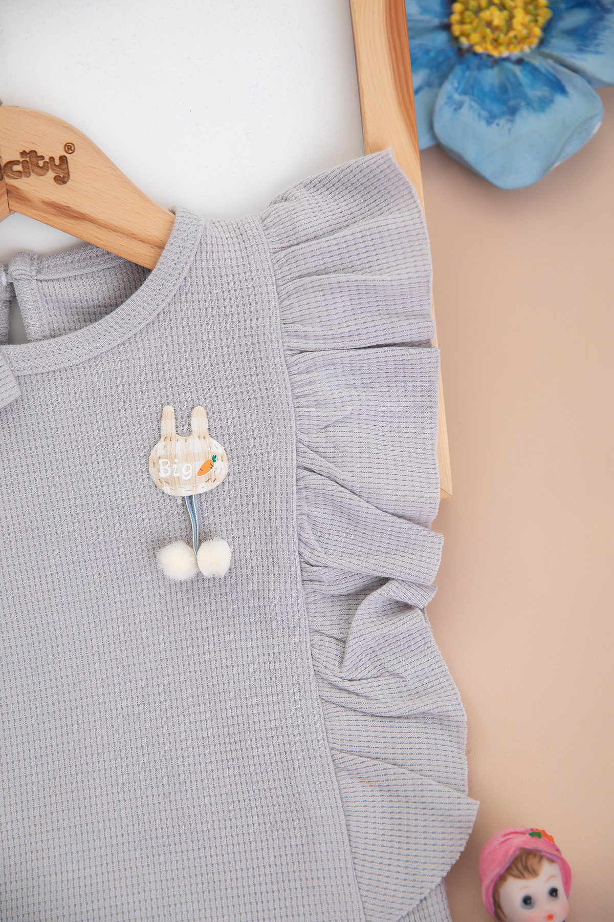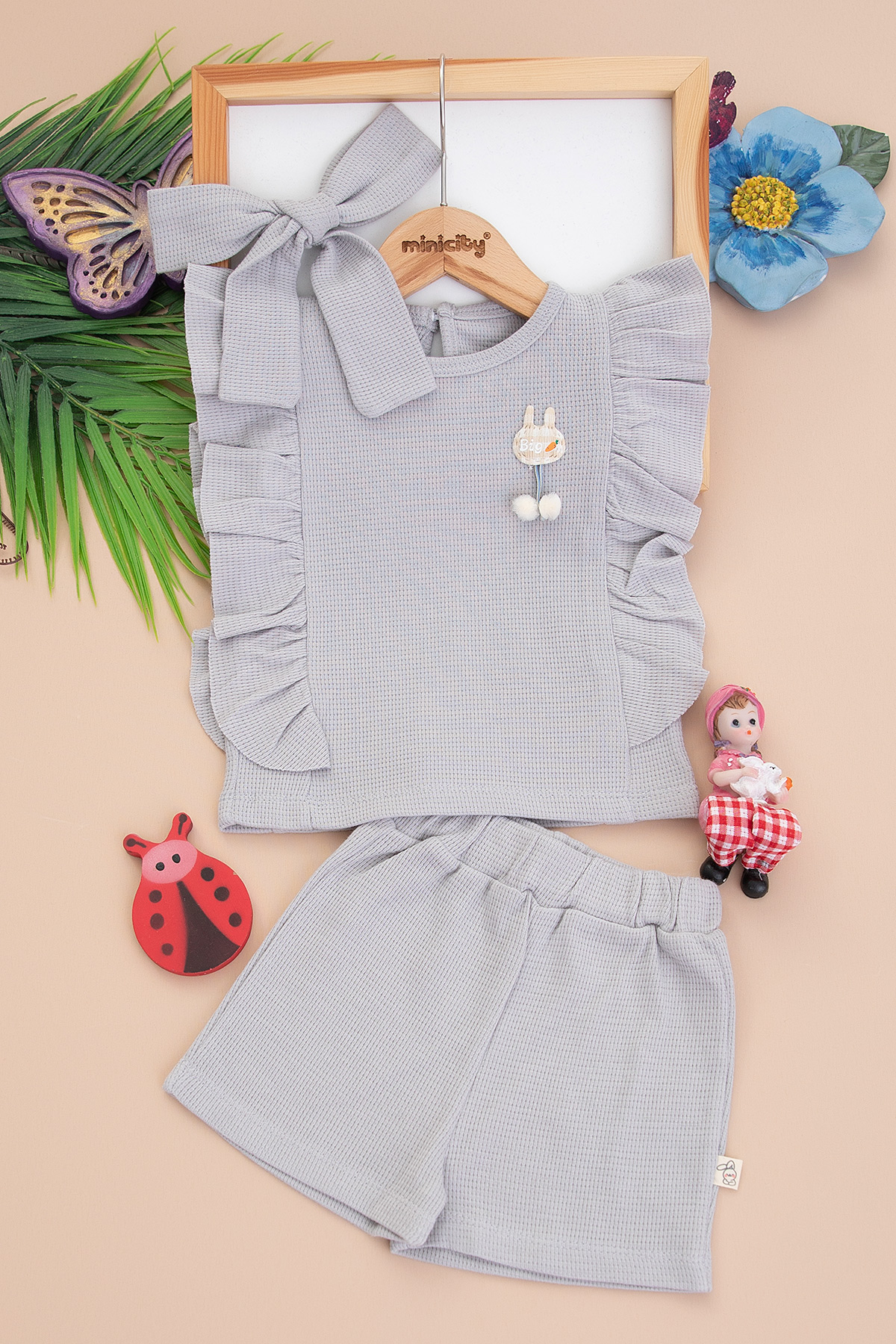 Kız Bebek Tavşan Aksesuarlı Waffle Takım - 2049 (6-24 Ay)