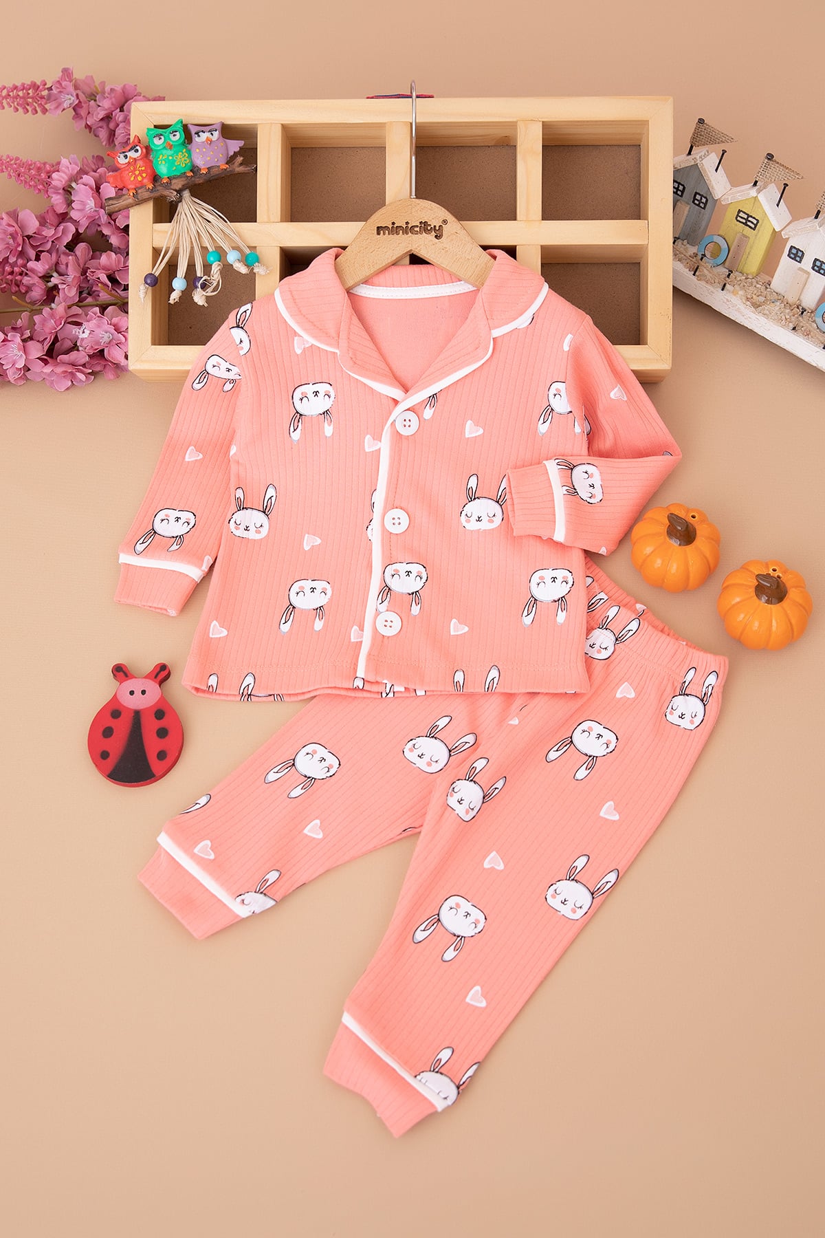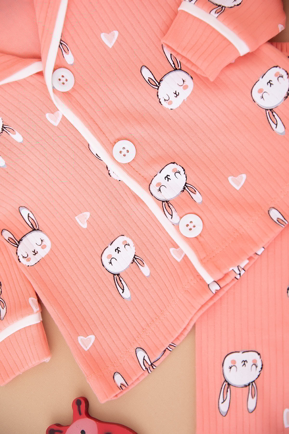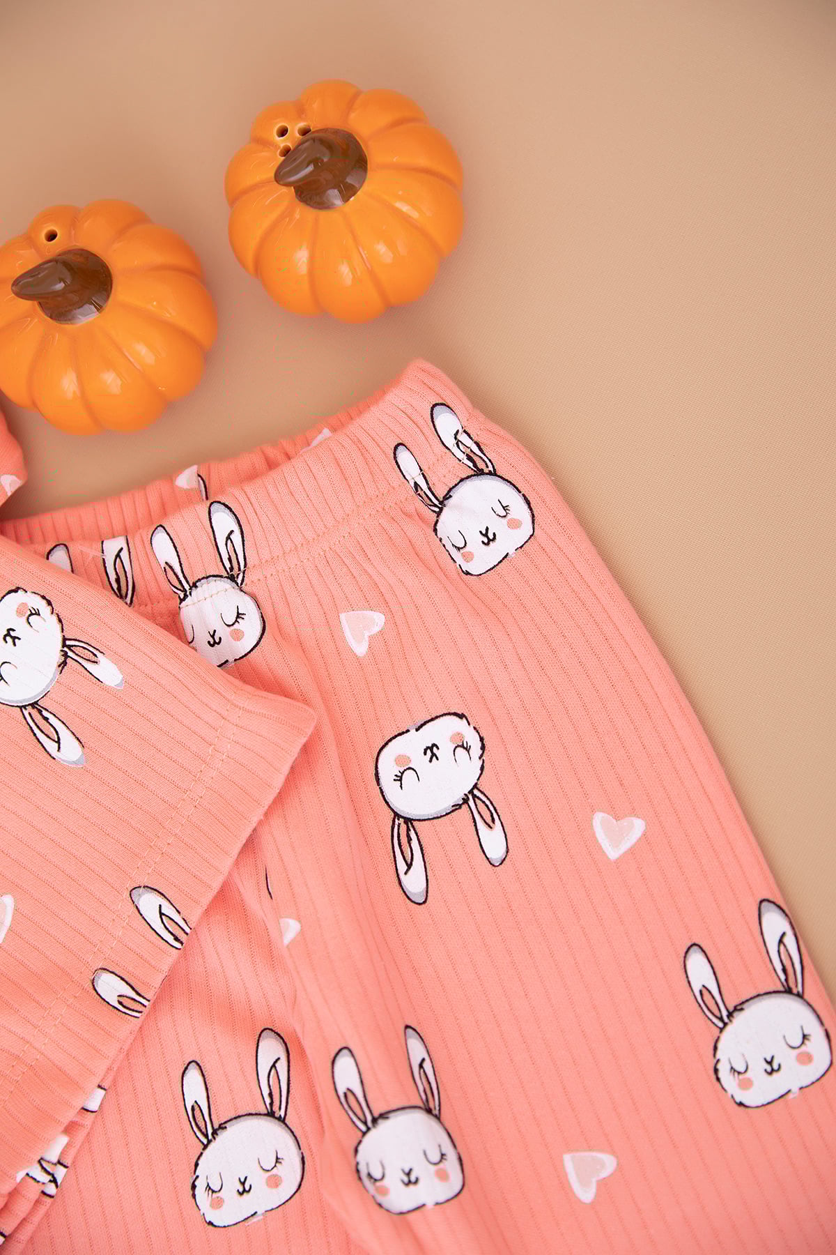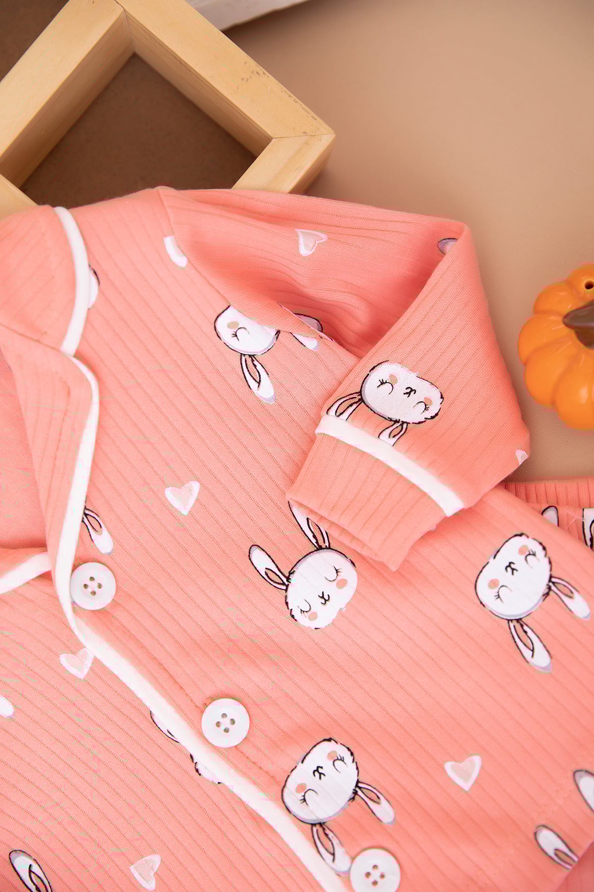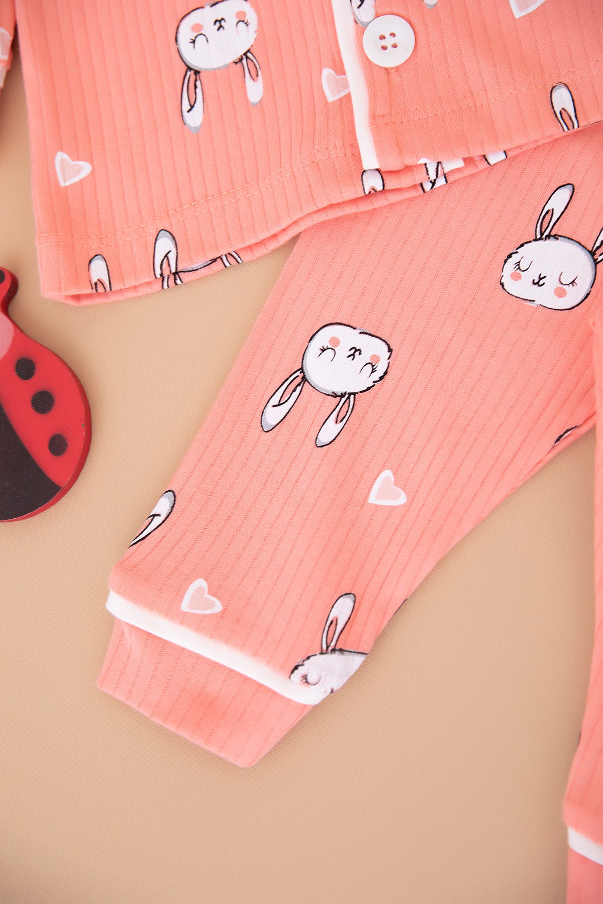 Kız Bebek Tavşan Baskılı Pijama Takımı - 1102 (6-24 Ay)