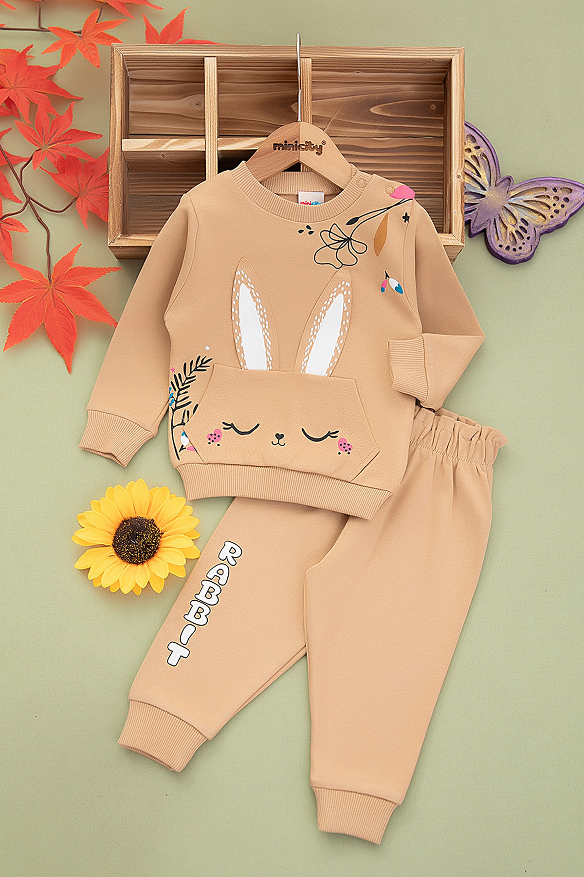 Kız Bebek Tavşan Baskılı Takım - 24485 (9-24 Ay)