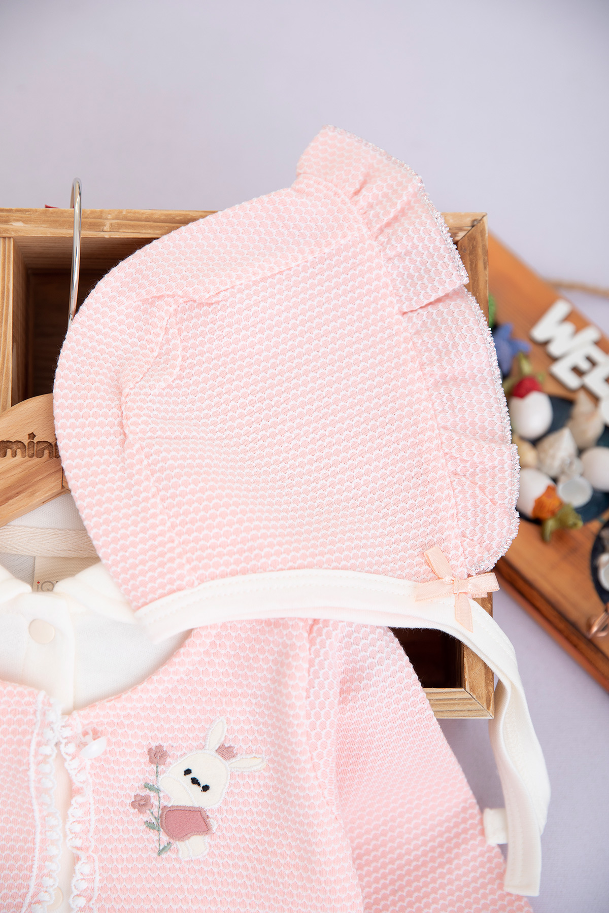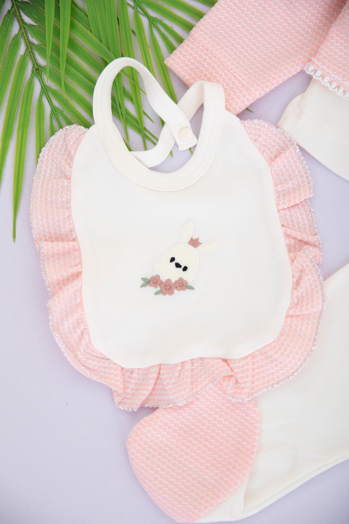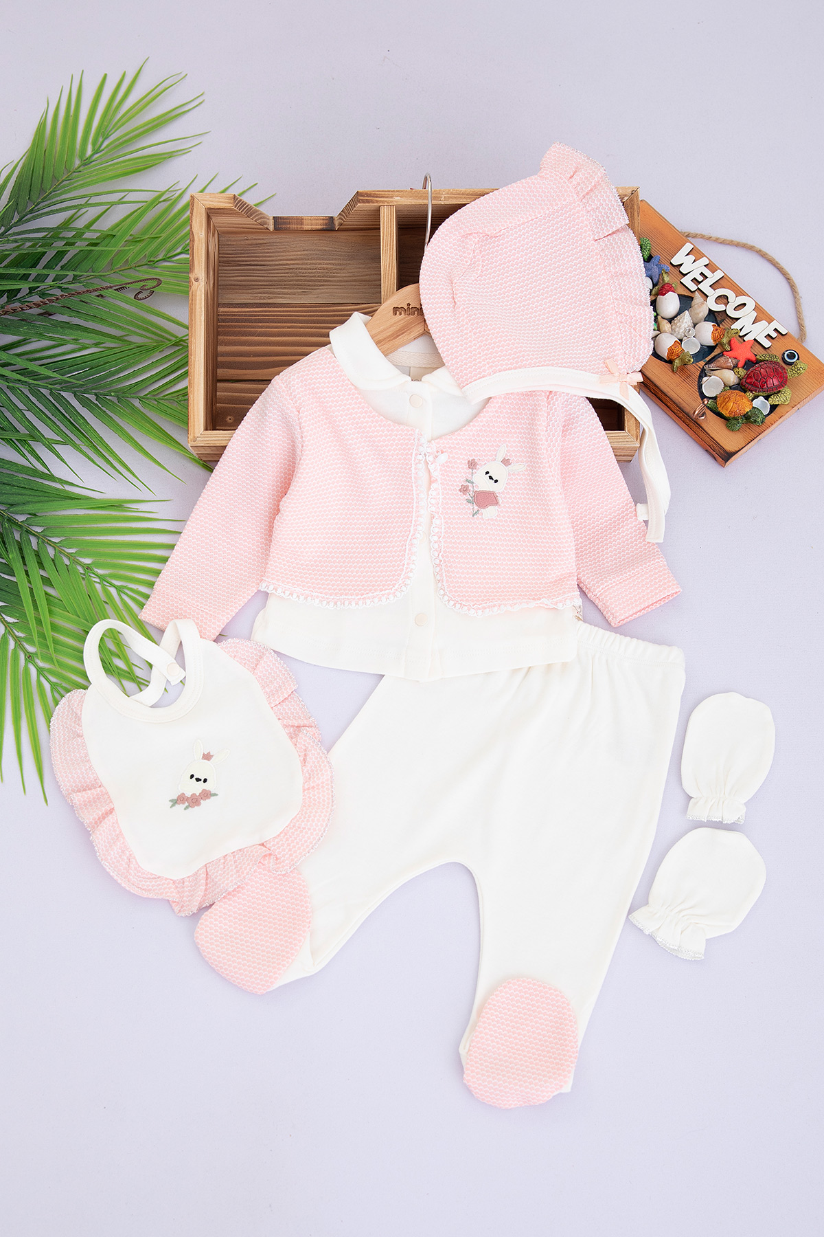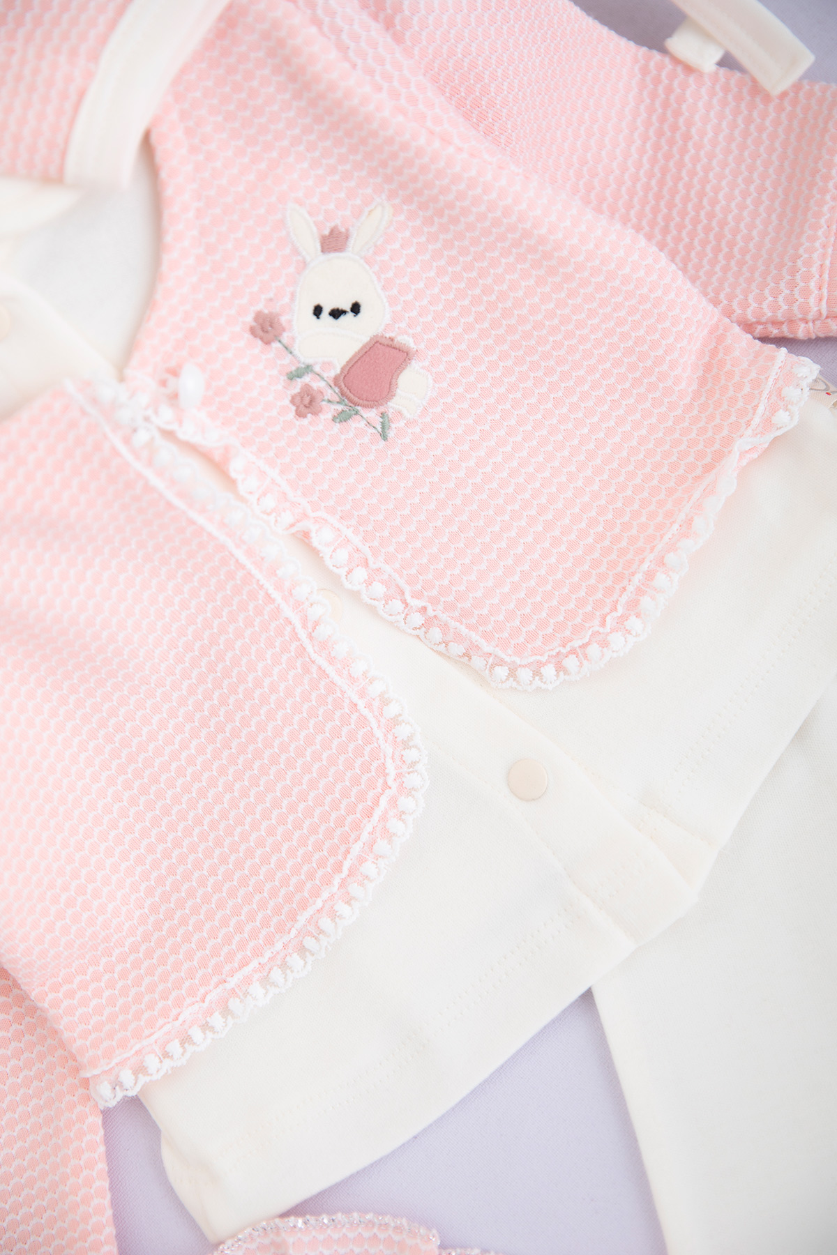 Kız Bebek Tavşan Nakışlı 5`Li Zıbın Seti - 1029 (0-3 Ay)