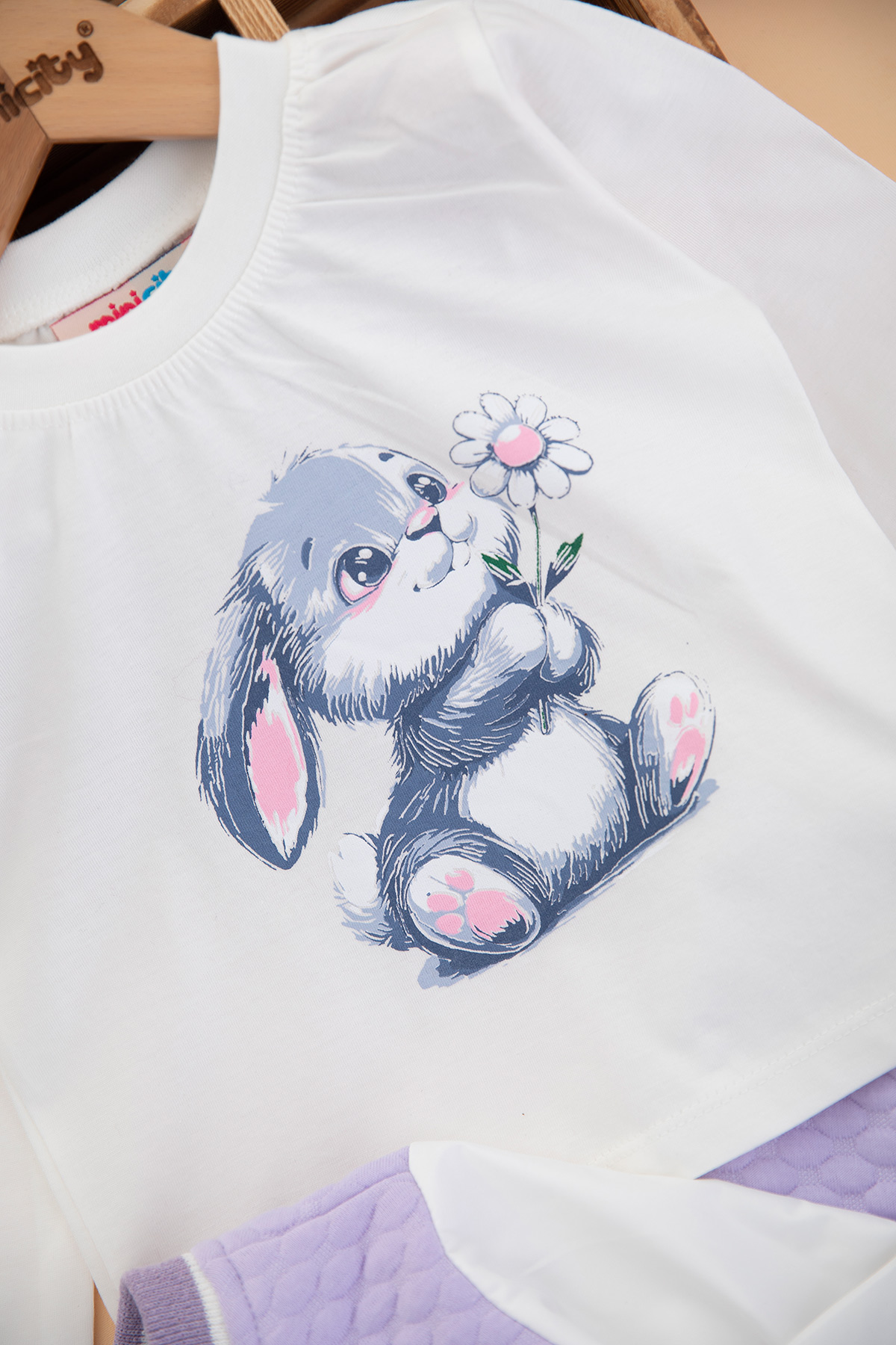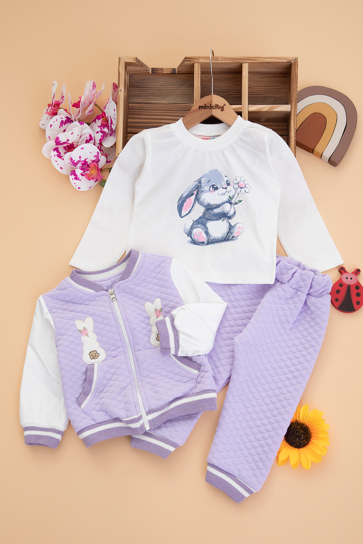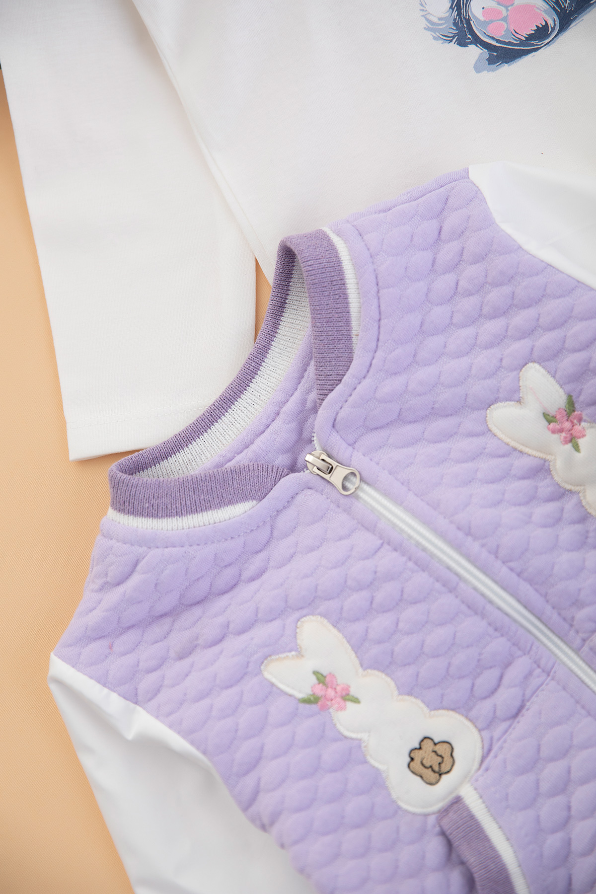Kız Bebek Tavşan Nakışlı Hırkalı Takım - 40603 (9-36 Ay)