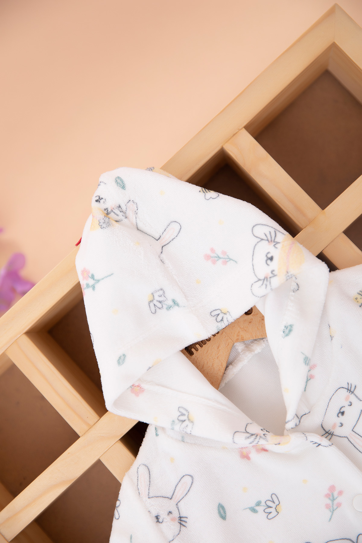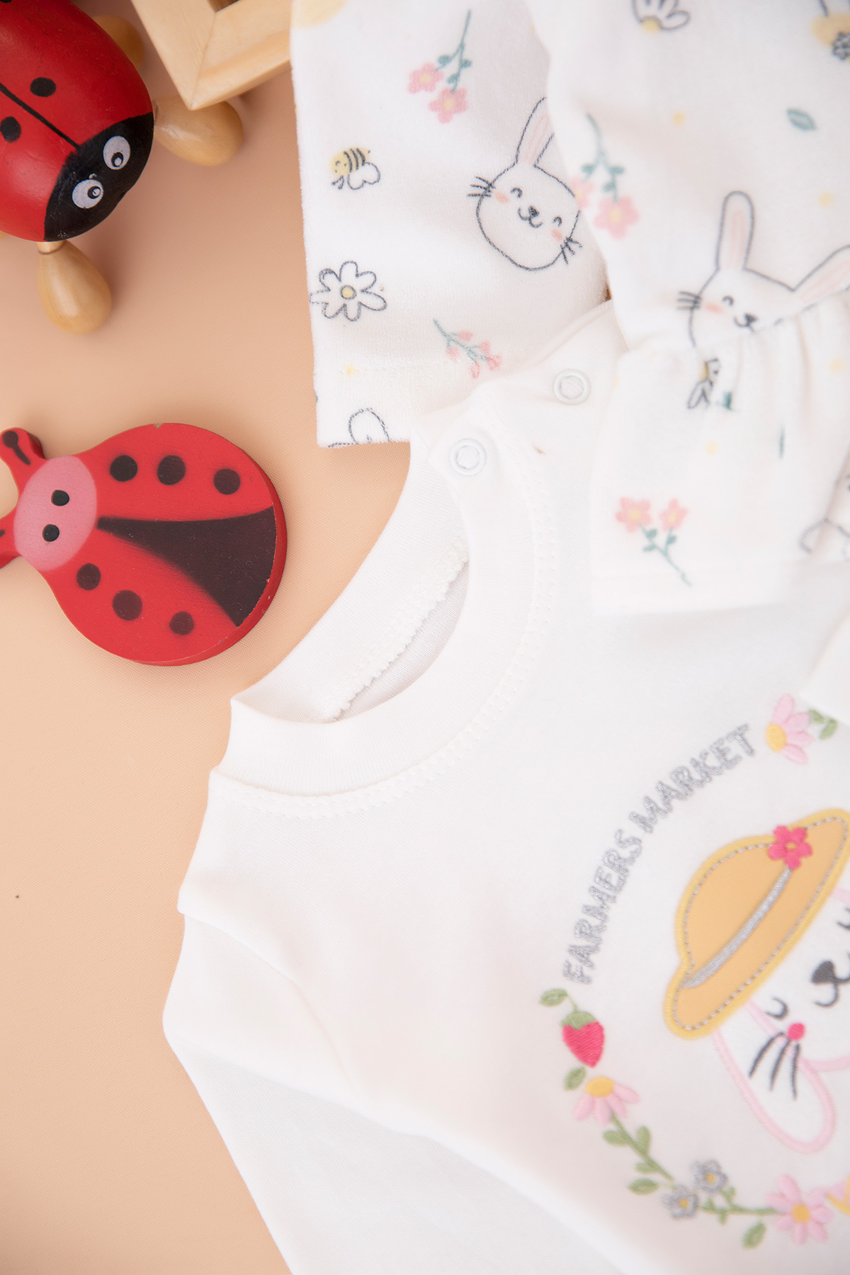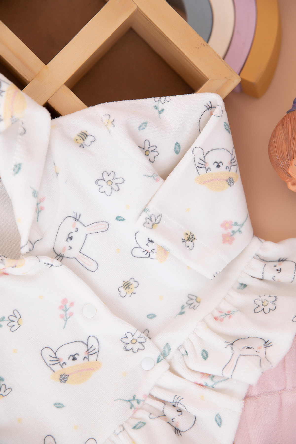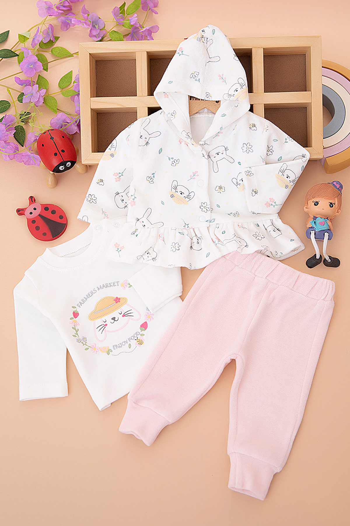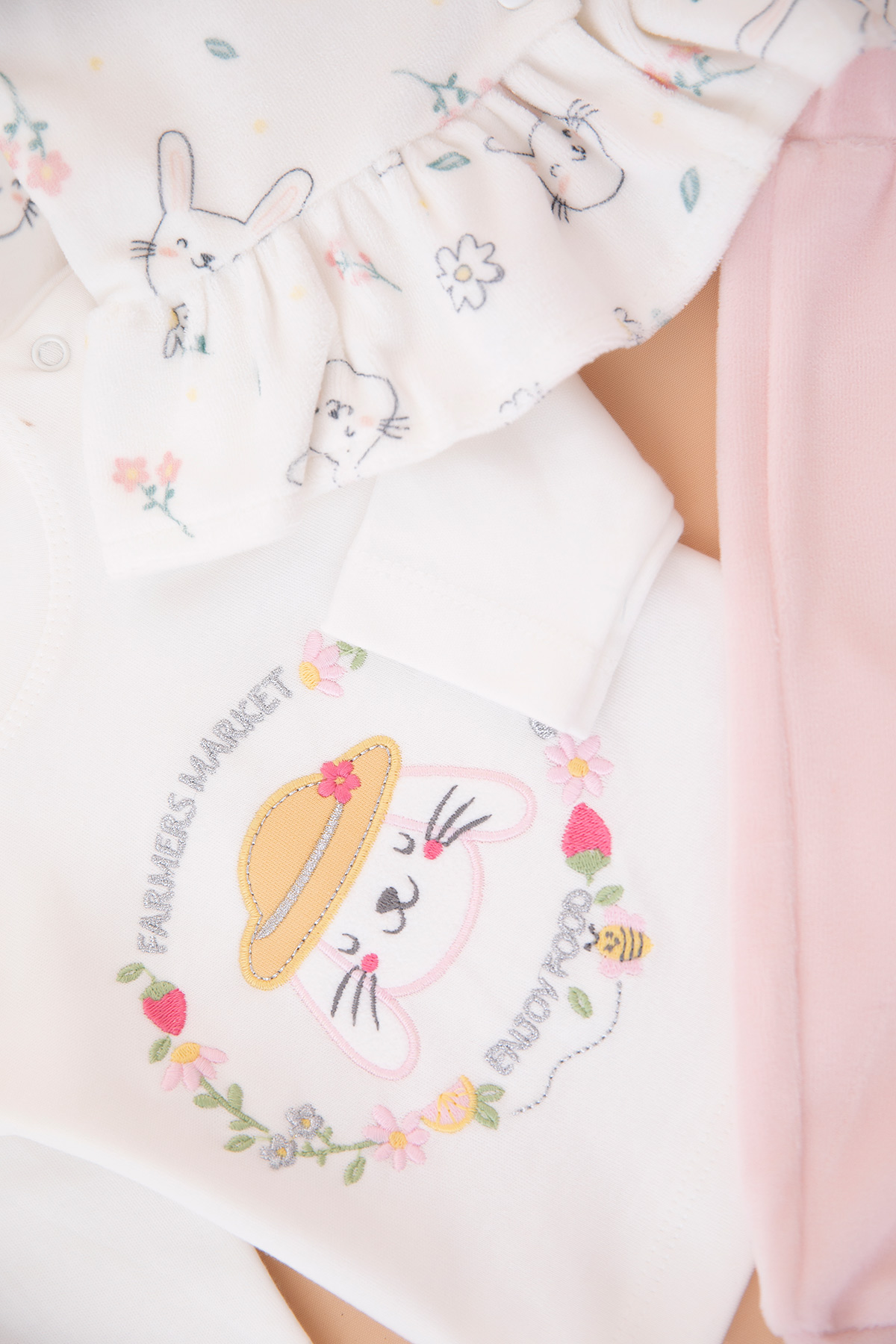 Kız Bebek Tavşan Nakışlı Kadife Üçlü Takım - 7123 (3-12 Ay)