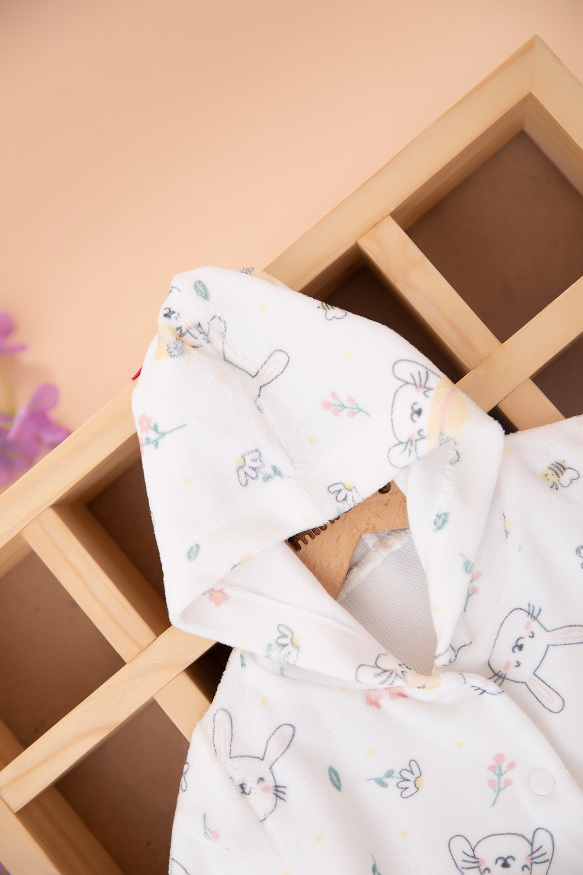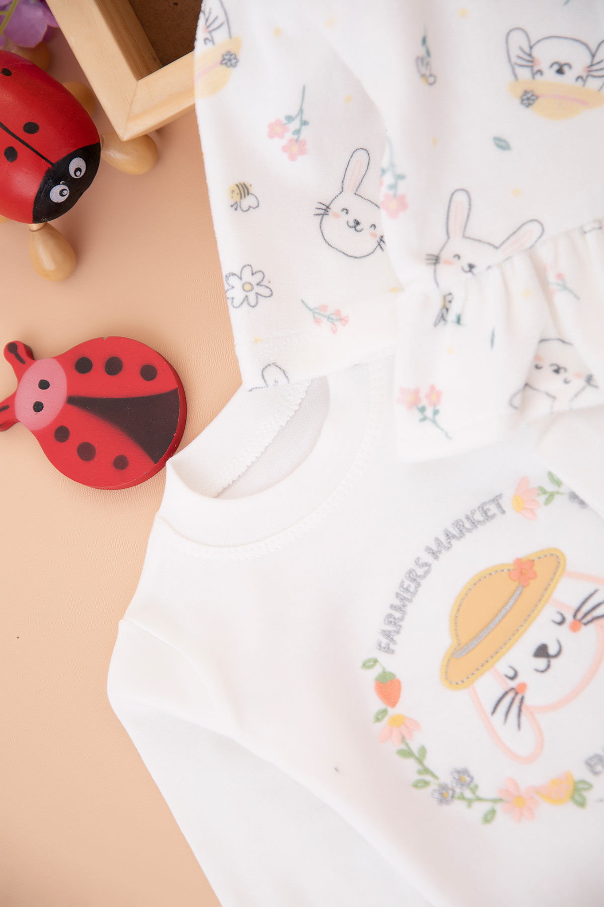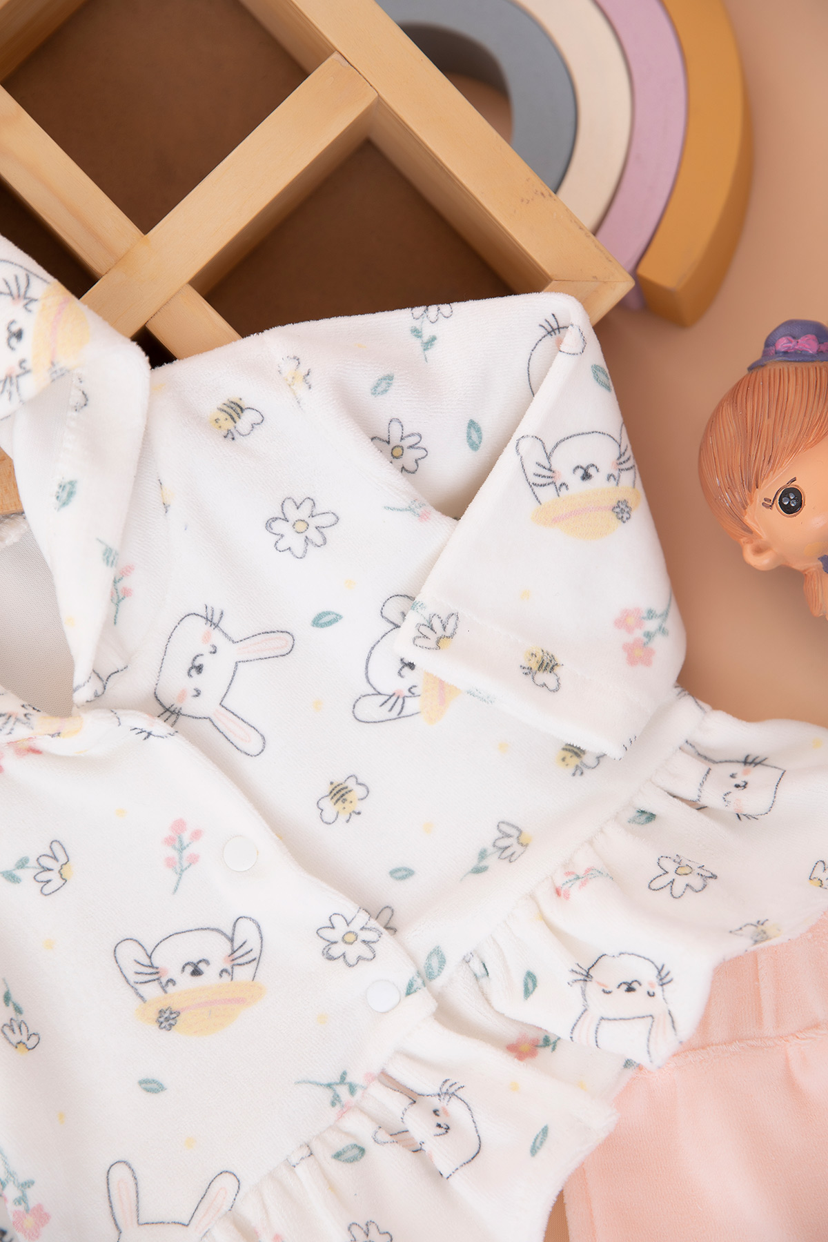 Kız Bebek Tavşan Nakışlı Kadife Üçlü Takım - 7123 (3-12 Ay)