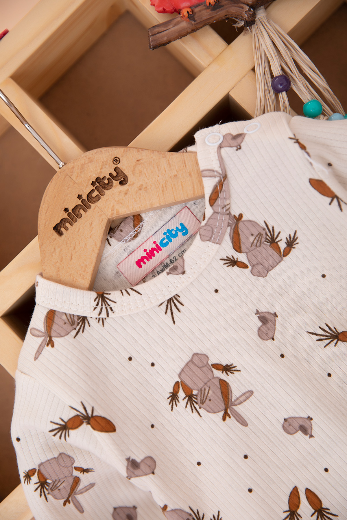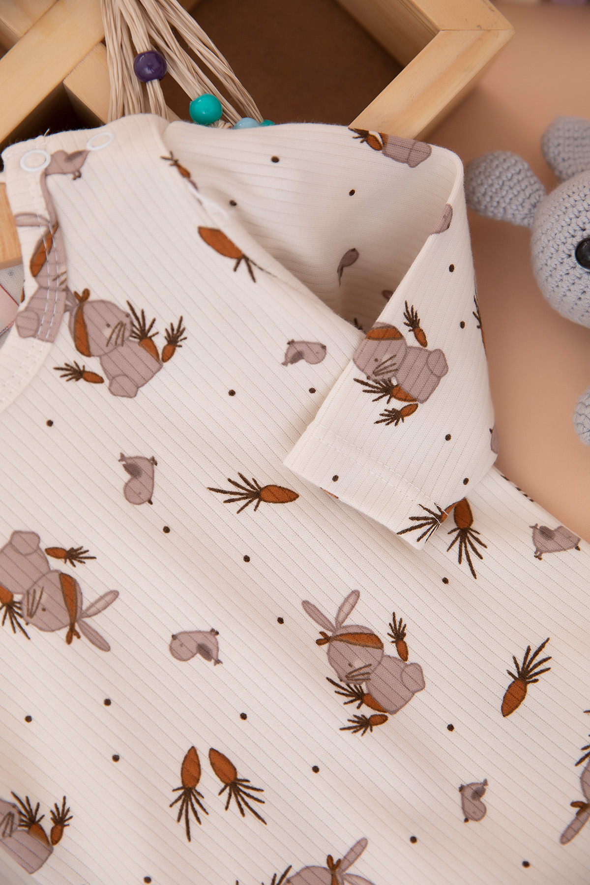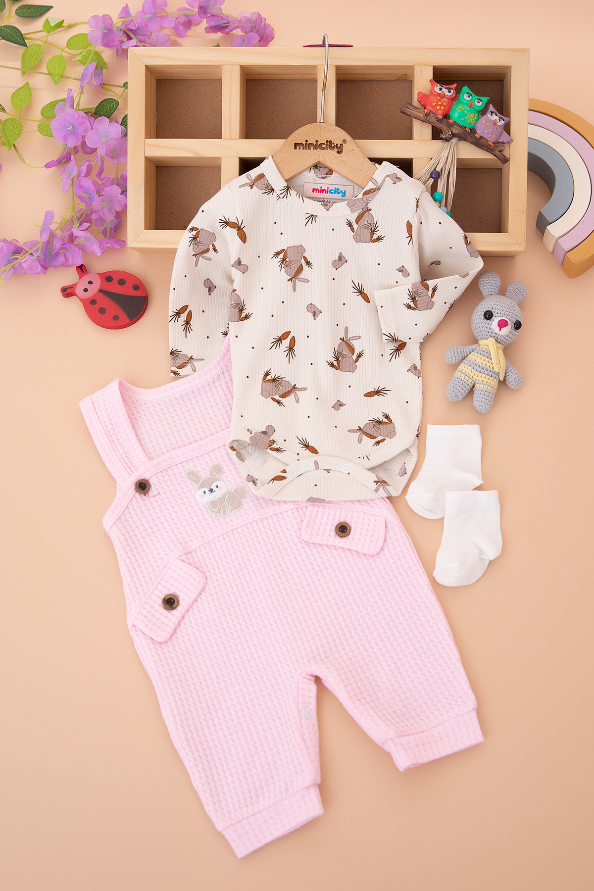 Kız Bebek Tavşan Nakışlı Waffle Badili Salopet - 1456 (3-9 Ay)
