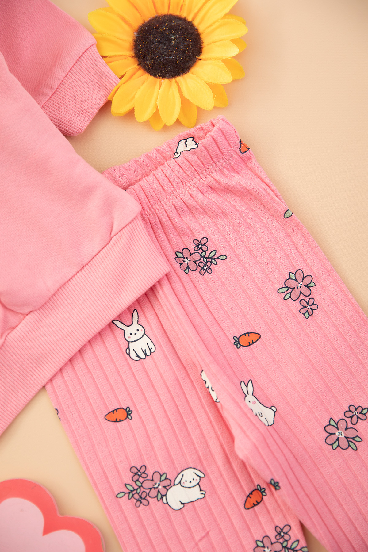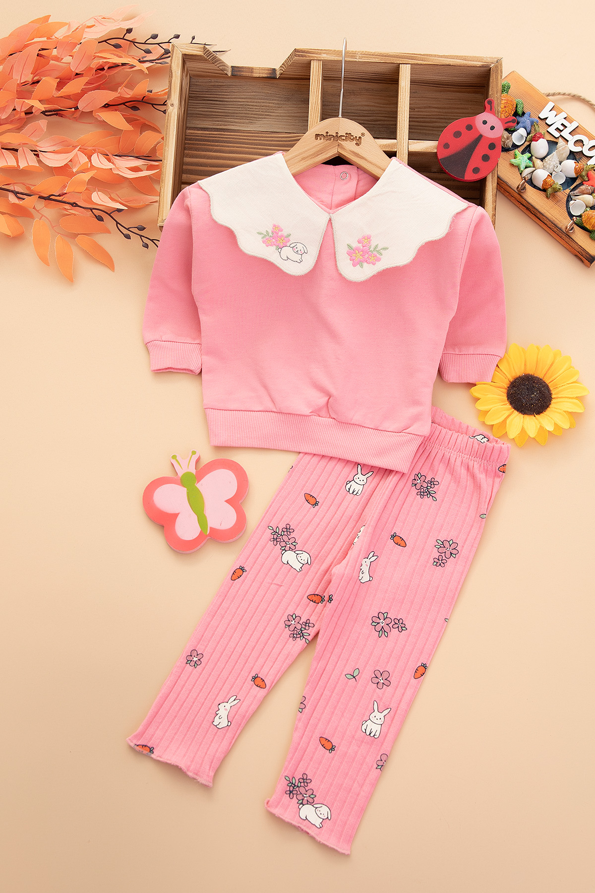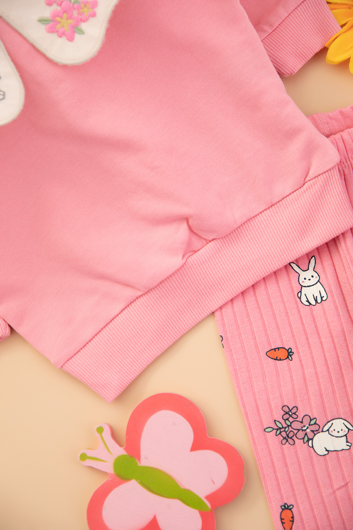 Kız Bebek Tavşan Ve Çiçek Nakışlı Takım - 2609 (6-24 Ay)