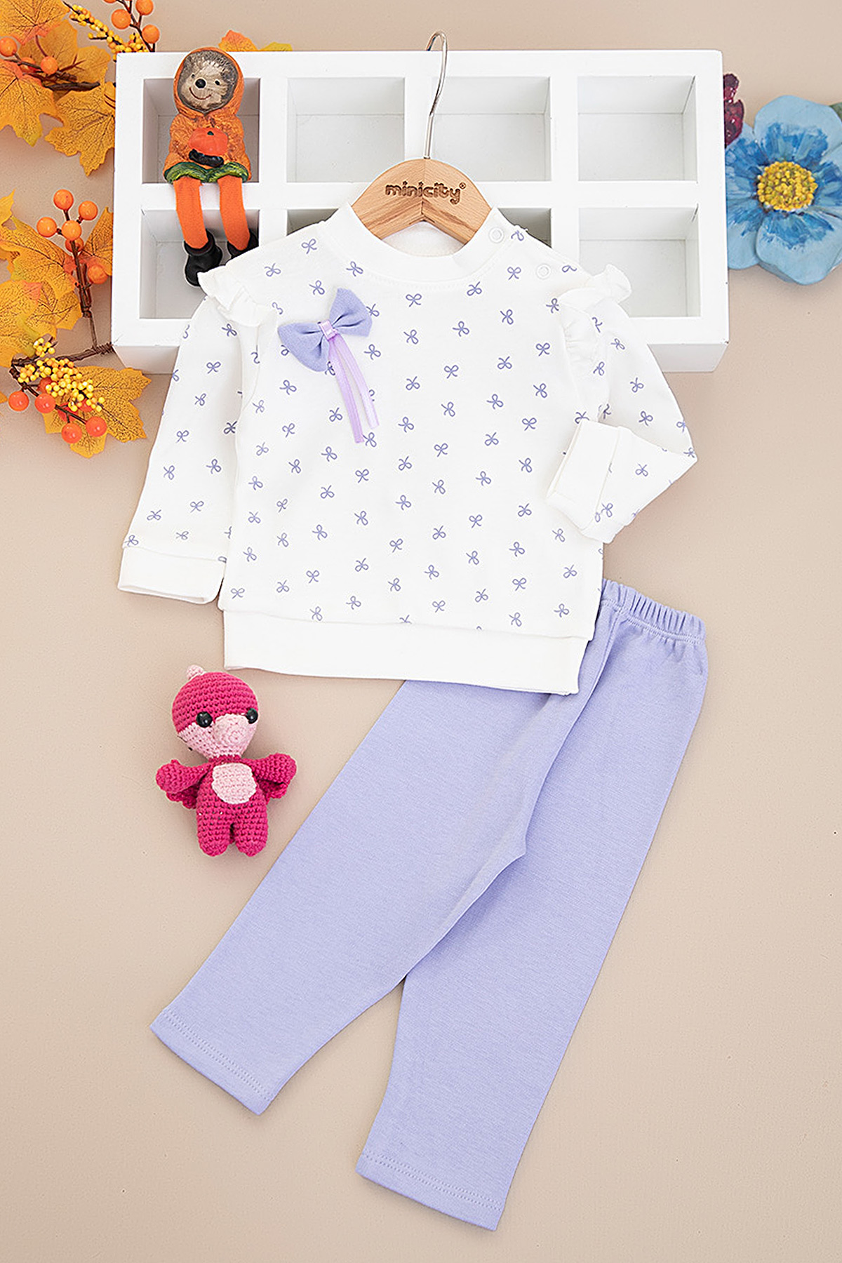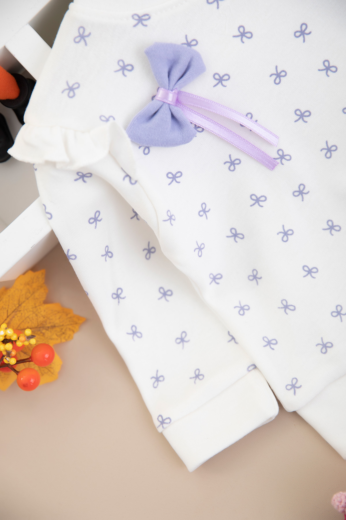 Kız Bebek Tek Fiyonklu Baskılı Takım (6-18 Ay)