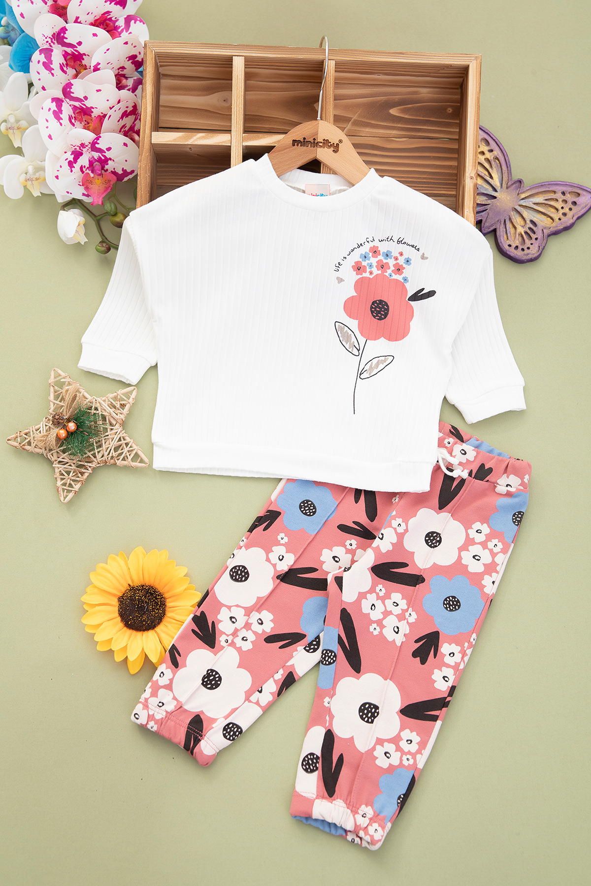 Kız Bebek Tek Papatya Baskılı Takım - 9115 (9-24 Ay)