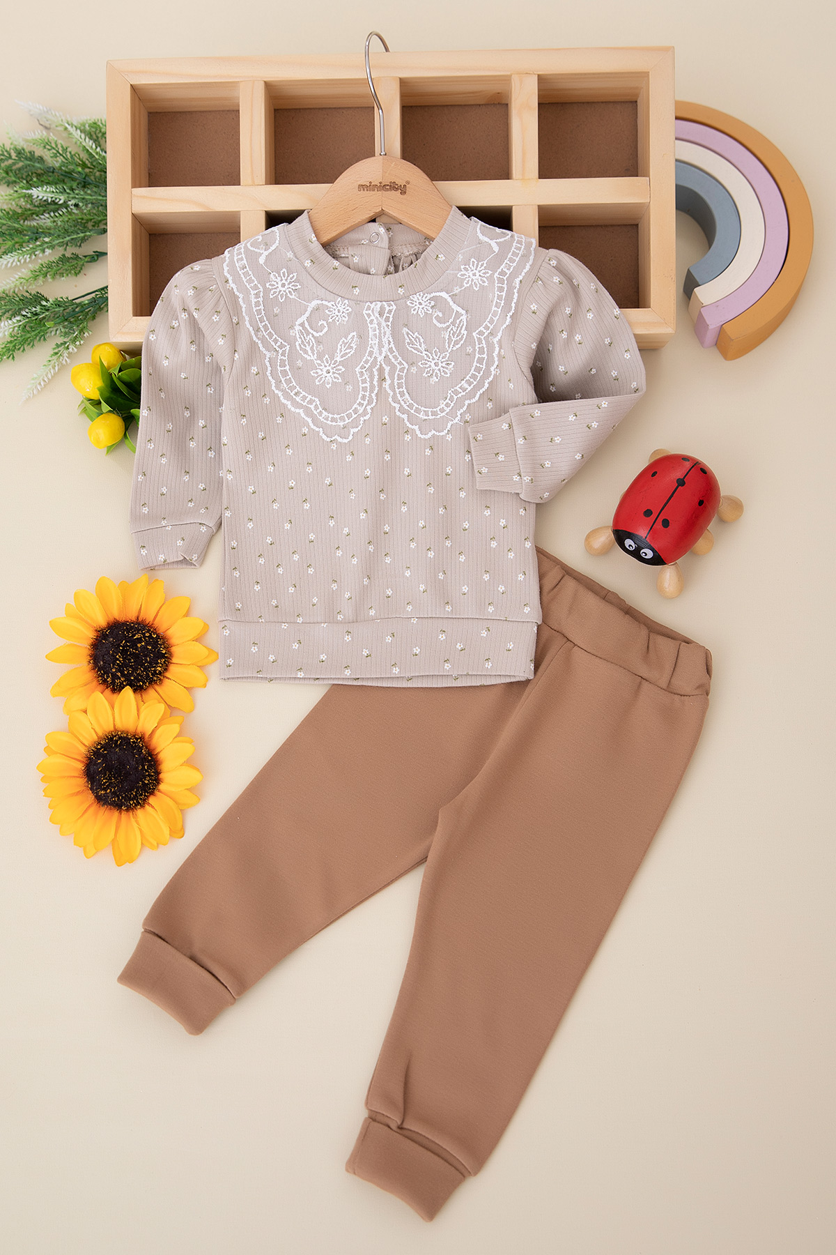Kız Bebek Terikoton Yakalı Çiçekli Takım - 2232 (9-24 Ay)