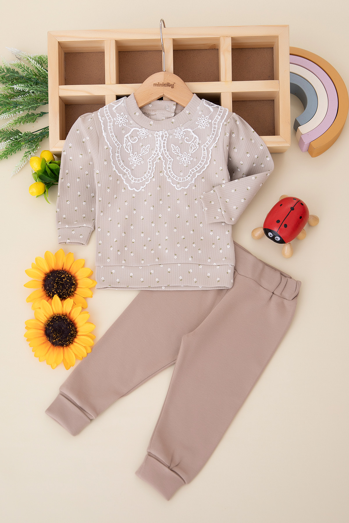 Kız Bebek Terikoton Yakalı Çiçekli Takım - 2232 (9-24 Ay)