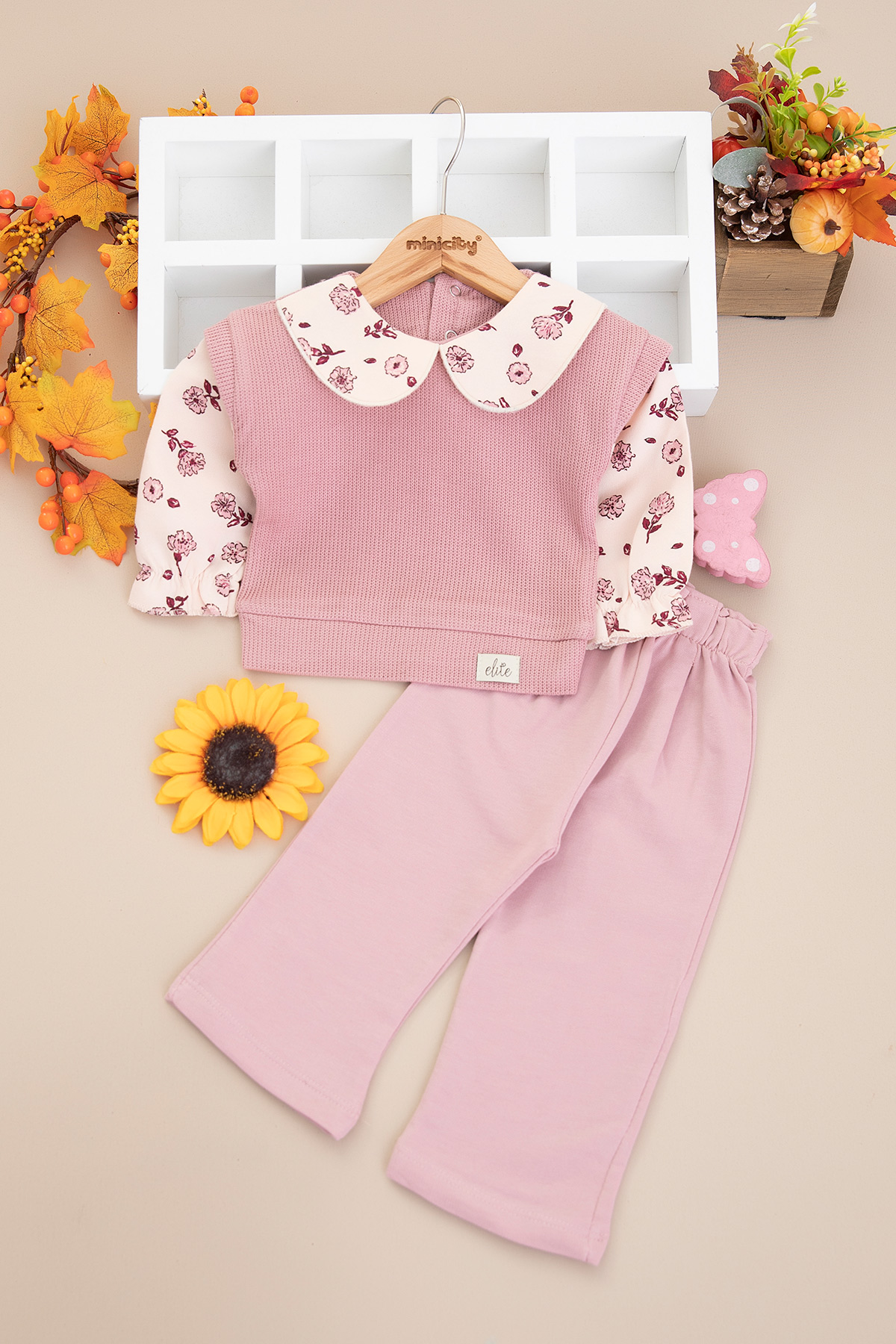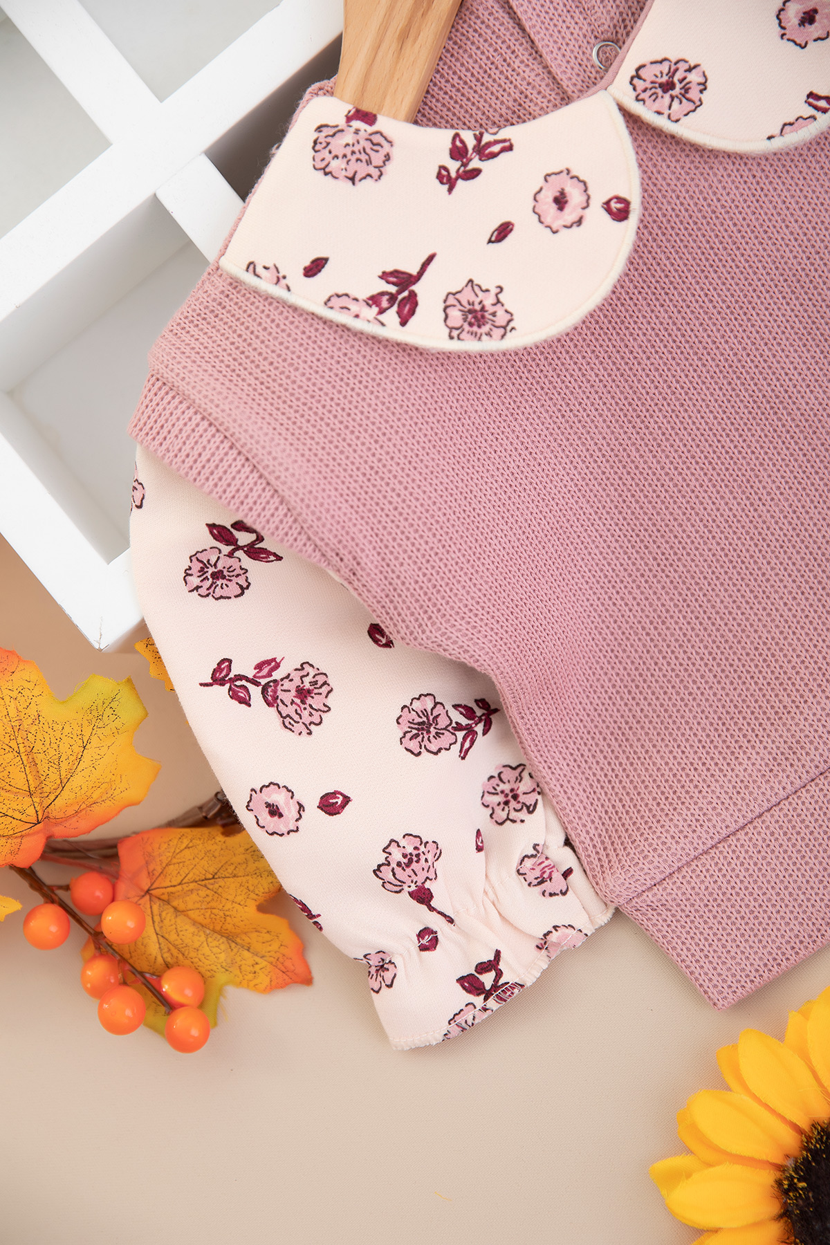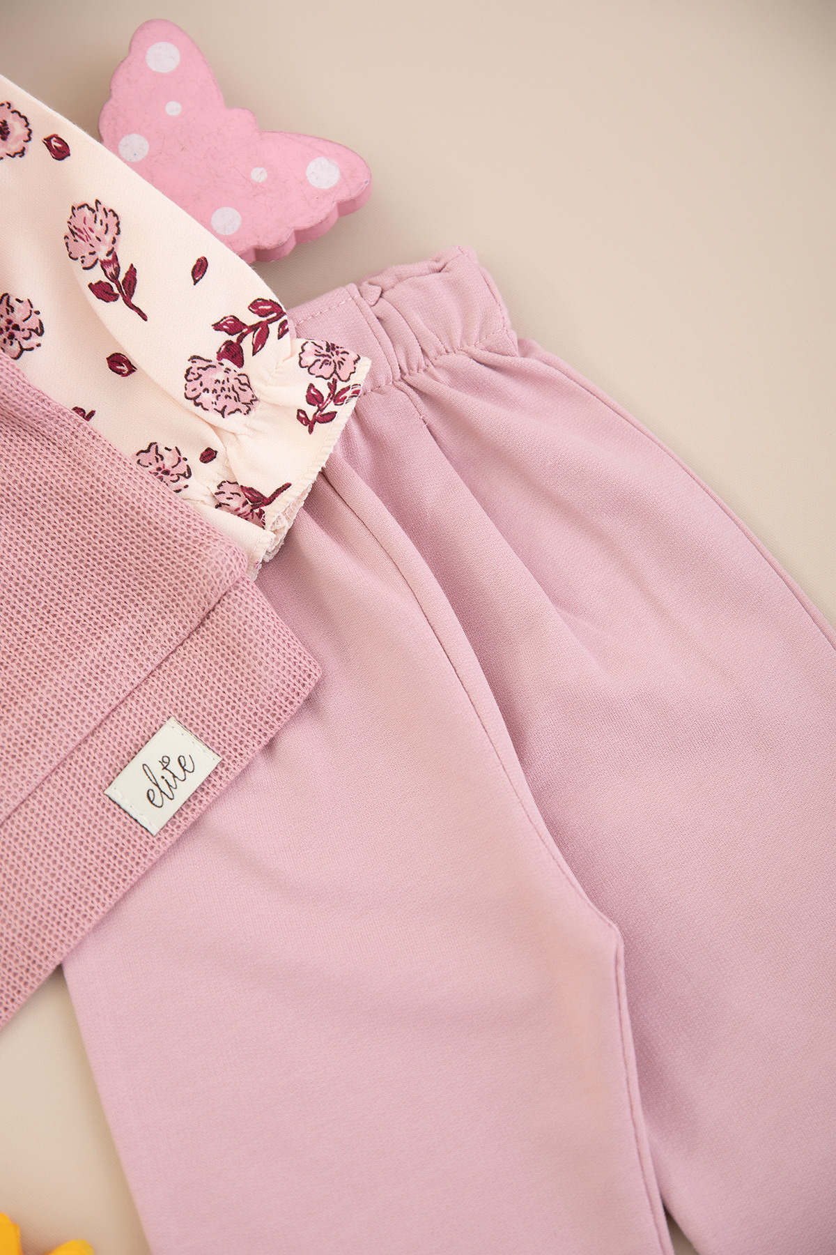 Kız Bebek Triko Örme Çiçekli Takım - 2804 (6-24 Ay)