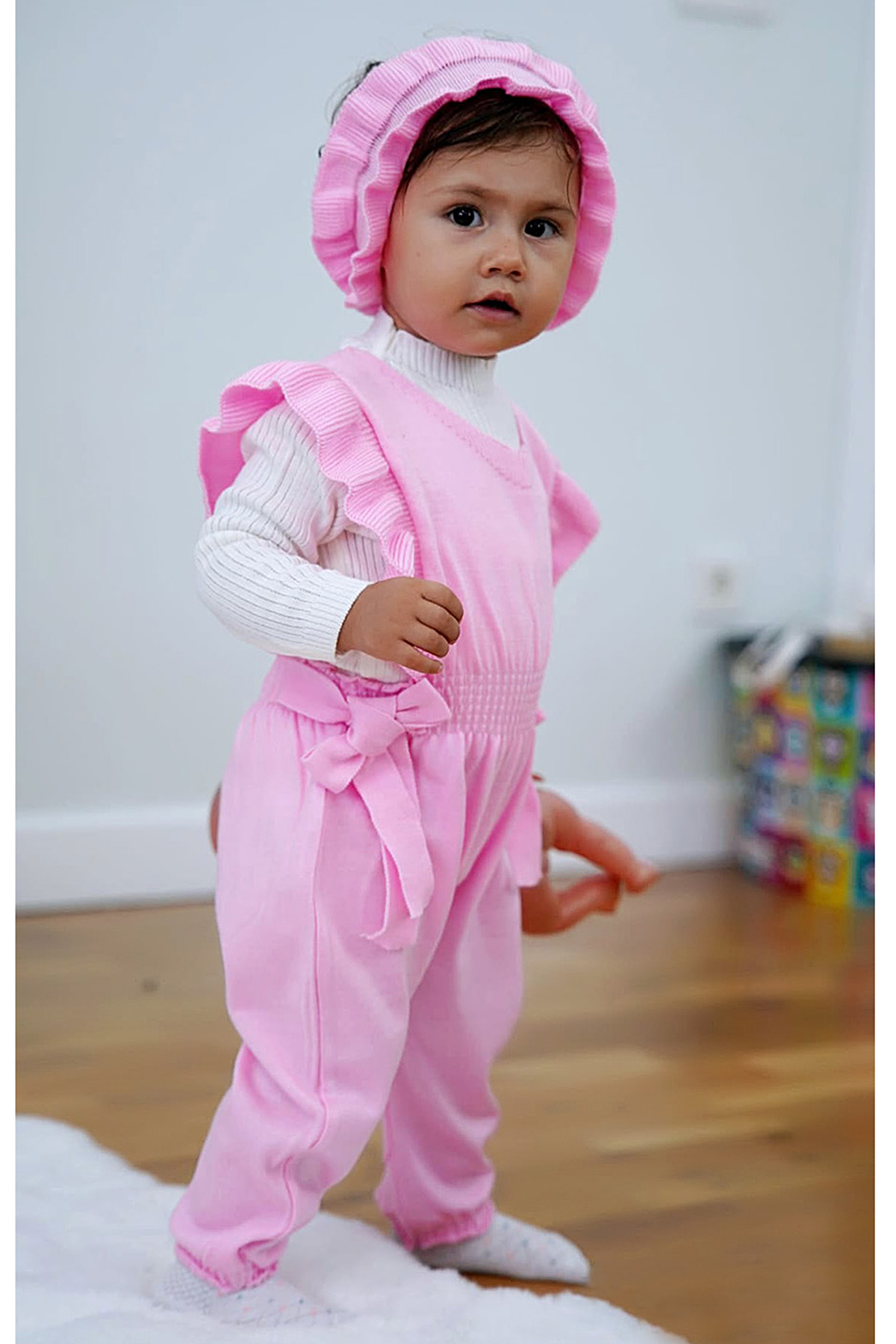 Kız Bebek Triko Üçlü Salopet Takım - 3703 (6-18 Ay)