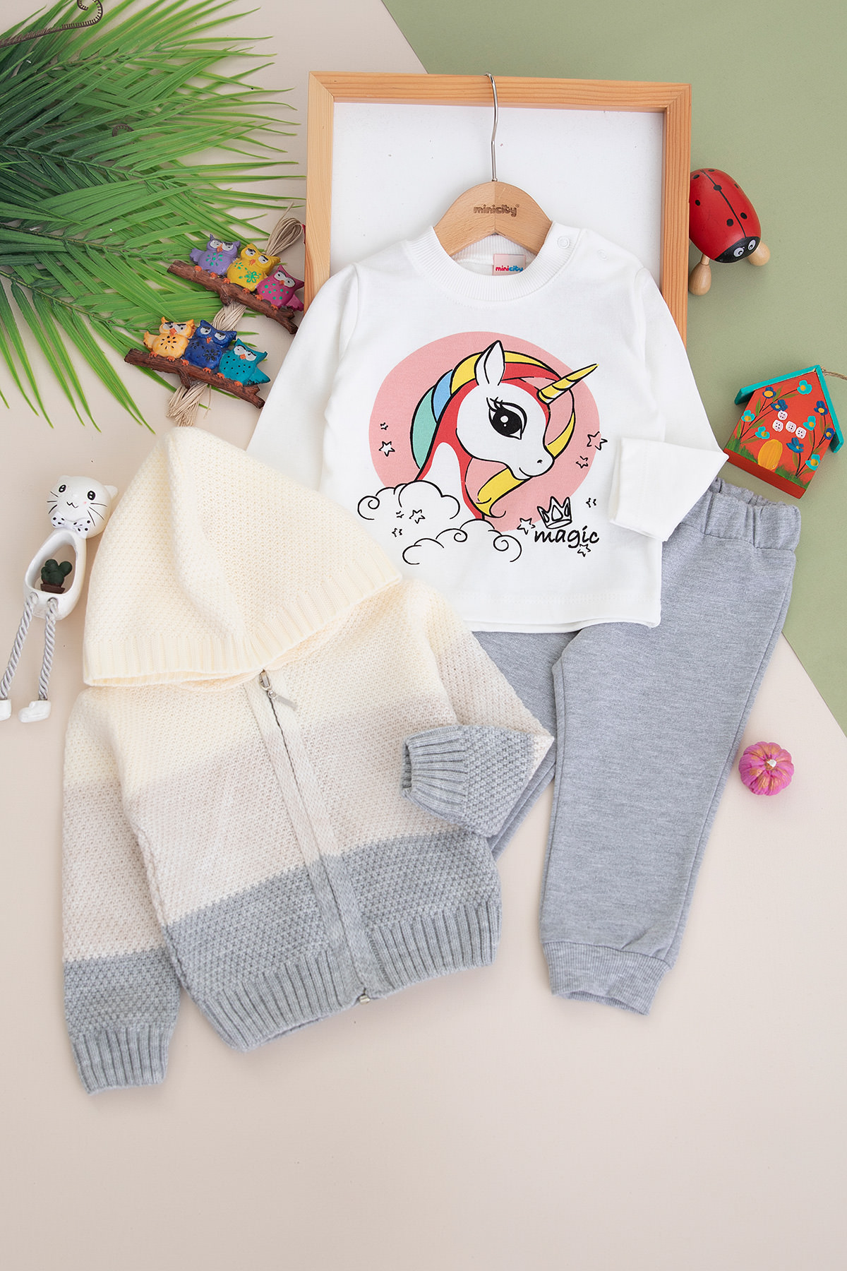 Kız Bebek Üç Renk Triko Üçlü Takım - 13791 (6-24 Ay)