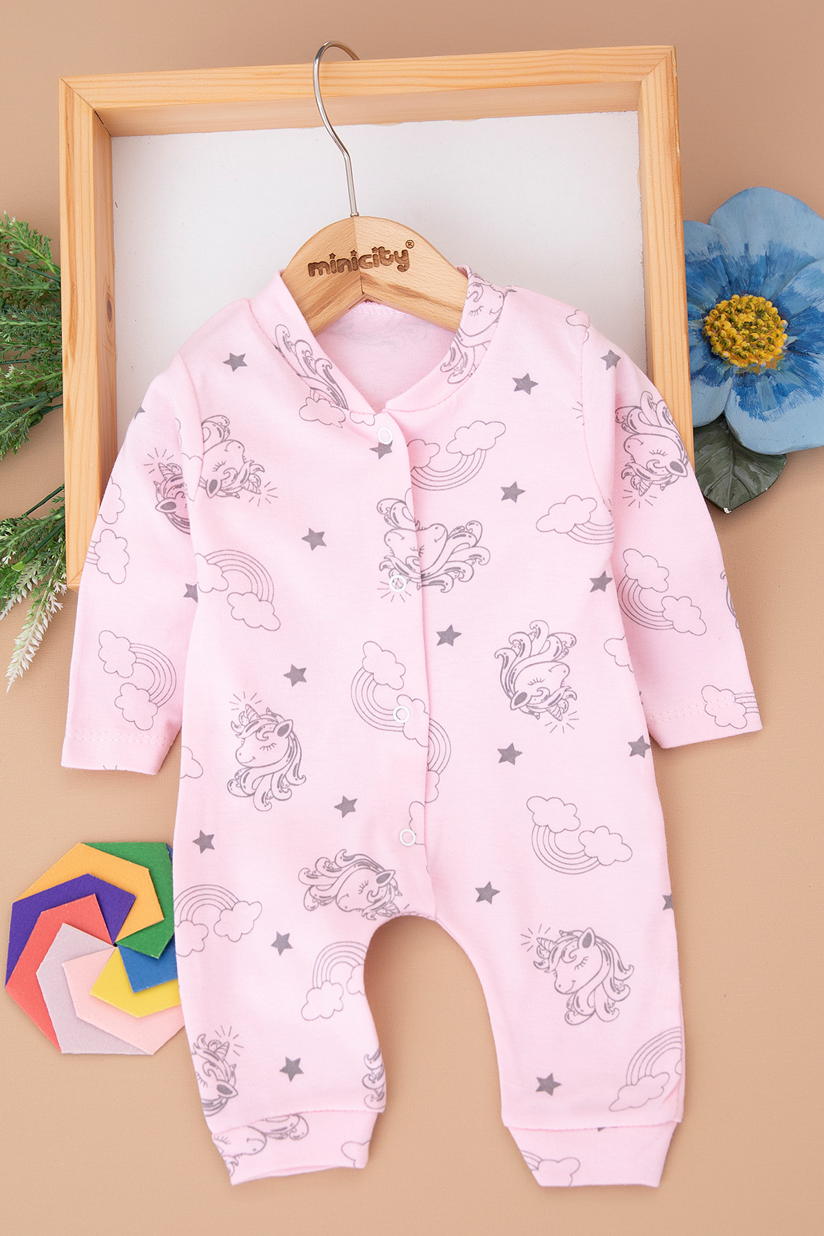 Kız Bebek Unicorn Baskılı Manşetli Tulum - 1863 (3-9 Ay)