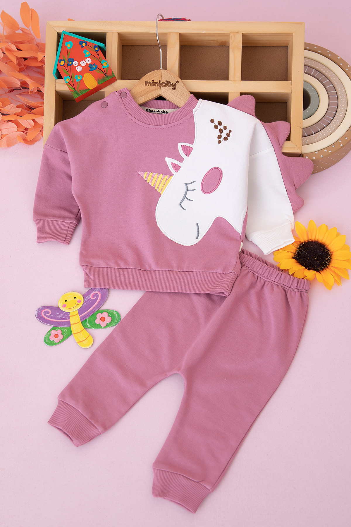 Kız Bebek Unicorn Nakışlı Takım - 3087 (9-24 Ay)