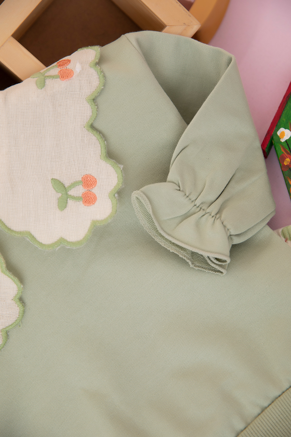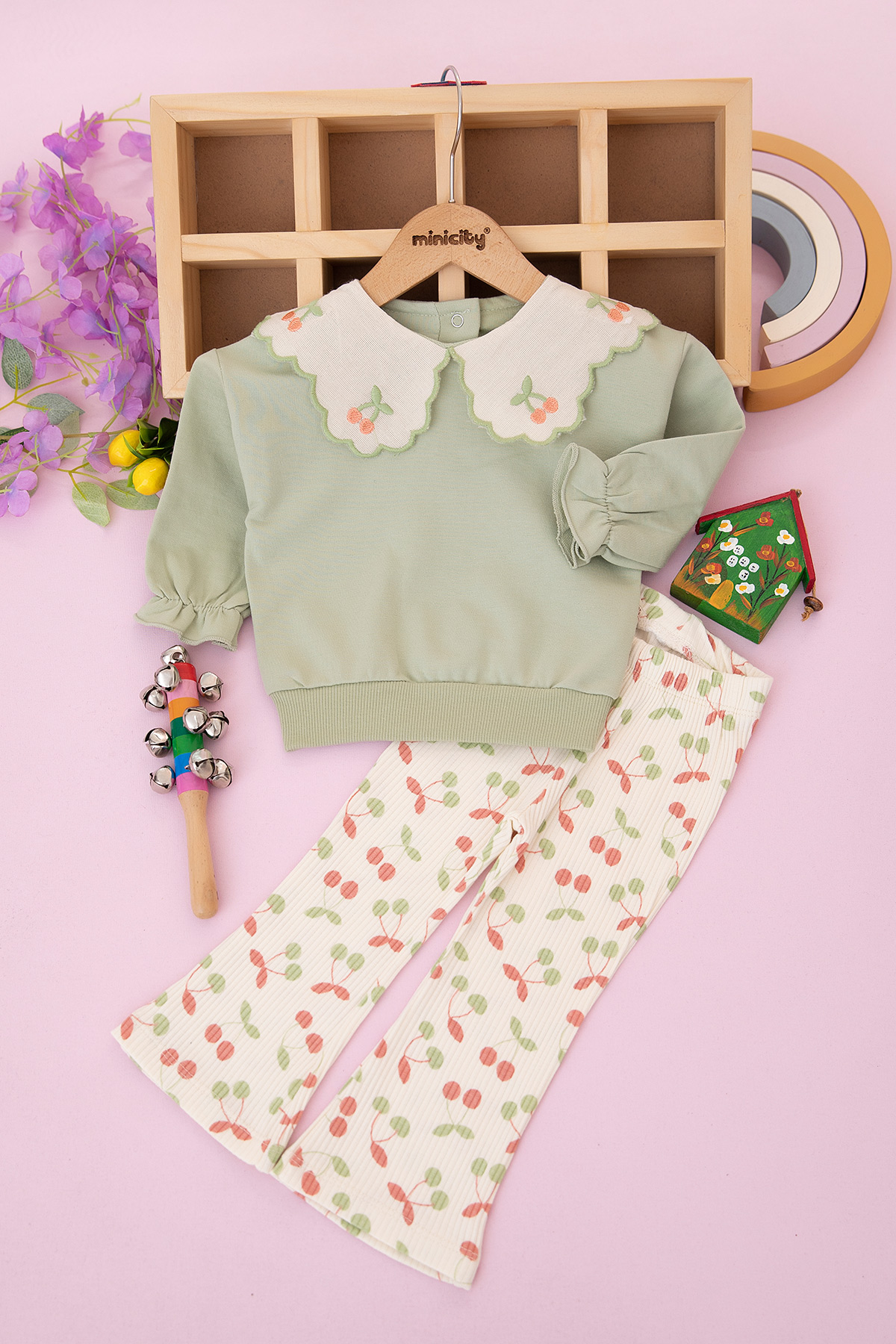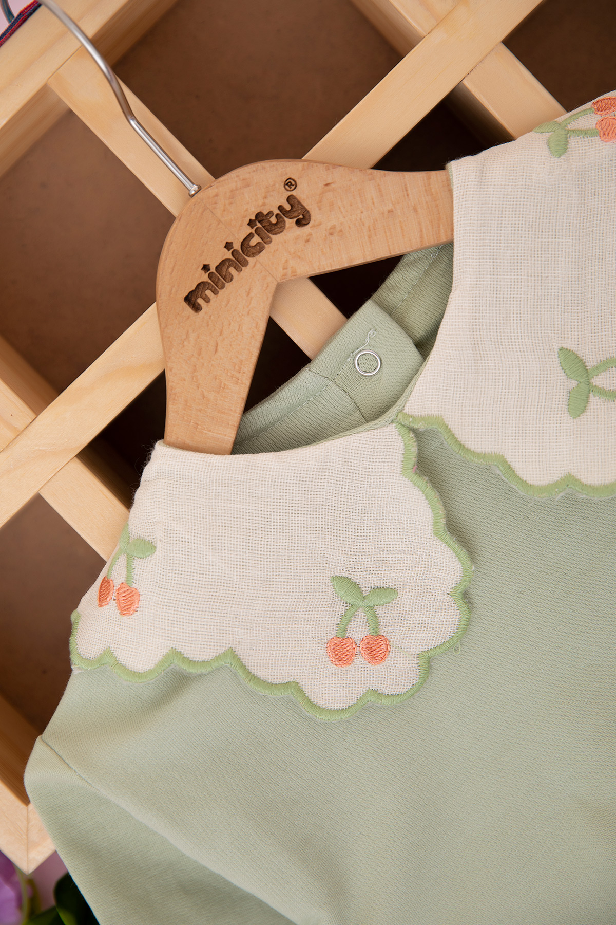 Kız Bebek Vişne Yaka Kol Fırfırlı Takım - 2402 (6-24 Ay)
