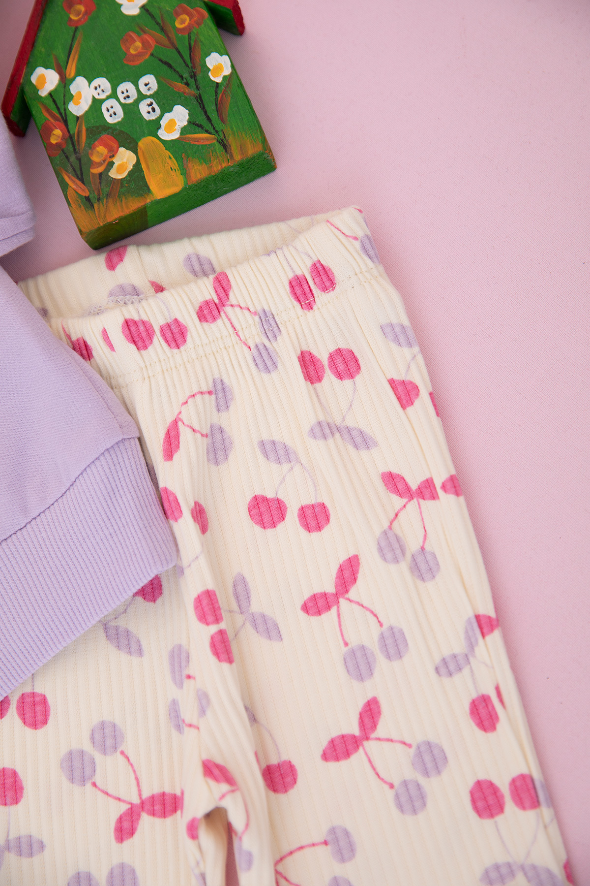 Kız Bebek Vişne Yaka Kol Fırfırlı Takım - 2402 (6-24 Ay)