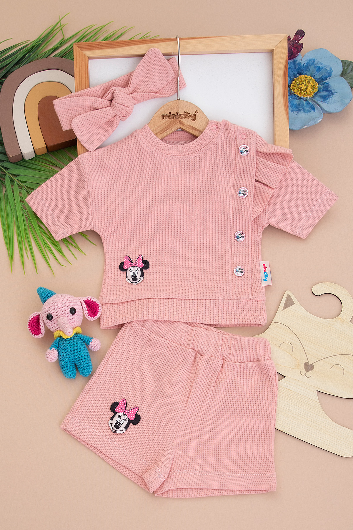 Kız Bebek Waffle Mikili Şortlu Takım - 2034 (6-24 Ay)