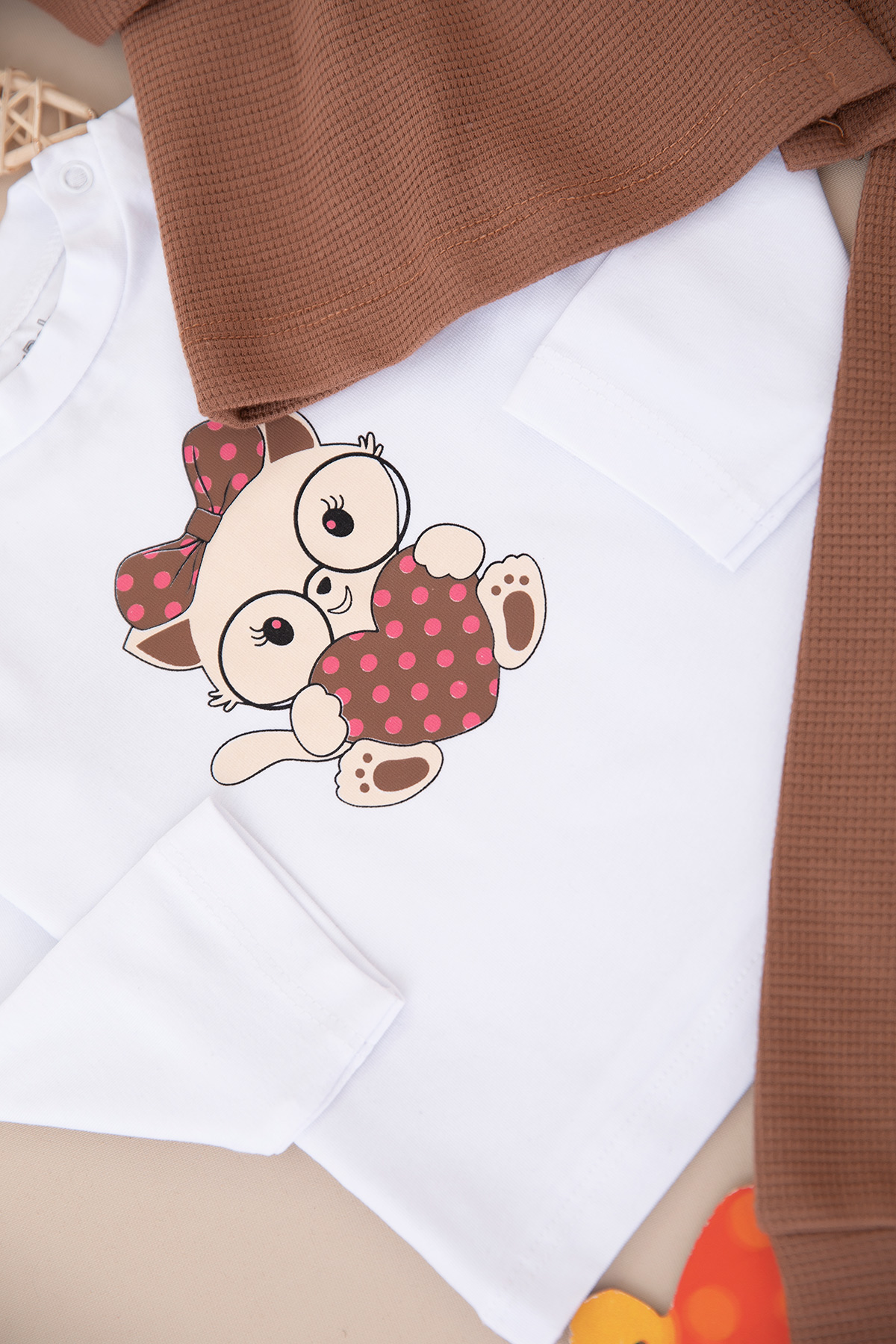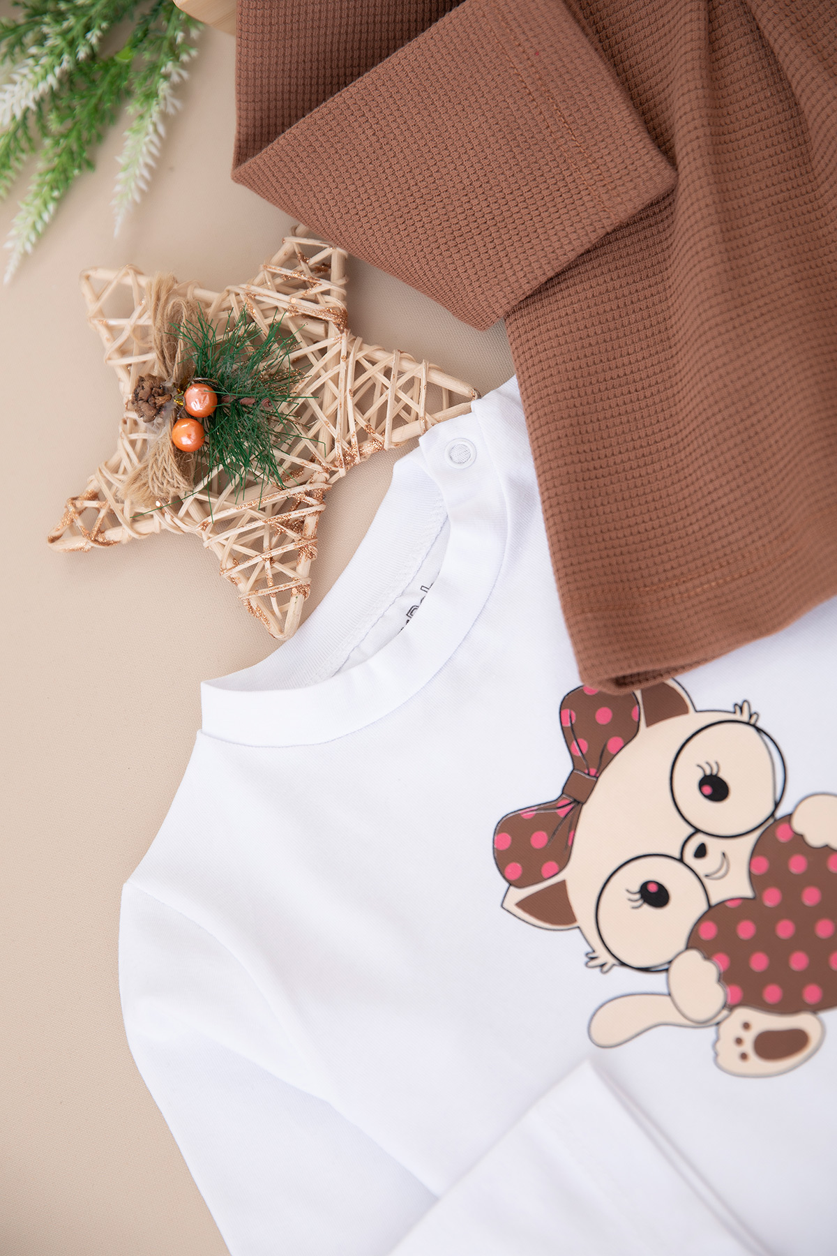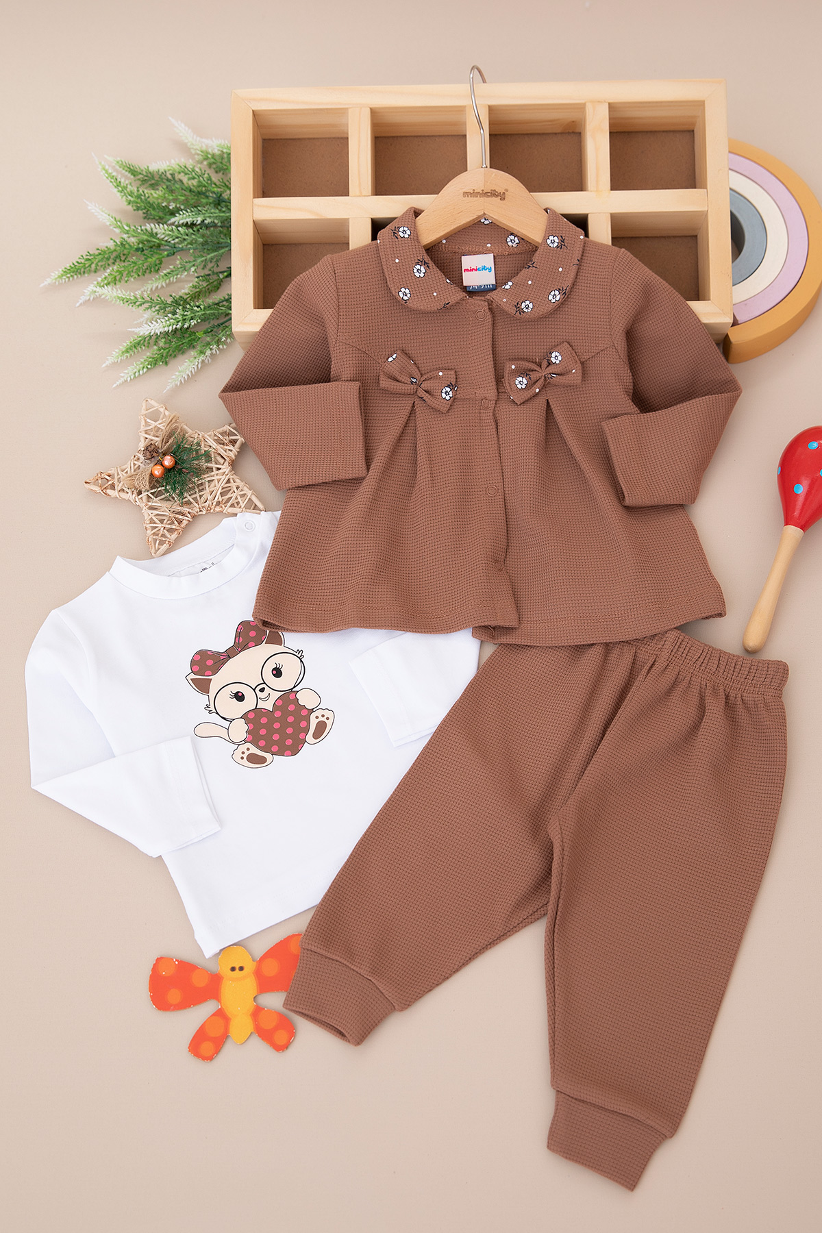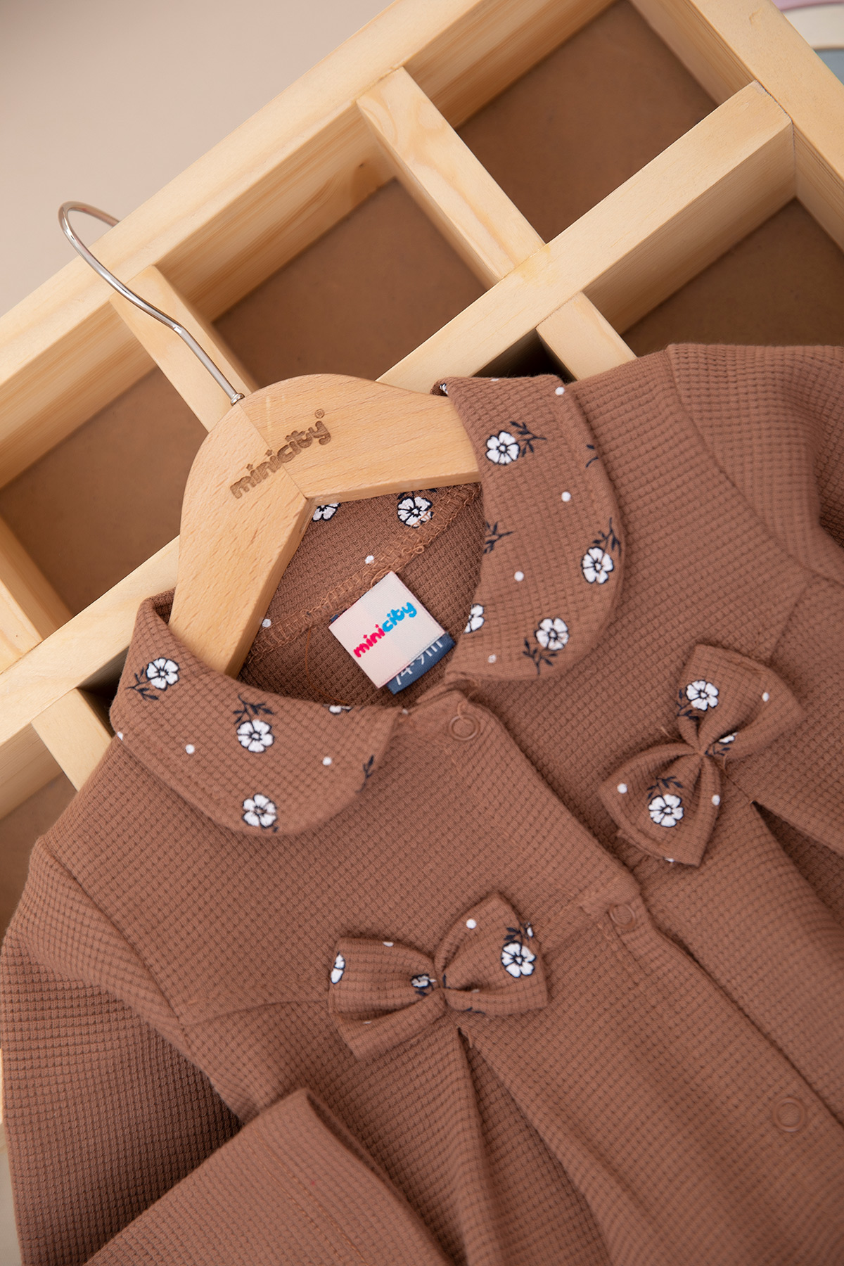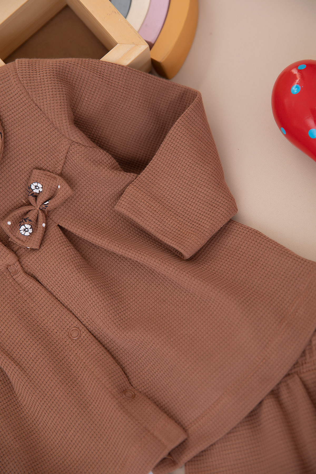 Kız Bebek Yaka Baskılı Fiyonklu Takım - 24004 (9-24 Ay)