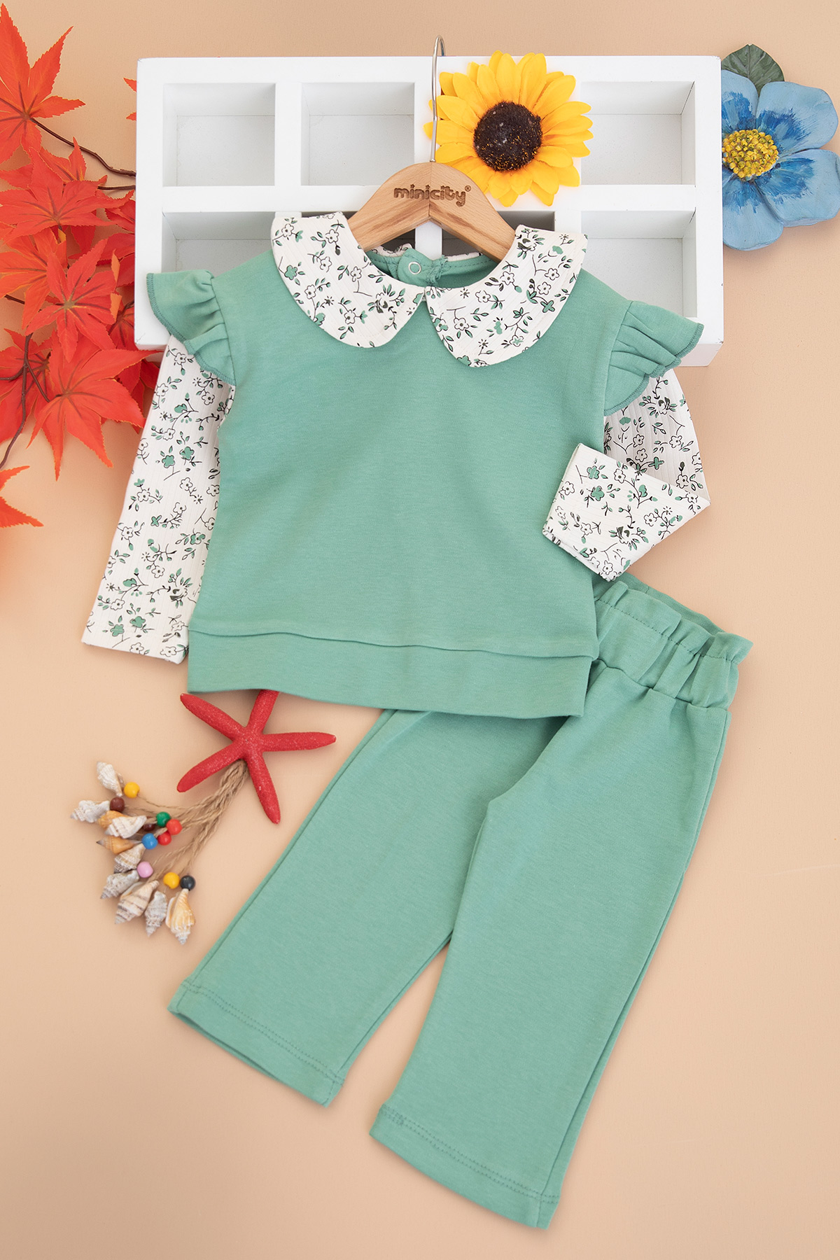 Kız Bebek Yaka Kol Çiçek Baskılı Takım - 26132 (9-24 Ay)