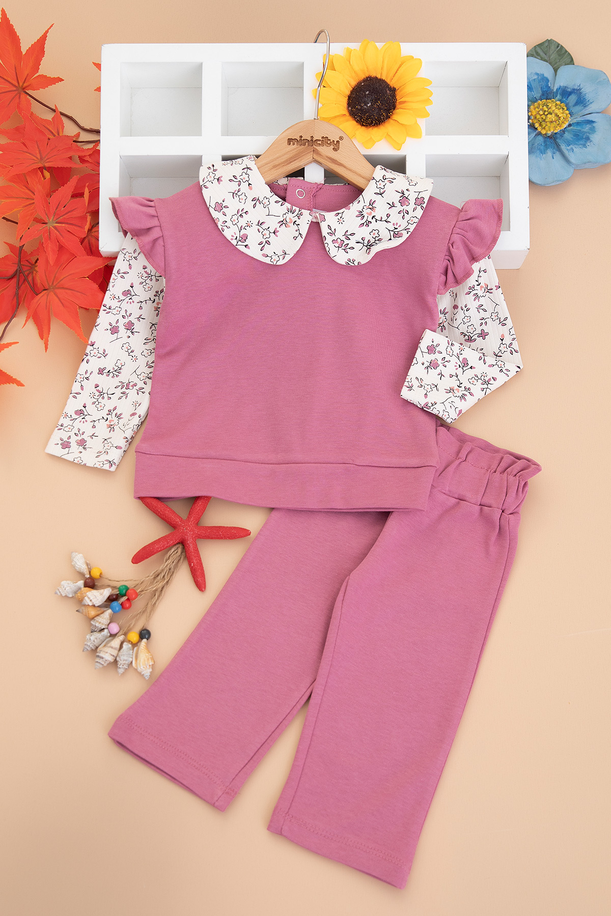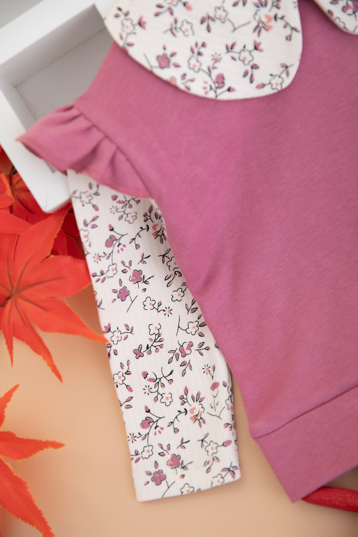 Kız Bebek Yaka Kol Çiçek Baskılı Takım - 26132 (9-24 Ay)