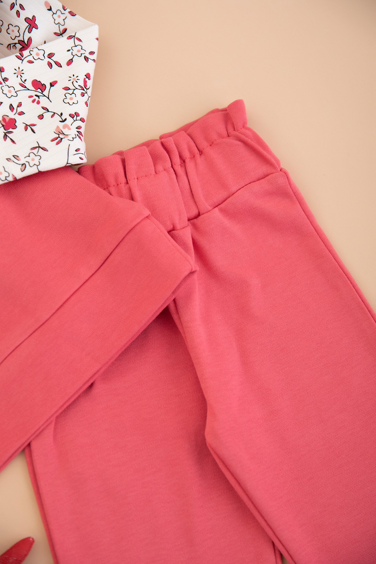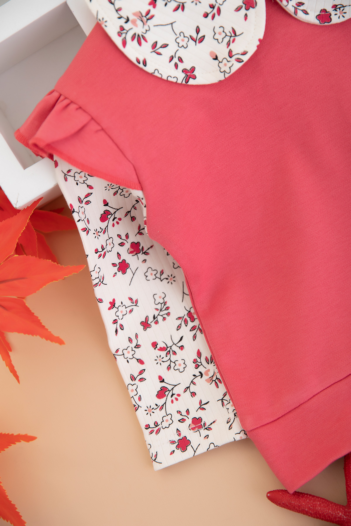 Kız Bebek Yaka Kol Çiçek Baskılı Takım - 26132 (9-24 Ay)
