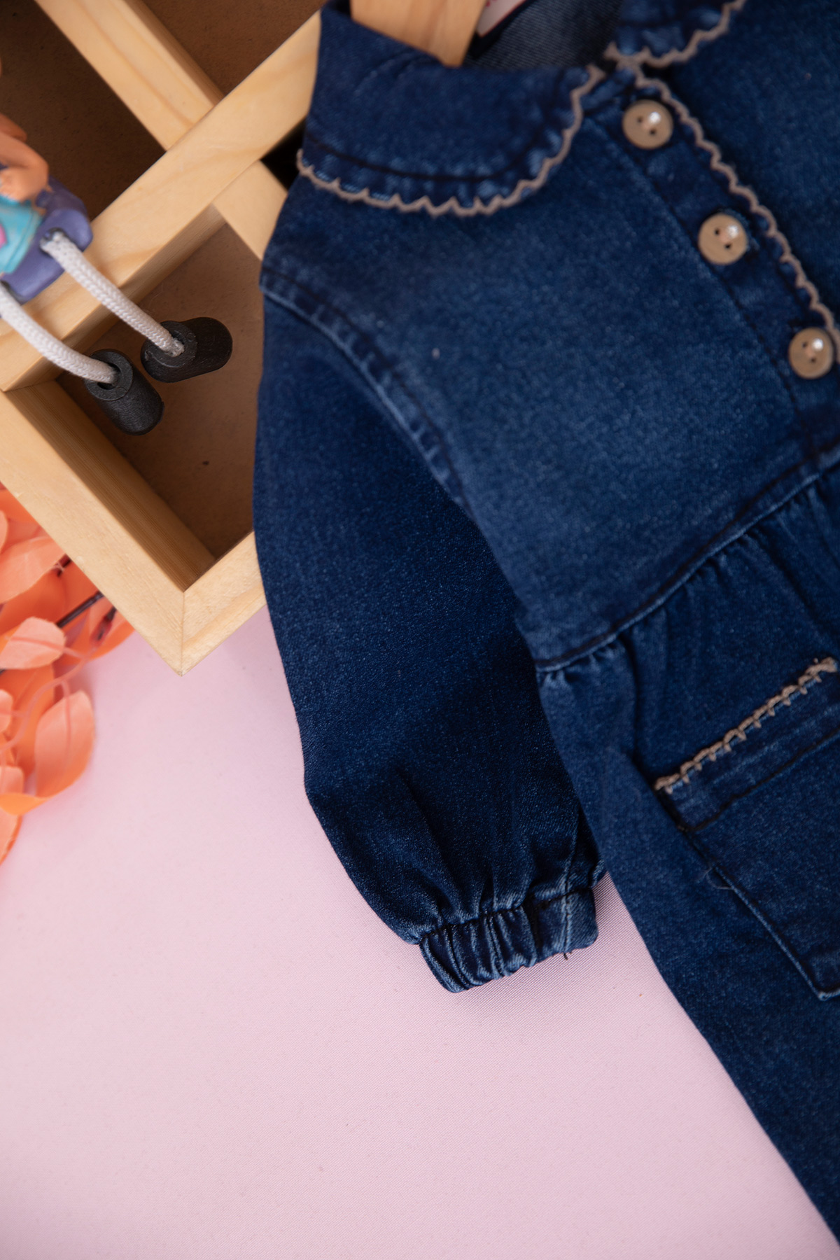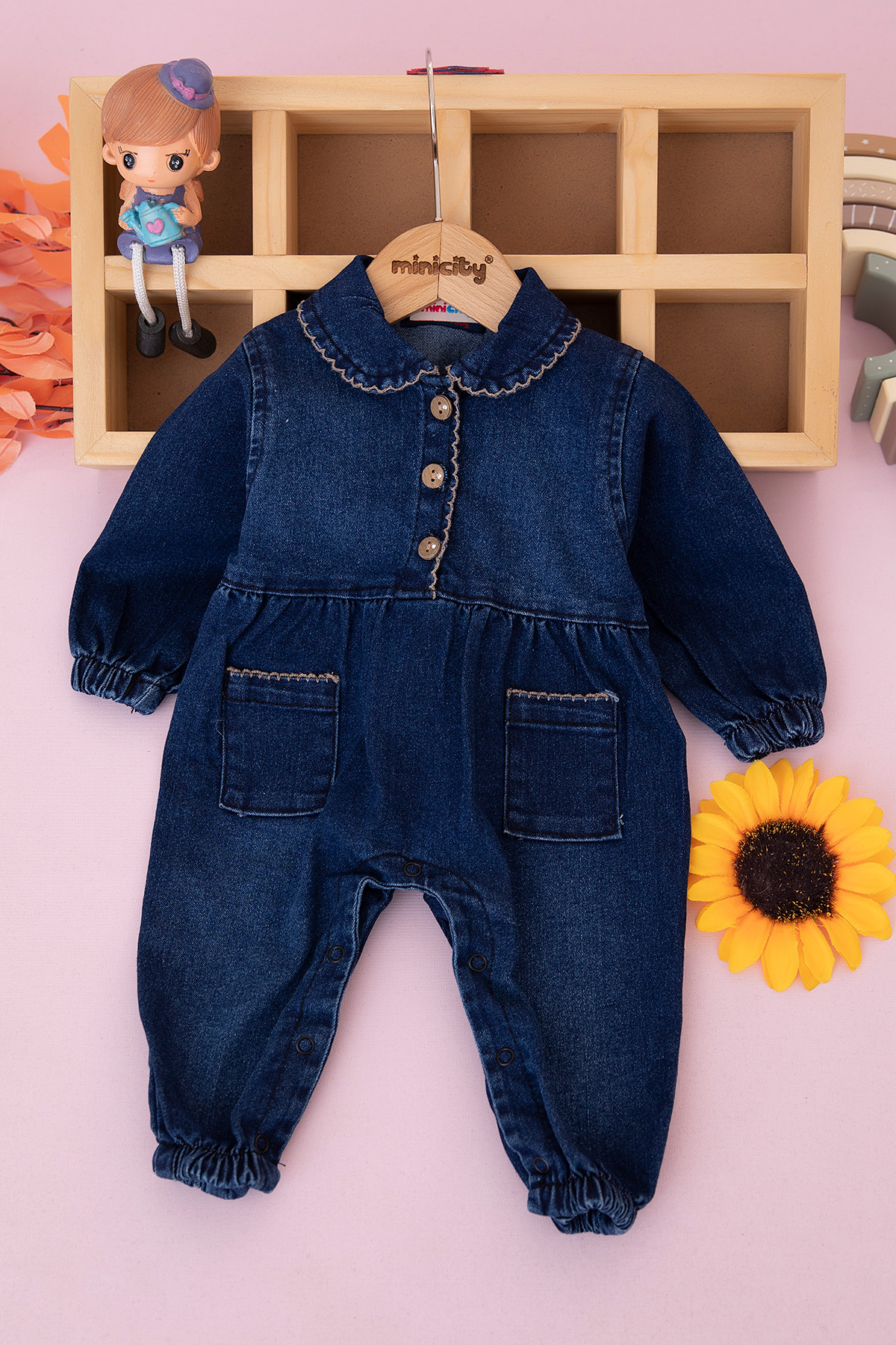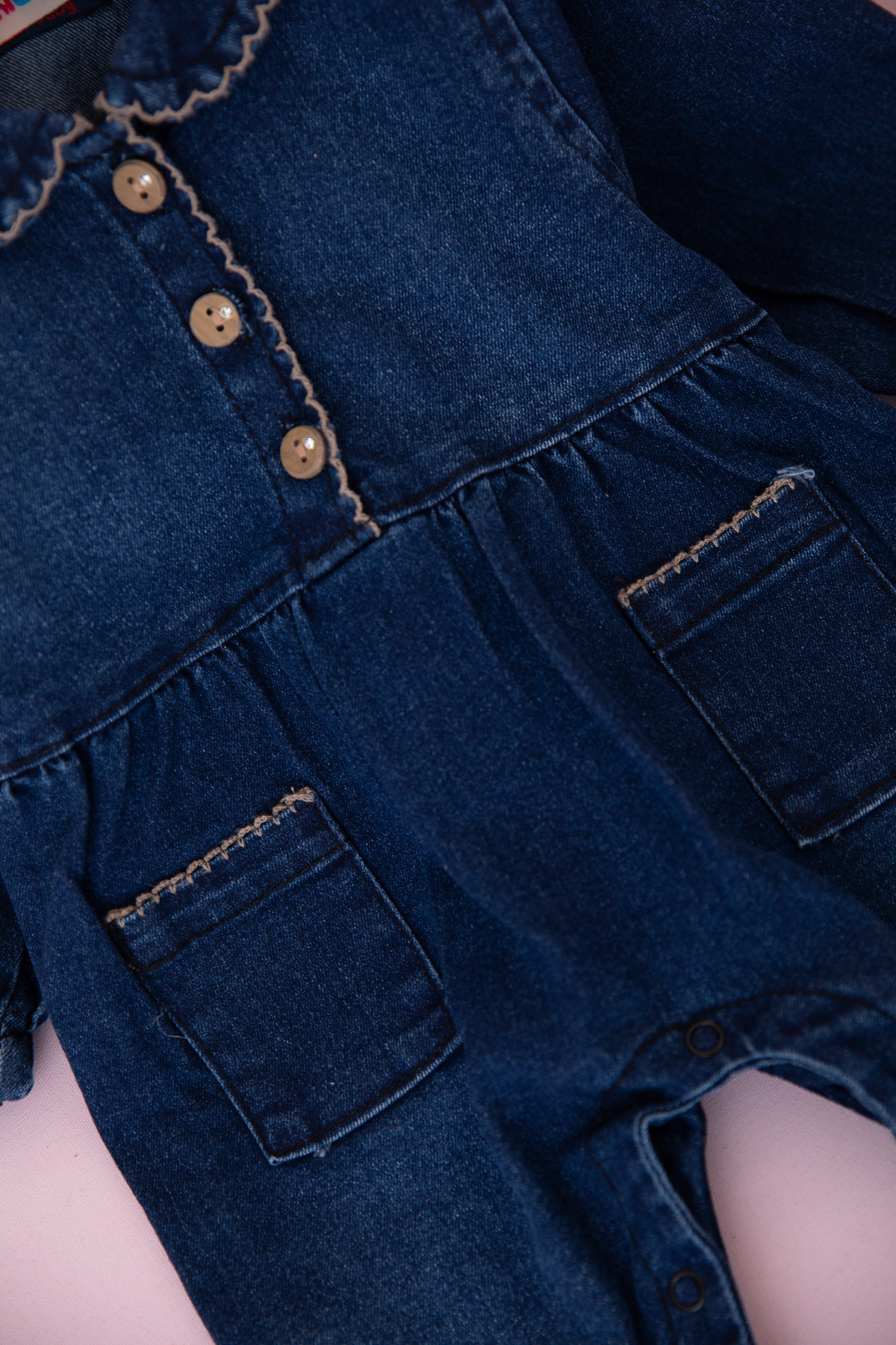 Kız Bebek Yaka Oyalı Kot Tulum - 10307 (3-12 Ay)