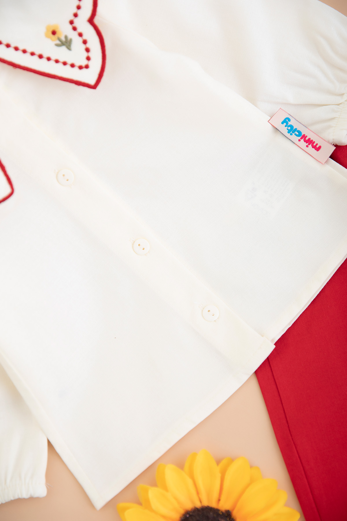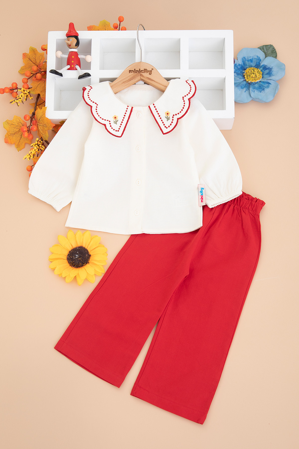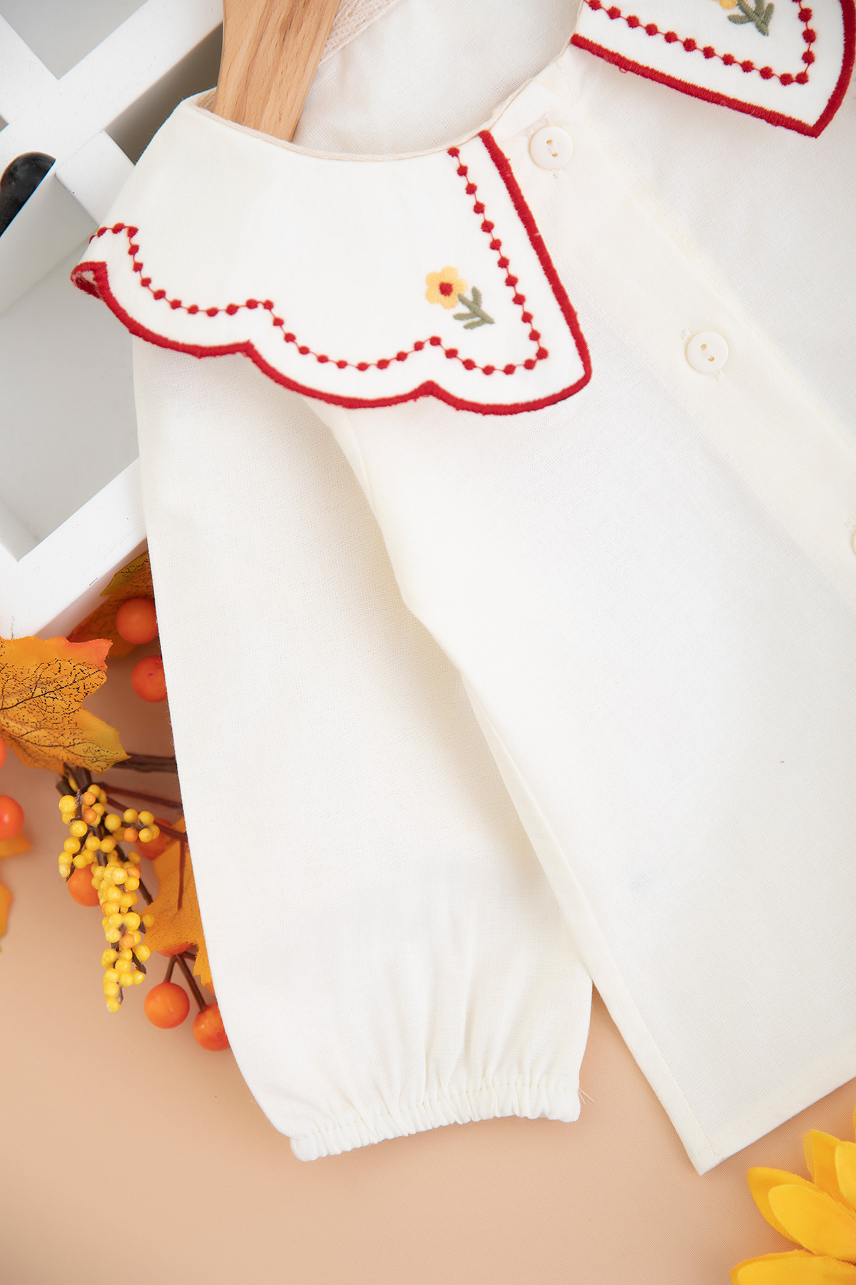 Kız Bebek Yaka Papatya Nakışlı Takım - 3013 (6-24 Ay)