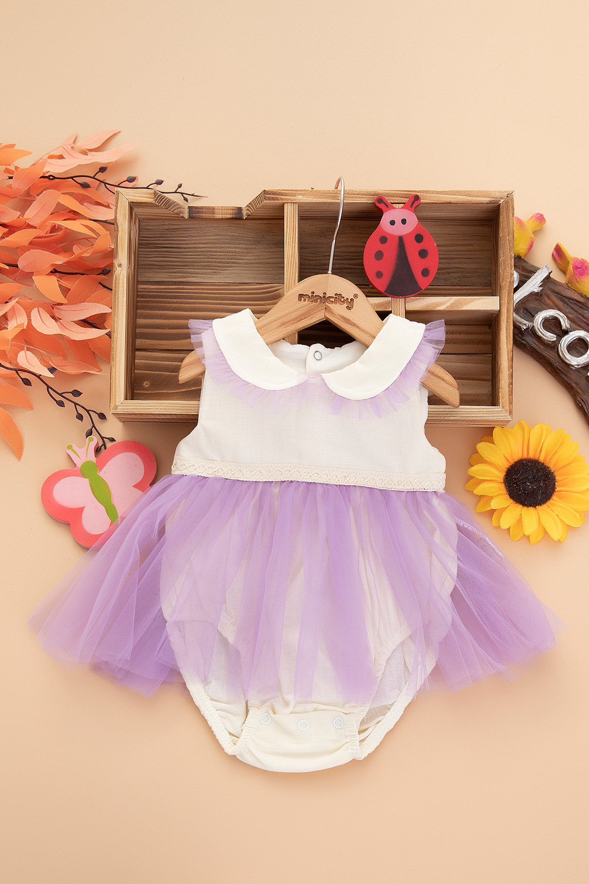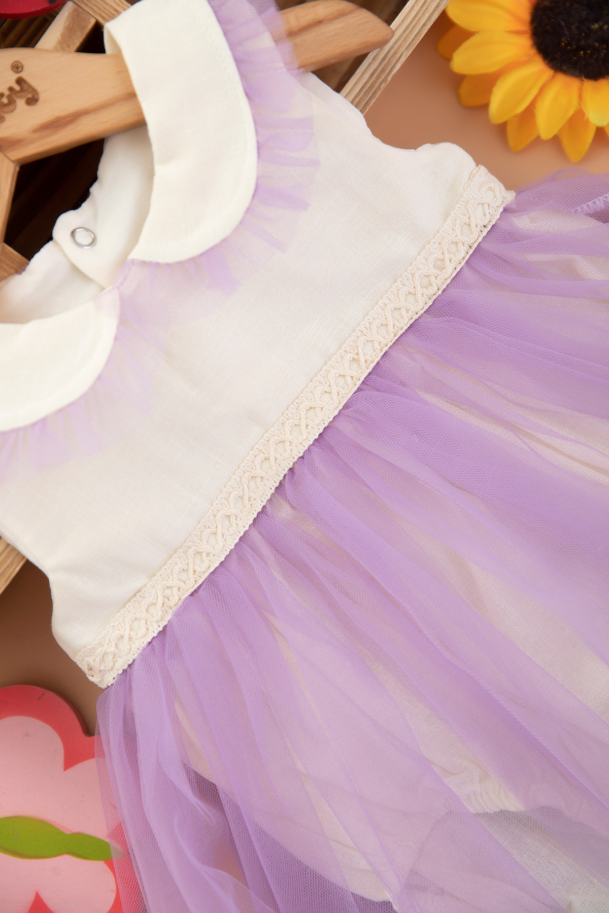 Kız Bebek Yaka Tüllü Romper - 1485 (6-18 Ay)