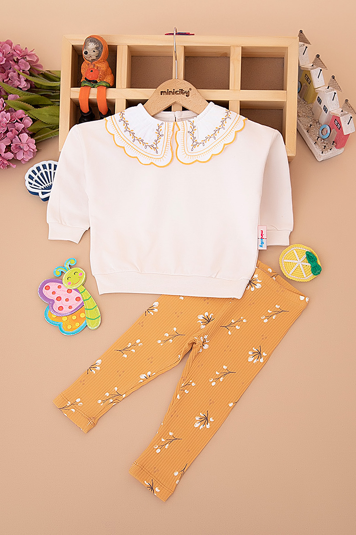Kız Bebek Yakası Çiçek Nakışlı Takım - 253094 (6-24 Ay)