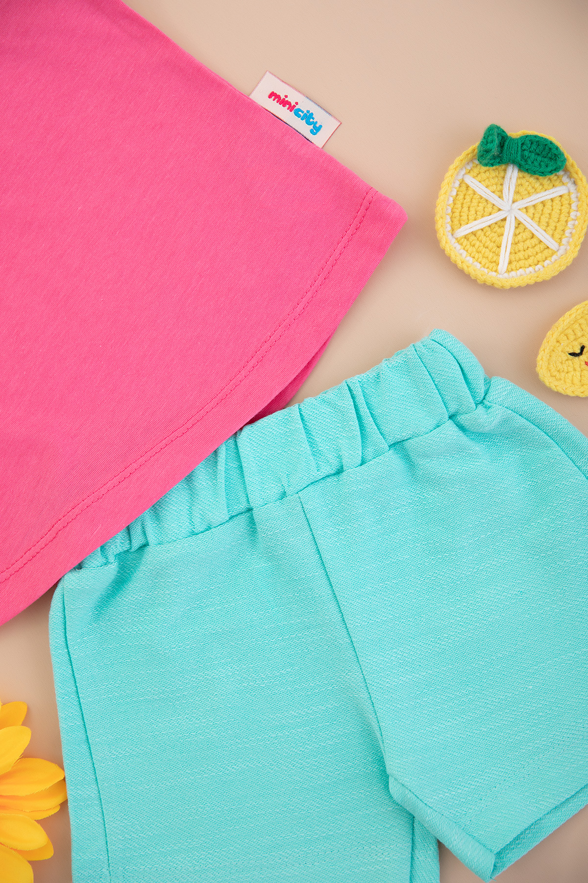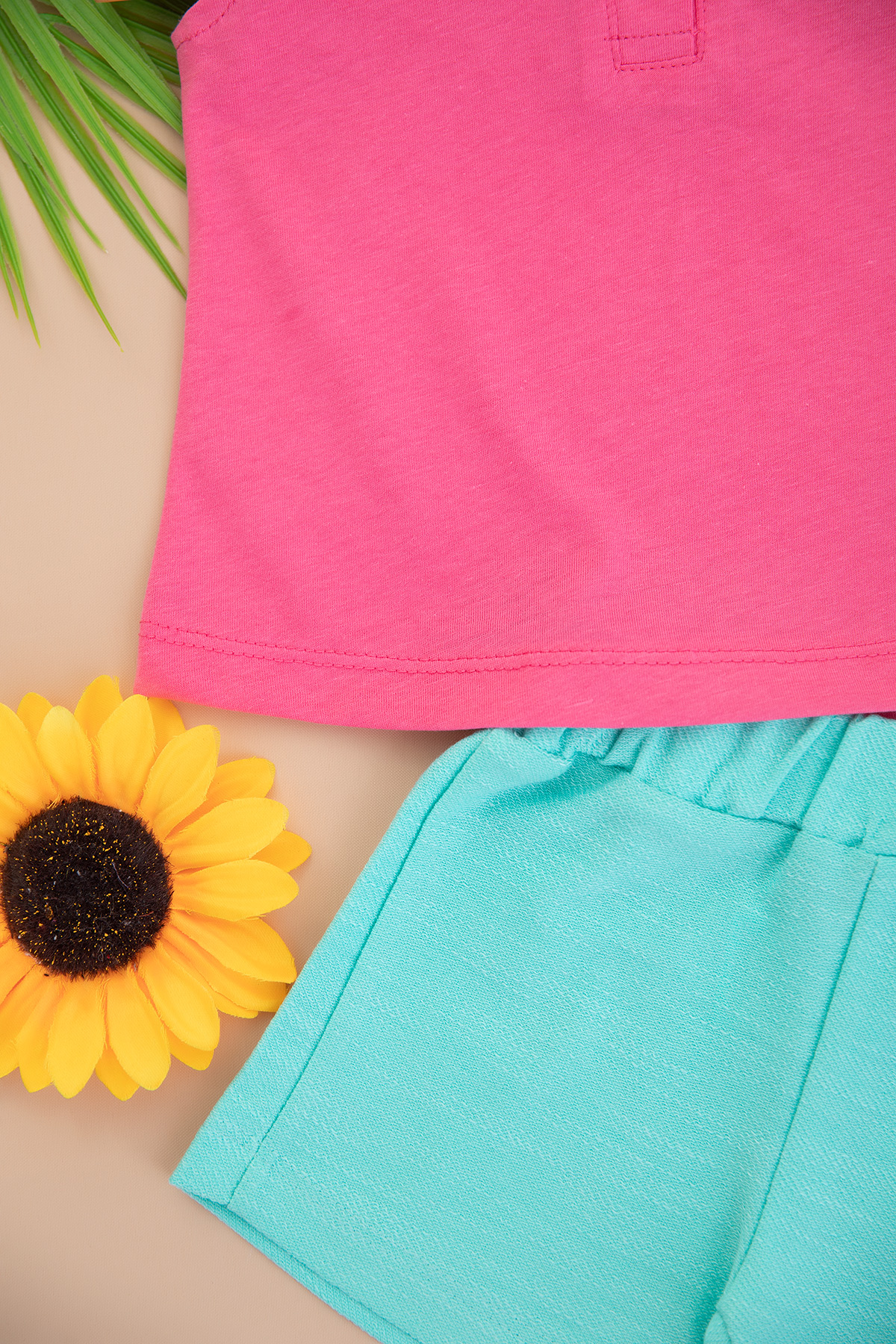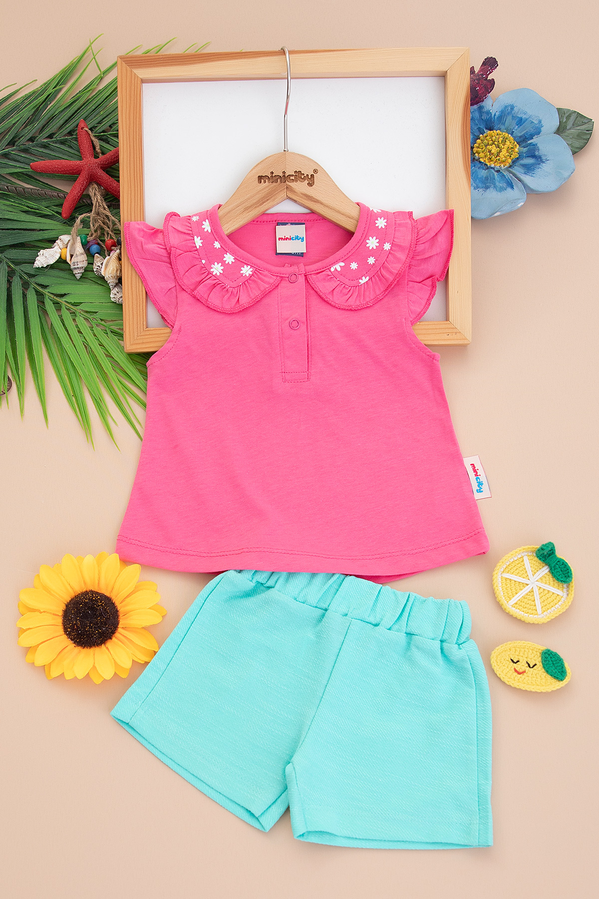 Kız Bebek Yakası Çiçekli Şortlu Takım - 24309 (9-24 Ay)