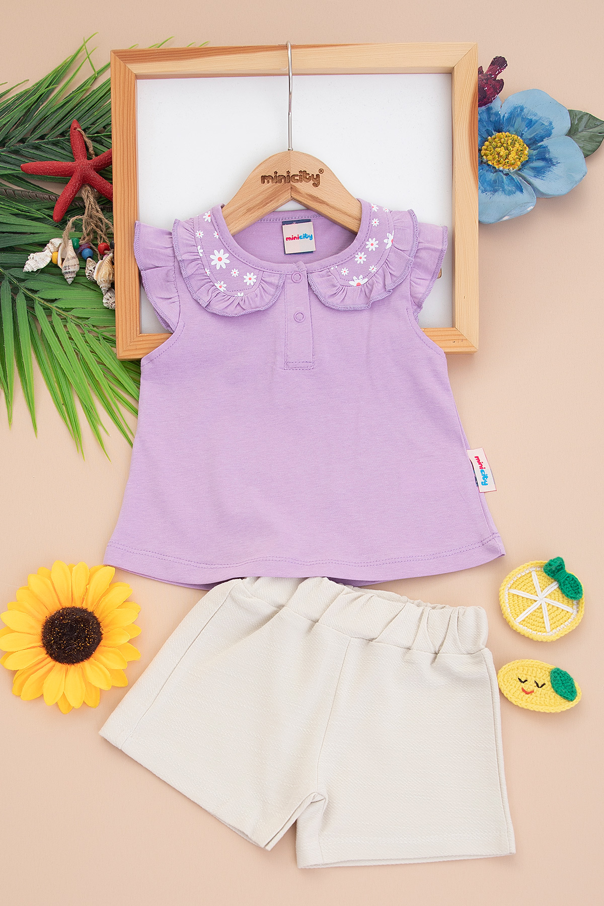 Kız Bebek Yakası Çiçekli Şortlu Takım - 24309 (9-24 Ay)